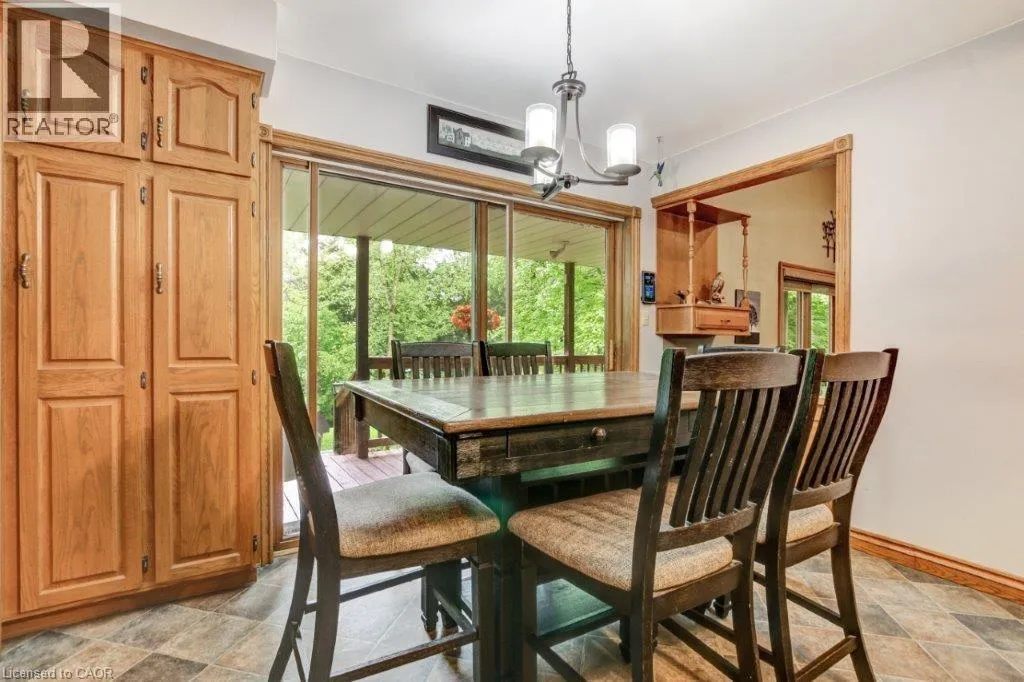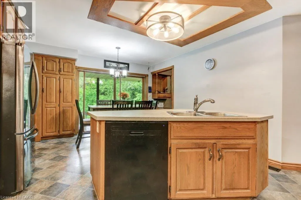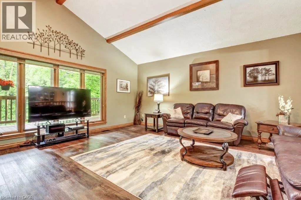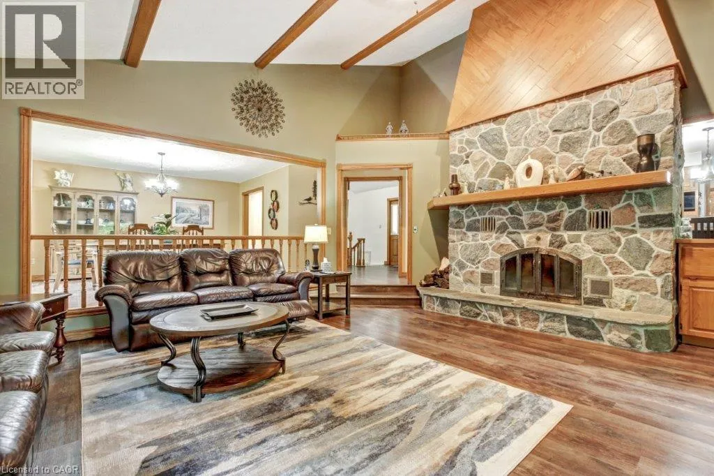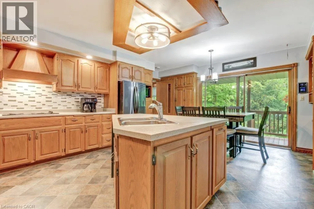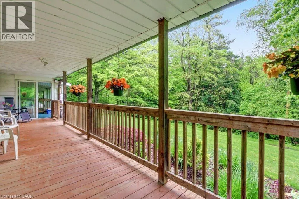 McDowell Rd. west to 59; south to 6th concession; west to 504 Welcome to your own peaceful retreat! Nestled on 3.61 acres of beautifully landscaped grounds and backing onto protected conservation land, this spacious bungalow offers privacy, serenity, and breathtaking views. Step inside to a large, welcoming foyer that opens into a sunken living room featuring soaring beamed ceilings and a cozy fireplace â the perfect place to unwind. The open-concept layout flows into a generous dining area, ideal for hosting family and friends. The professionally designed kitchen features ample cabinetry, a center island, built-in appliances, and plenty of counter space. Adjacent is a convenient main-floor laundry room with vinyl flooring, making daily chores a breeze. Luxury vinyl plank (LVP) flooring has been professionally installed throughout most of the main floor, offering durability and style, while the bedrooms are carpeted for added comfort. With 3 large bedrooms and 3 bathrooms, this home has space for everyone. The oversized primary suite includes a walk-in closet and room to create your own private haven. The recently renovated (2024) main bath features a skylight and a freestanding soaker tub for spa-like relaxation. Step outside to enjoy peaceful surroundings from your expansive 35-foot back deck, perfect for outdoor dining or simply soaking in the natural beauty. The attached double car garage offers ample space for vehicles, tools, and storage â a must-have for country living. The partially finished basement offers endless potential, with large open areas ready for your design ideas. It includes a newly finished 2-piece bathroom and a walk-up to the backyard â offering great potential for an in-law suite or additional living space. This is a rare opportunity to own a private, well-appointed home in a stunning natural setting. Donât miss it! (id:27476)