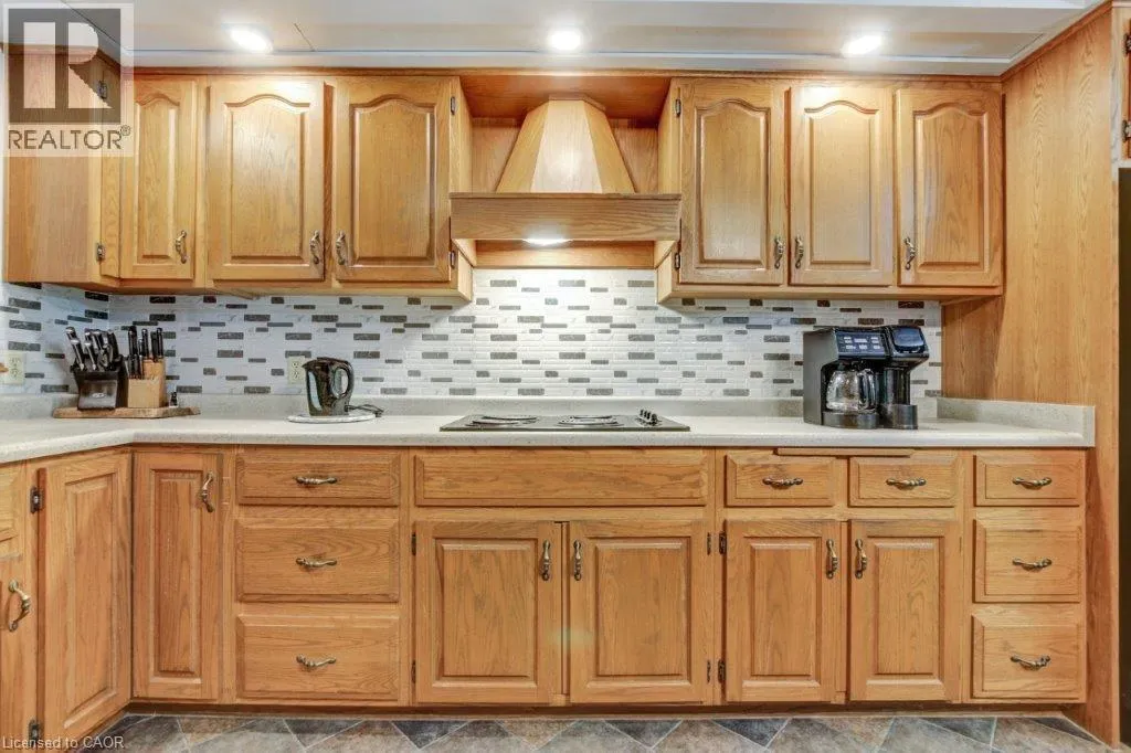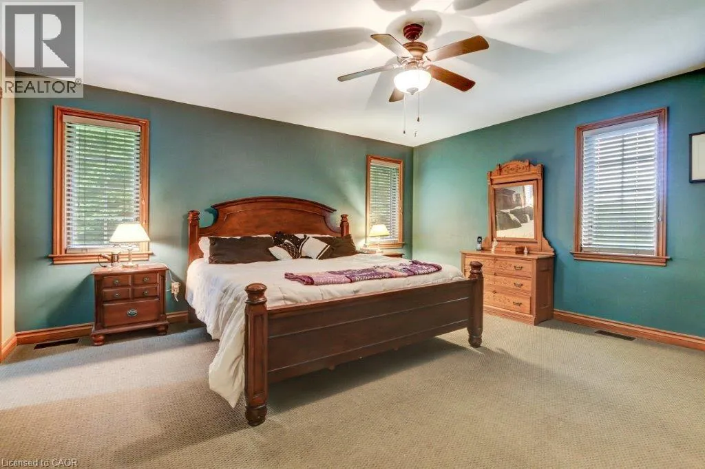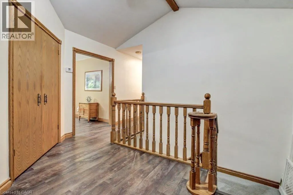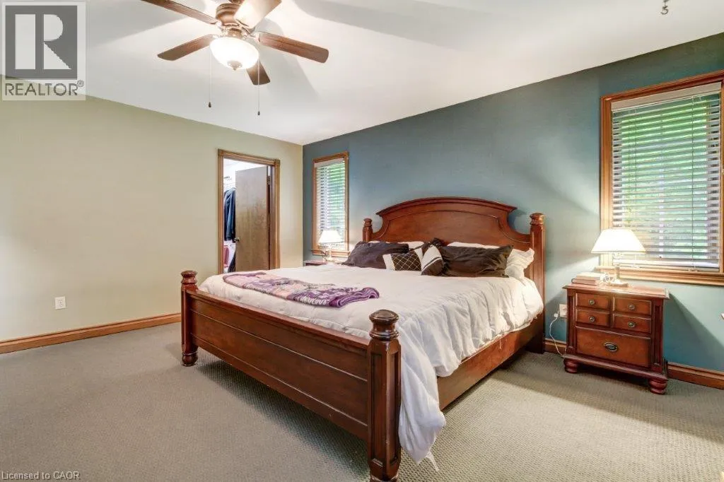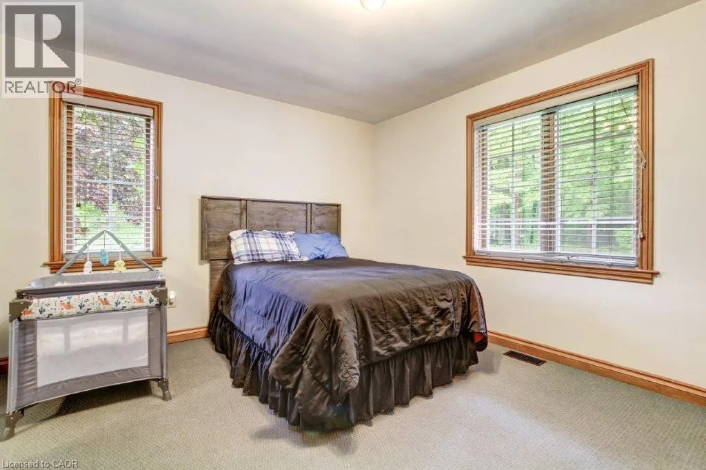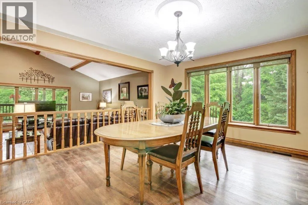 McDowell Rd. west to 59; south to 6th concession; west to 504 Welcome to your own peaceful retreat! Nestled on 3.61 acres of beautifully landscaped grounds and backing onto protected conservation land, this spacious bungalow offers privacy, serenity, and breathtaking views. Step inside to a large, welcoming foyer that opens into a sunken living room featuring soaring beamed ceilings and a cozy fireplace â the perfect place to unwind. The open-concept layout flows into a generous dining area, ideal for hosting family and friends. The professionally designed kitchen features ample cabinetry, a center island, built-in appliances, and plenty of counter space. Adjacent is a convenient main-floor laundry room with vinyl flooring, making daily chores a breeze. Luxury vinyl plank (LVP) flooring has been professionally installed throughout most of the main floor, offering durability and style, while the bedrooms are carpeted for added comfort. With 3 large bedrooms and 3 bathrooms, this home has space for everyone. The oversized primary suite includes a walk-in closet and room to create your own private haven. The recently renovated (2024) main bath features a skylight and a freestanding soaker tub for spa-like relaxation. Step outside to enjoy peaceful surroundings from your expansive 35-foot back deck, perfect for outdoor dining or simply soaking in the natural beauty. The attached double car garage offers ample space for vehicles, tools, and storage â a must-have for country living. The partially finished basement offers endless potential, with large open areas ready for your design ideas. It includes a newly finished 2-piece bathroom and a walk-up to the backyard â offering great potential for an in-law suite or additional living space. This is a rare opportunity to own a private, well-appointed home in a stunning natural setting. Donât miss it! (id:27476)