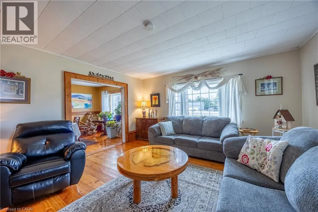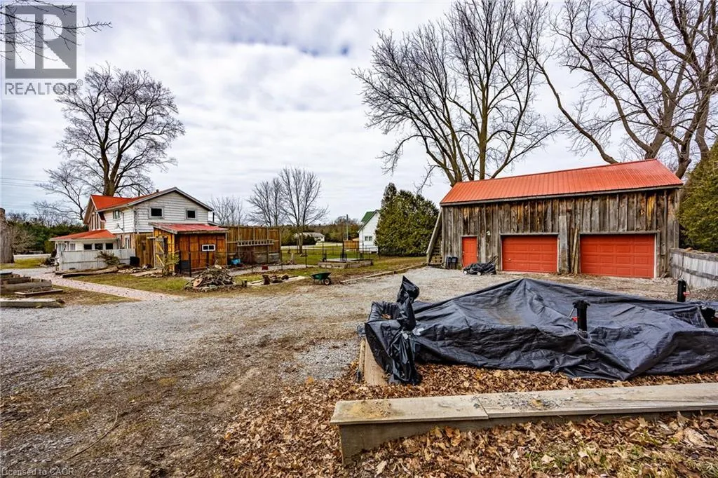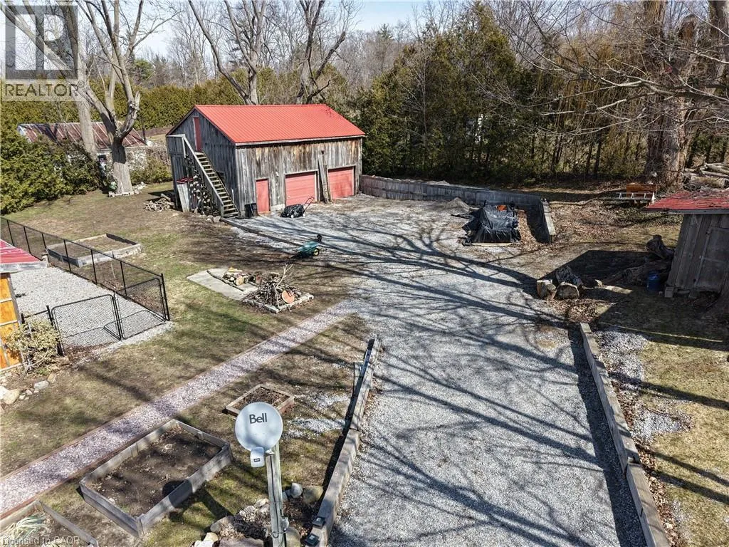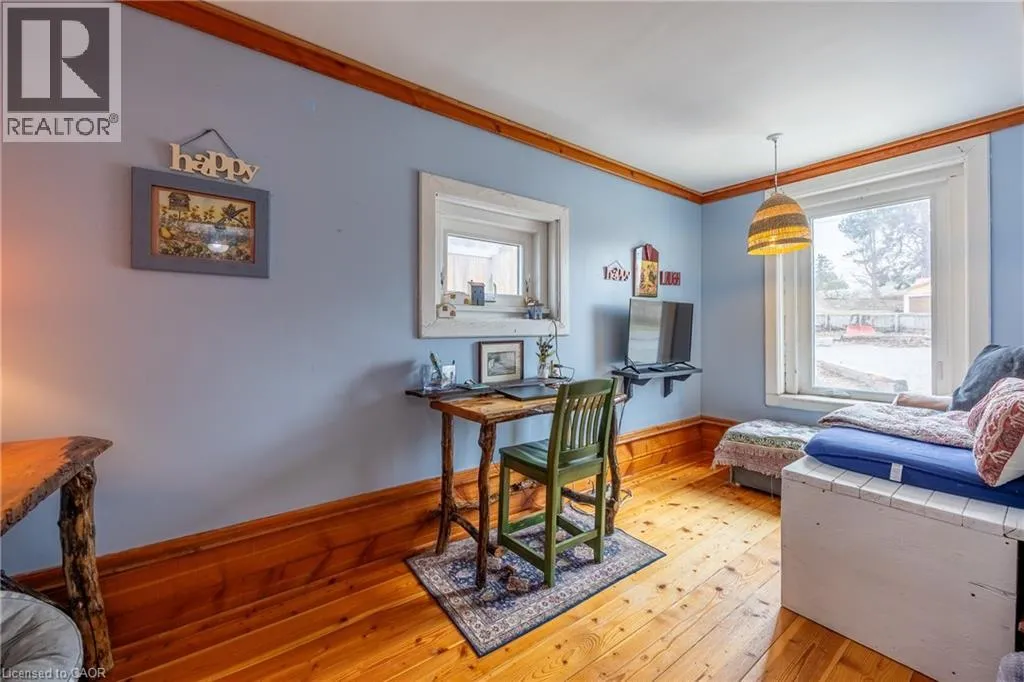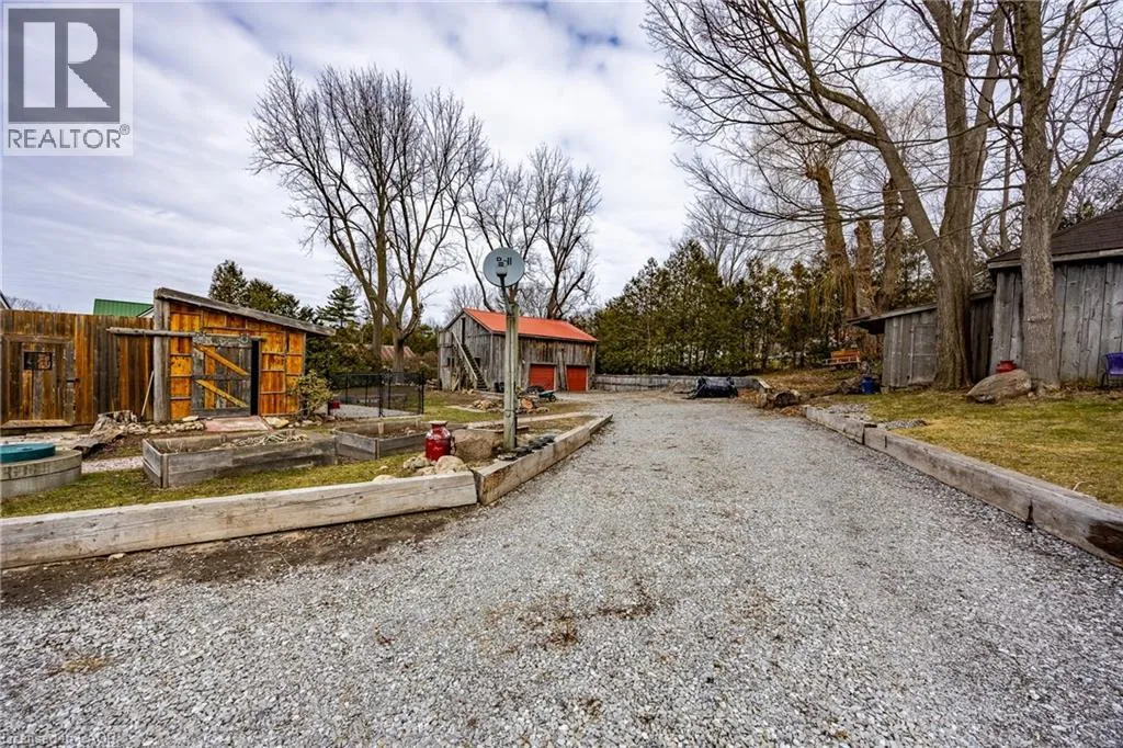 Highway 59 to Milne Street in Walsingham 2 story family home on a large lot in Walsingham. This home features old country charm (it used to be the Walsingham Post Office) with spacious rooms, large wooden trim, and hardwood flooring... but also modern convenience (AC 2024, natural gas forced air Furnace 2022). Windows are approximately 6 years old. The main floor features a screened in porch which is convenient as a mud room, kitchen with eat-at peninsula, office area, formal dining room, living room, 3 piece bath with laundry, bonus room that connects to the back yard patio area. Upstairs there are 3 bedrooms each with plenty of closet space, and a full bath. The basement adds even more storage space! There is a double car detached garage/shop that is heated, with a large loft area above. Another shed area that used to be a black smith shop - great for storage. Also a garden shed at the back of the house. Metal roof. Fenced yard is ideal for kids and/or pets. A great move-in-ready home and property! Alternate mls X12925194 (id:27476)
