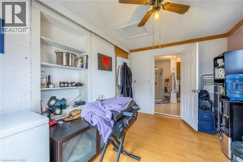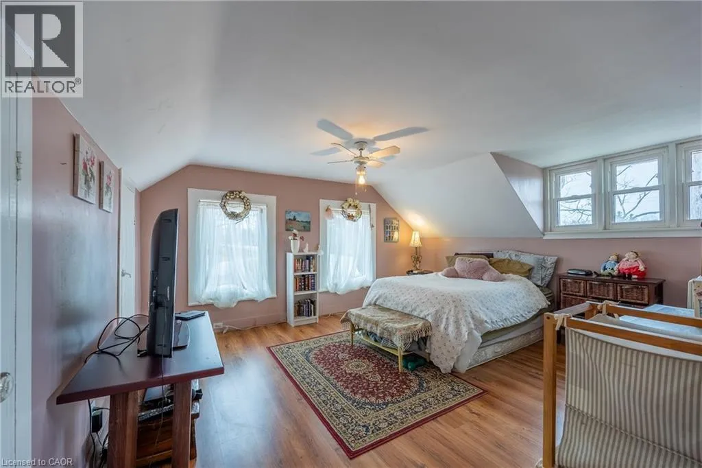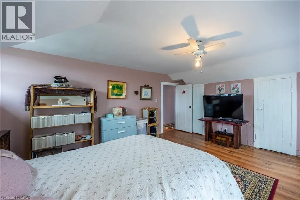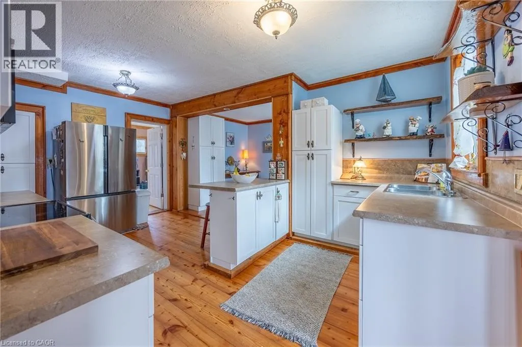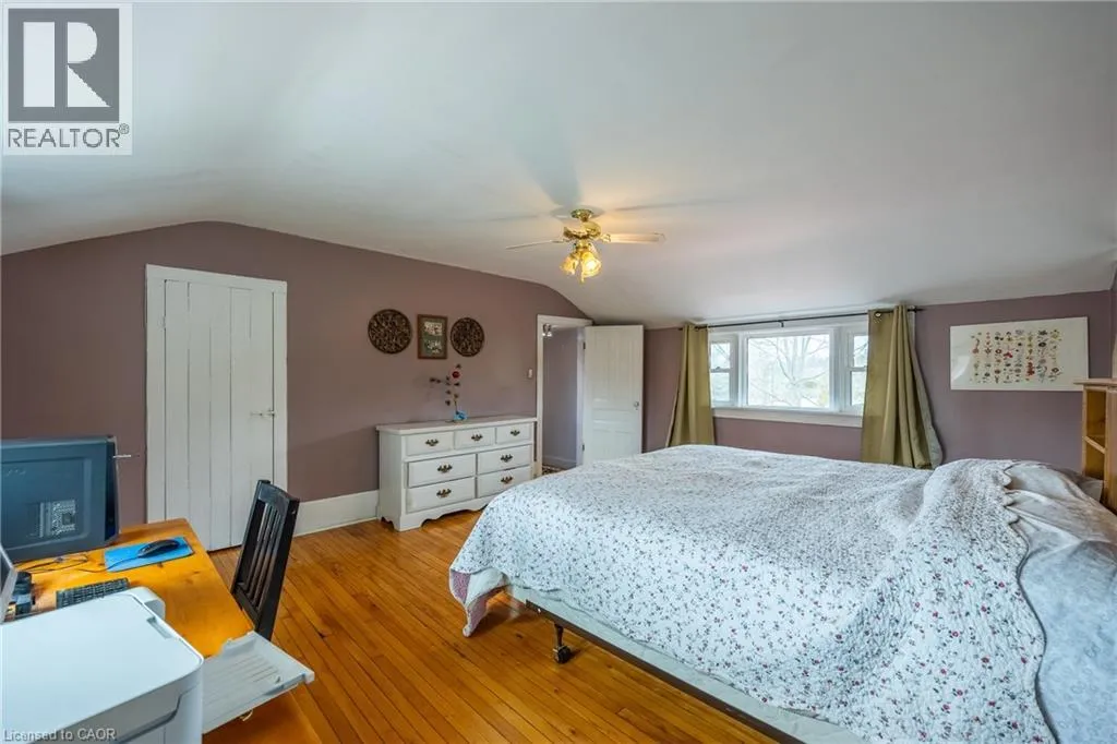 Highway 59 to Milne Street in Walsingham 2 story family home on a large lot in Walsingham. This home features old country charm (it used to be the Walsingham Post Office) with spacious rooms, large wooden trim, and hardwood flooring... but also modern convenience (AC 2024, natural gas forced air Furnace 2022). Windows are approximately 6 years old. The main floor features a screened in porch which is convenient as a mud room, kitchen with eat-at peninsula, office area, formal dining room, living room, 3 piece bath with laundry, bonus room that connects to the back yard patio area. Upstairs there are 3 bedrooms each with plenty of closet space, and a full bath. The basement adds even more storage space! There is a double car detached garage/shop that is heated, with a large loft area above. Another shed area that used to be a black smith shop - great for storage. Also a garden shed at the back of the house. Metal roof. Fenced yard is ideal for kids and/or pets. A great move-in-ready home and property! Alternate mls X12925194 (id:27476)