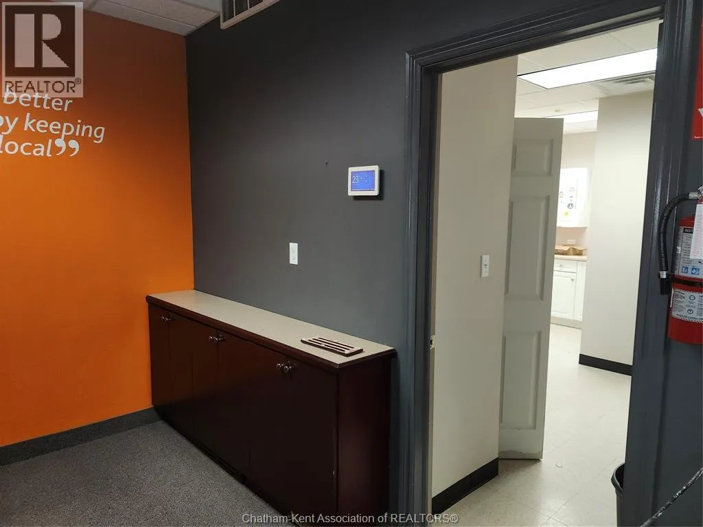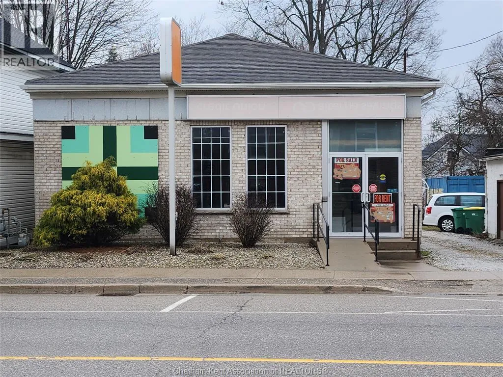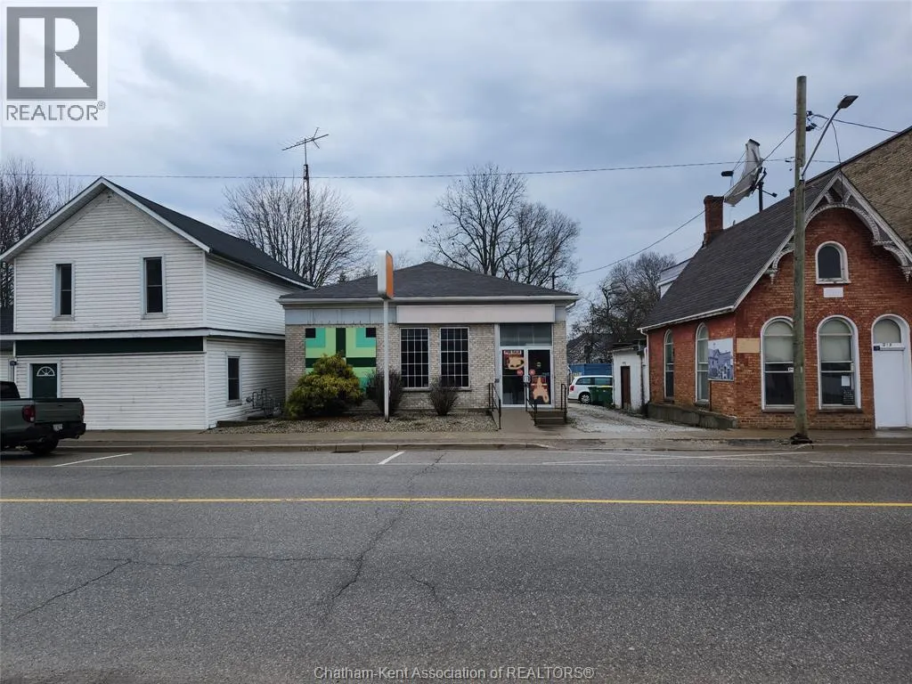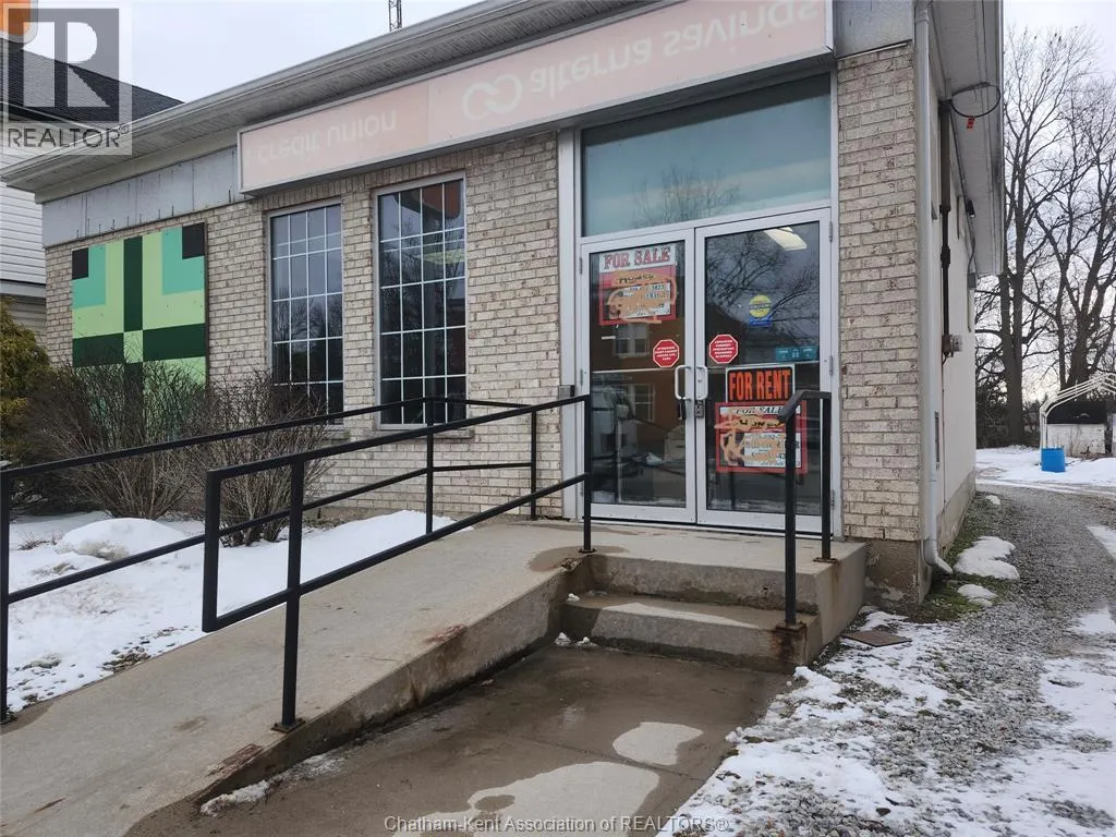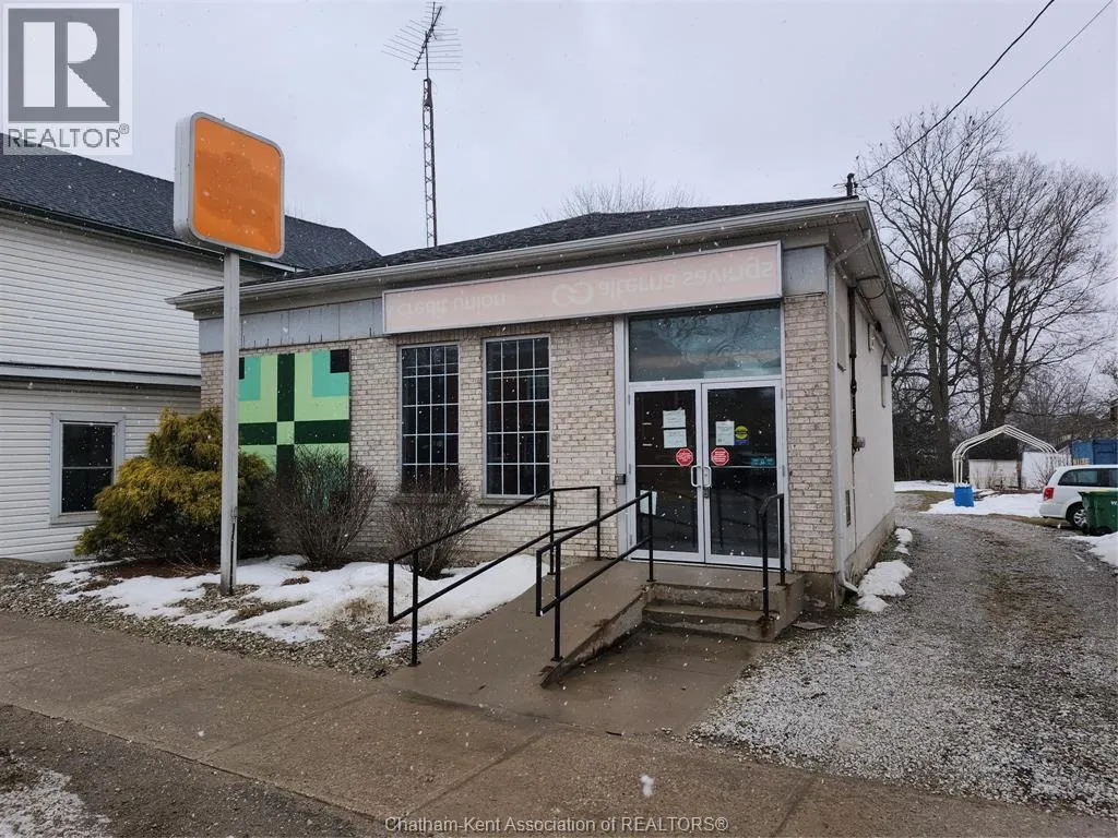 Prime Commercial Opportunity in Wardsville Freestanding commercial building located in the heart of Wardsville, Ontario, in Southwest Middlesex. Conveniently situated approximately 35 minutes from both London and Chatham, offering excellent regional accessibility. 1789 Longwoods Road features approximately 1,291 sq. ft. of space on a 0.184-acre lot. The building was previously operated as a financial institution and offers a functional layout including a vestibule entrance, reception/waiting area, three private offices (one with direct access from the reception/counter area), washroom, kitchenette, and secure room. The property includes a ramped entrance for accessibility. Rear on-site parking is available and accessed via a shared driveway along the south side of the building. The parking area was regraded approximately two years ago (gravel surface). Zoned C1 (Central Core), permitting a wide range of commercial uses including retail, office, medical/clinic, personal service, restaurant, fitness facility, and place of worship. The flexible zoning supports both owner-occupier and investment opportunities. Potential for future residential rezoning subject to municipal approval. Buyers to complete their own due diligence regarding permitted uses and zoning. (id:27476)