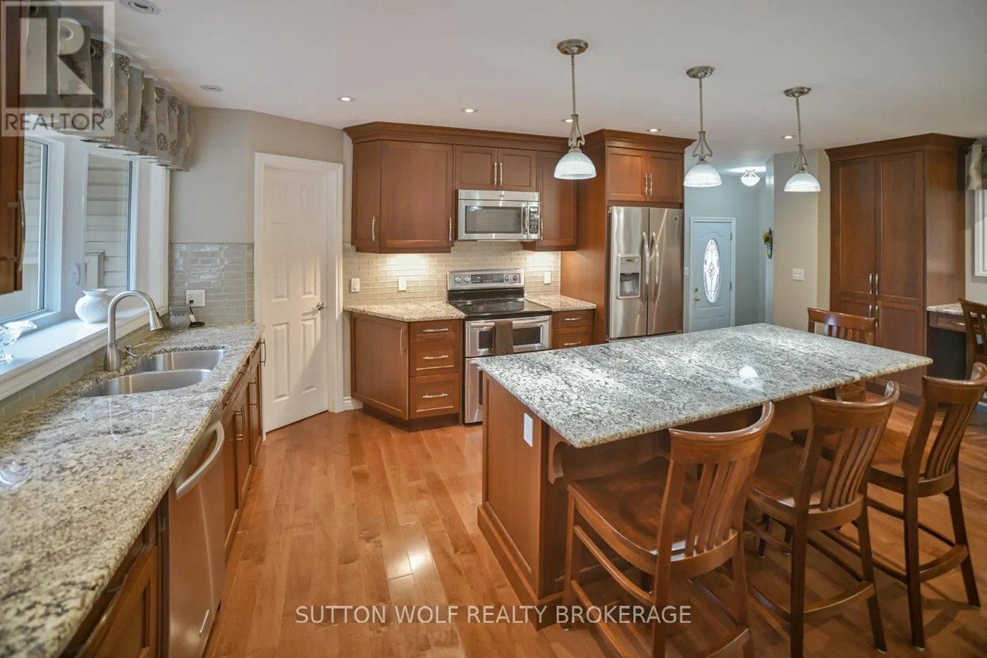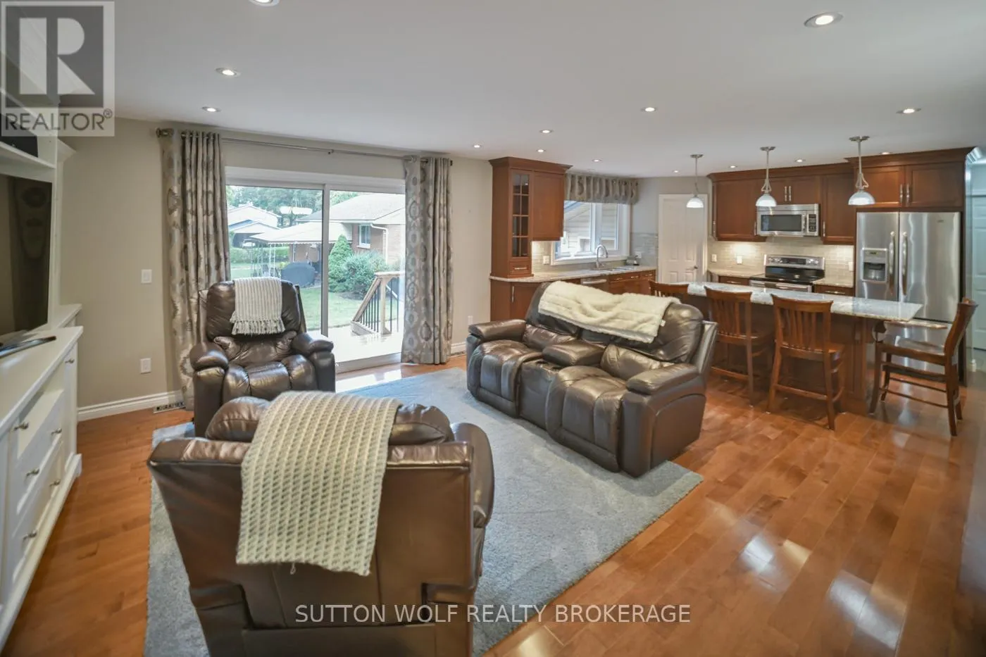 Cross Streets: Confederation Line. ** Directions: Confederation Line to Sunset Avenue. Welcome to 60 Sunset Street, Watford this amazing totally renovated open style upgraded home, cherry custom kitchen cabinets with granite counter tops, lots of built ins, patio doors off the kitchen lead to deck, and hardwood flooring throughout. This home offers 3 spacious bedrooms with 5 pc cheater en-suite on the main floor. Updated bathrooms, windows, new roof soffits and facia have been updated. Lower level with family room games room and office plus lower level 3 pc bathroom. 1 1/2 car insulated garage and a newer double concrete driveway. Spotless and a pleasure to show! (id:27476)