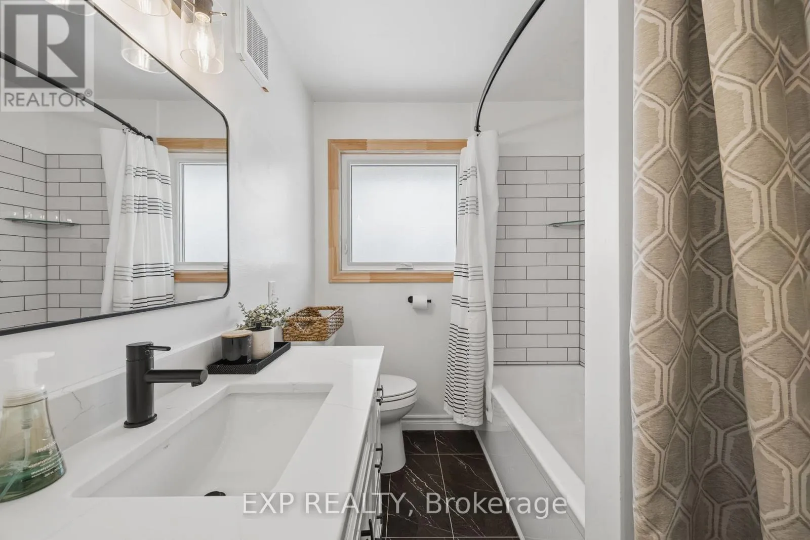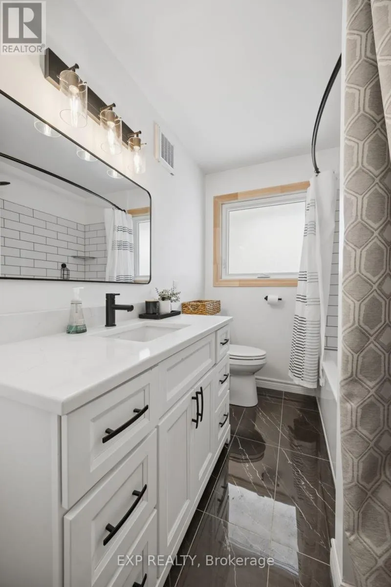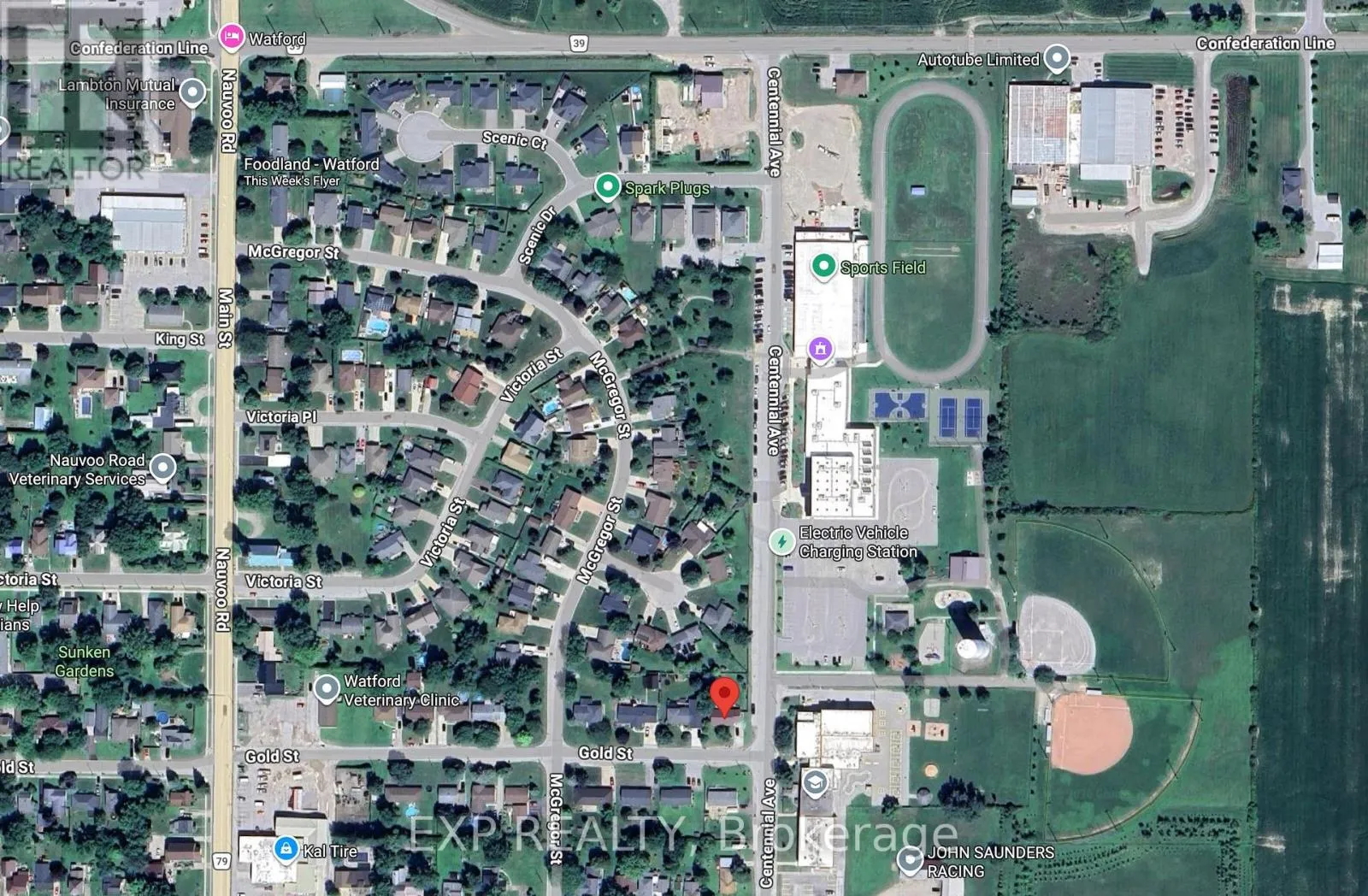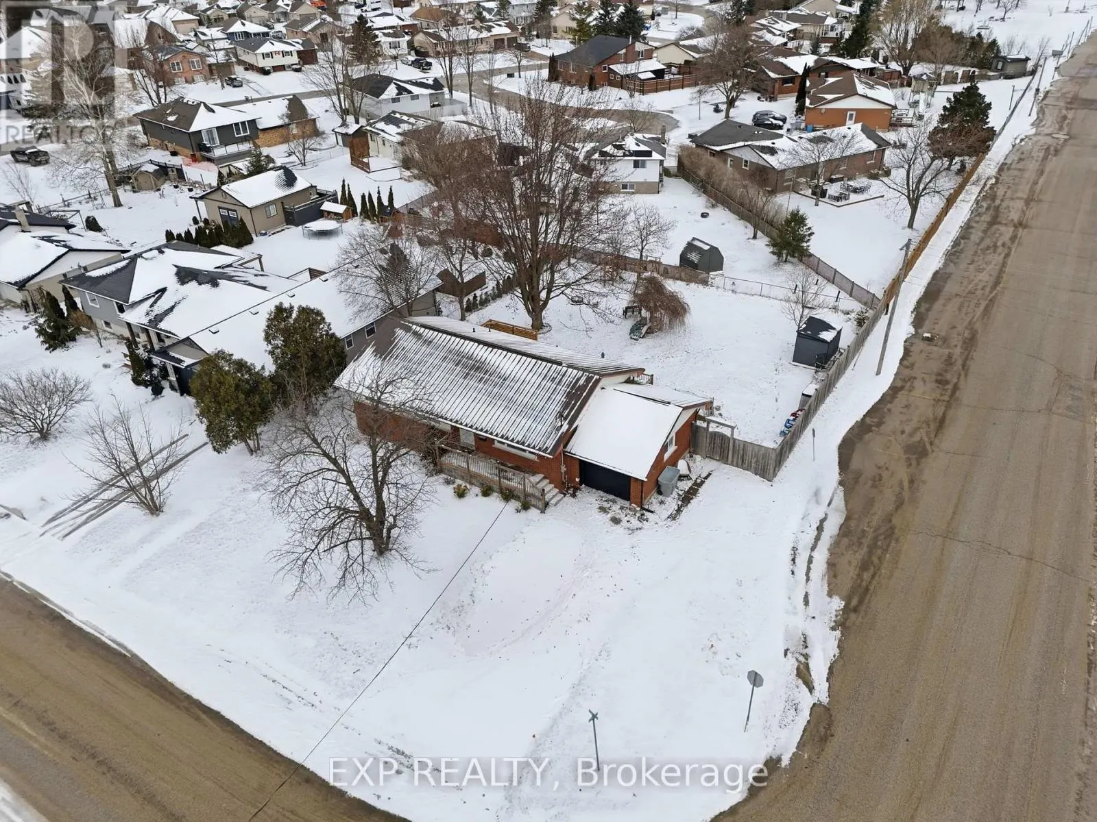 Cross Streets: Centennial Ave and Gold St. ** Directions: Follow Nauvoo Rd into Watford and turn East on Gold St to Centennial Ave. Home is on the north corner lot. Welcome to this beautifully updated all-brick bungalow in the heart of Watford, ideally located directly across the street from the town's public school, East Lambton Community Complex, and Sports Field. An unbeatable location for families and anyone who values convenience and community living. This well-maintained home offers 3 bedrooms on the main floor and an additional bedroom in the fully finished lower level, along with a brand new modern 4-piece bathroom upstairs and a brand new 3-piece bathroom downstairs. The bright main level features hardwood flooring, updated windows (2025), and thoughtful upgrades that make this home move-in ready. The finished lower level was completed just one year ago, featuring luxury plank flooring, new carpet, and plenty of additional living space. A new sump pump adds peace of mind even though this home has no water issues. Major mechanical updates include a gas forced-air furnace (2015), updated ductwork, and central air conditioning (2015). The home also features a durable steel roof inspected last year, repaired eavestroughs, and a poured concrete foundation. The attached single-car garage features a brand new epoxy floor, new garage door, and automatic opener. Step outside to enjoy the large fully fenced backyard, complete with gates on both sides, mature trees including a beautiful weeping mulberry and maple, a newly built deck with gas hookup for BBQ, and a convenient garden shed. A charming fireplace with existing chimney offers the potential to restore a wood-burning feature if desired. This is a solid, thoughtfully updated home in one of Watford's most convenient locations. Perfect for families, downsizers, or anyone looking for comfortable small-town living directly across the street from the coolest amenities. (id:27476)