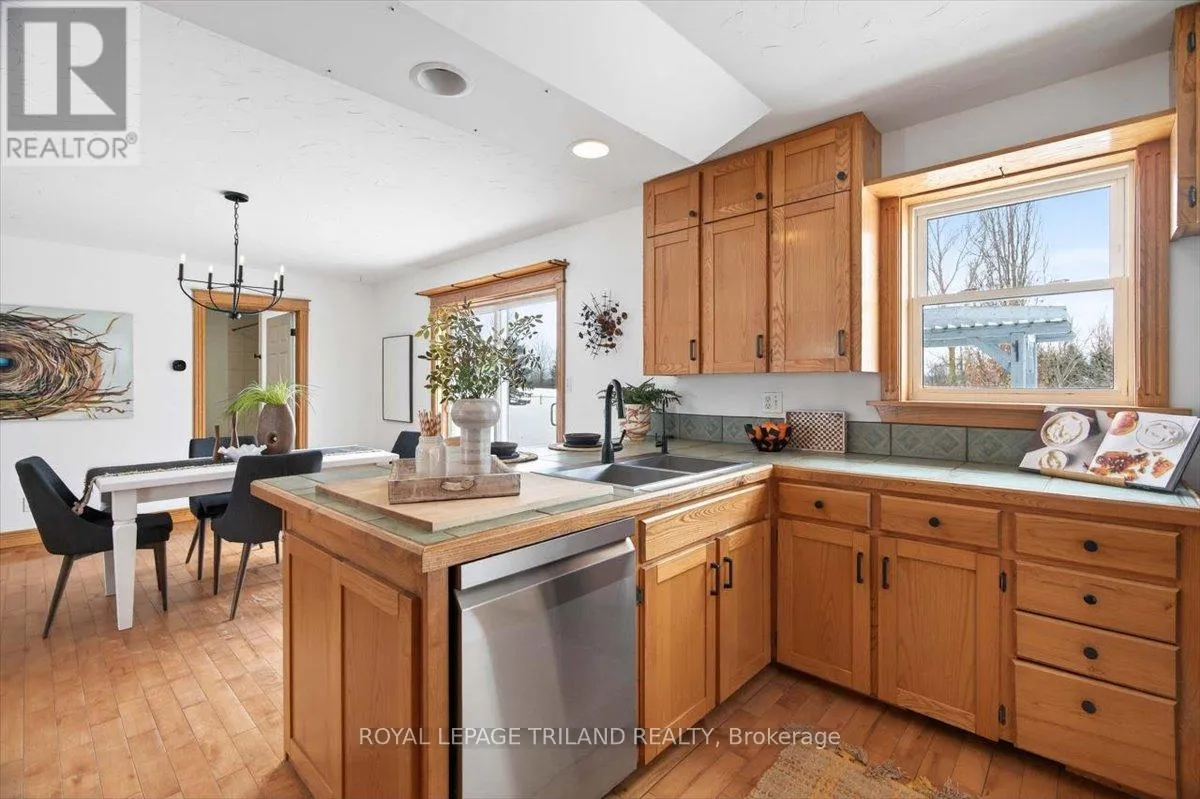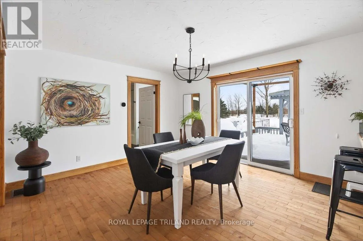 Cross Streets: Between Nauvoo Rd and Underpass Rd. ** Directions: 2 blocks North of Watford on the west side of Nauvoo Rd. Experience the perfect blend of peaceful country living and everyday convenience with this well-maintained 1.5-storey home, ideally located just 2 minutes from Highway 402. Offering 3+1 bedrooms, 3 bathrooms, and approximately 2,118 sq ft of living space, this move-in-ready property is set on a beautifully sized 1.39-acre lot on a paved road. From the moment you arrive, you'll appreciate the tranquil setting, complete with a charming front porch and a picturesque pond with a waterfall. Surrounded by open land, this property offers sweeping panoramic views from both the front and back-creating a true sense of space and privacy. Inside, the bright and spacious kitchen flows seamlessly into the dining area, with direct access to a two-tiered deck-perfect for entertaining, summer barbecues, or simply relaxing and taking in the countryside views. The main floor primary bedroom and convenient main floor laundry add to the home's functional layout, ideal for a range of lifestyles. Upstairs, you'll find additional bedrooms offering flexibility for family, guests, or a home office. Lots of Hardwood and tile flooring throughout provide durability and timeless appeal, while large windows fill the home with natural light. The finished basement expands your living space with a walk-up to the yard and offers excellent potential for an additional bedroom, gym, or hobby space. Outdoors, a fenced area provides a safe place for children and pets to play, while the expansive lot and surrounding farmland create a peaceful, private setting. The two-tiered deck is the perfect spot to enjoy morning coffee or evening sunsets. With multiple entry points and thoughtful features throughout, this property offers both comfort and opportunity-ideal for those looking to enjoy country living without sacrificing convenience. A fantastic opportunity to own a move-in-ready country home with space, views, and room to grow. (id:27476)