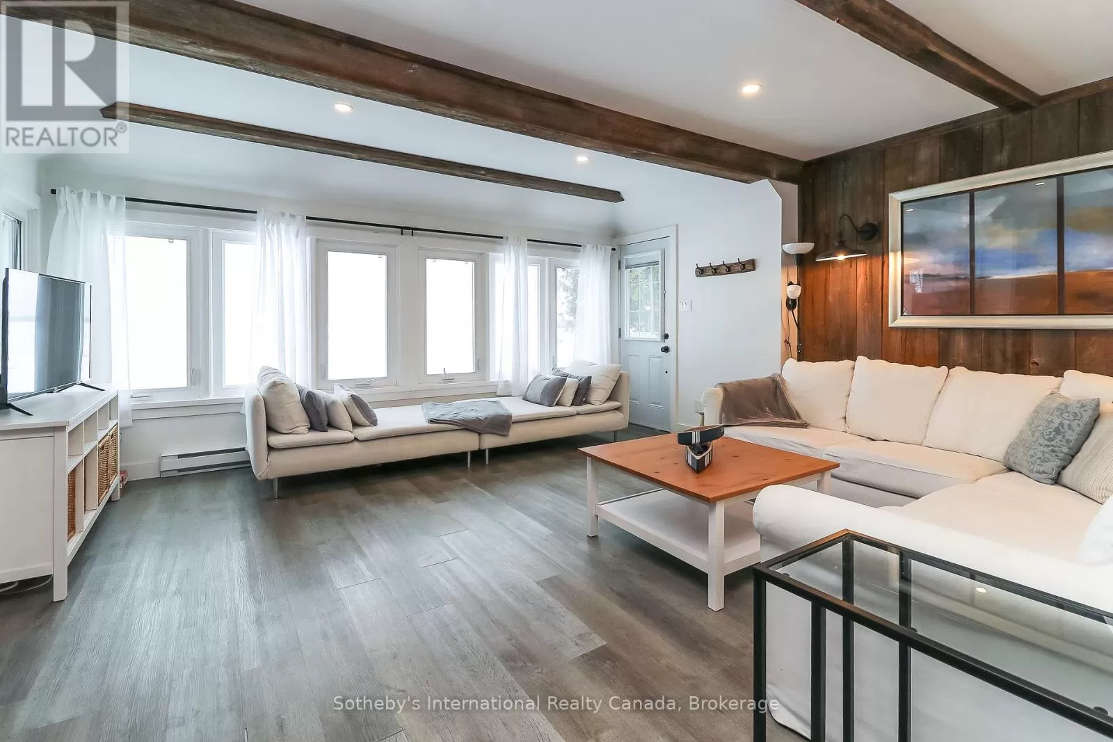 Cross Streets: Beachwood Rd and Sandell St. ** Directions: Beachwood Rd to Sandell St to William Ave. As seen on HGTV! Stunning waterfront property with approx. 56' of pristine, unobstructed Georgian Bay Views. This 3 bedroom, 1 bathroom cottage/chalet is the perfect four seasons escape. Mere minutes to Ontario's premier ski destination AND the world's longest fresh water beach, you are in the heart of it all. Recently updated to a high quality by Scott McGillivray on Season 1 of Scott's Vacation House Rules, you will immediately feel the relief of stress when stepping inside. The reverse floor plan, with bedrooms and bathroom on ground level and the incredible open concept upper level, with eat-in kitchen and living room, allows for unobstructed views of sunsets and endless water. Walk-out from the bright and cozy living room to the incredible glass railing deck, perfect for outdoor entertaining. Down the outside stairs from the deck you will find a sandy oasis complete with Muskoka chairs, a firepit and easy access into the water. The detached bunkie provides for added three season sleeping, a cool hangout for the kids and plenty of storage underneath. Don't miss your opportunity to have a little slice of Canadian heaven! **Being Sold Completely Turn-Key** (id:27476)