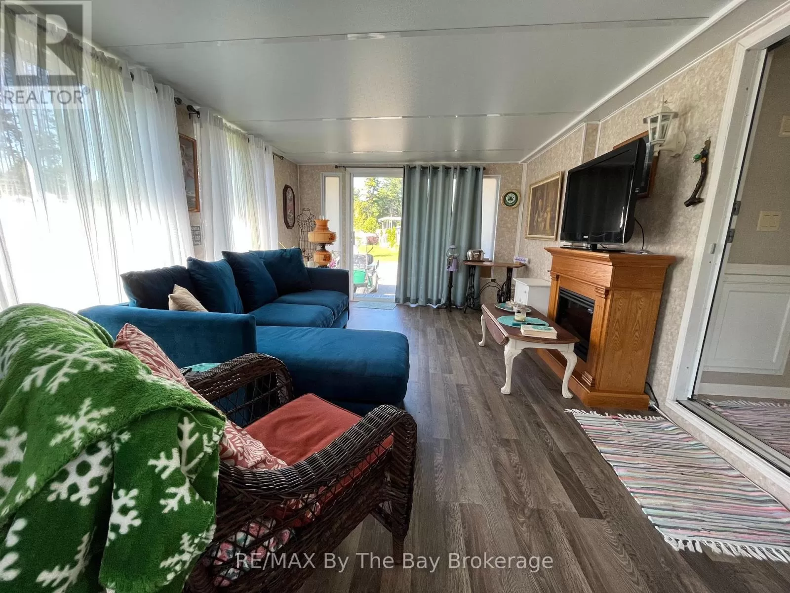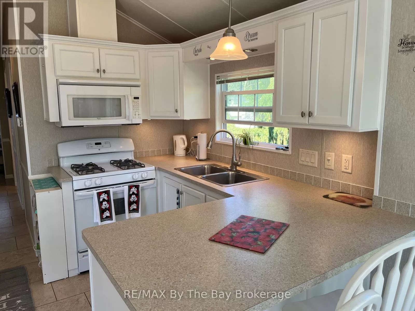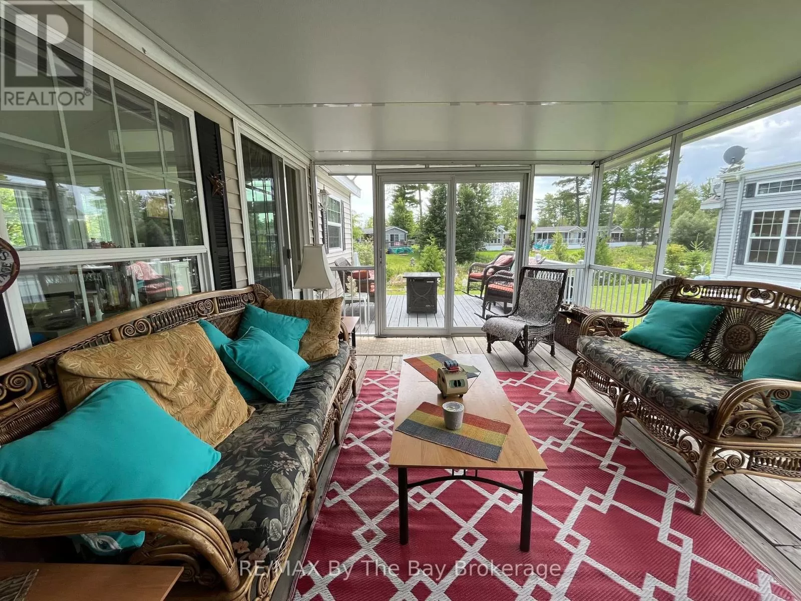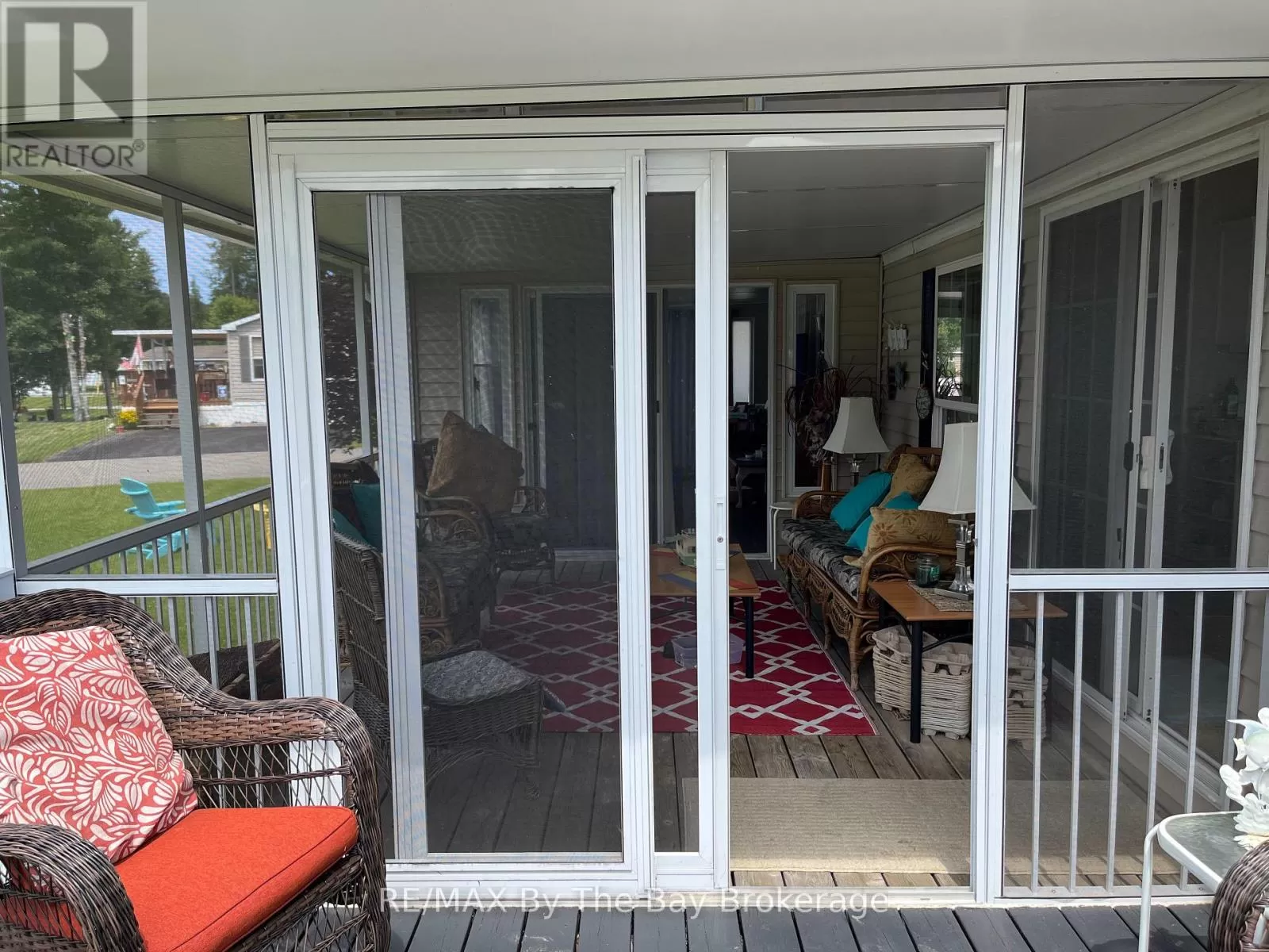 Theme Park Drive-River Road West Golf cart included! Embrace the charm of a seasonal retreat in the coveted Countrylife Resort, where tranquility meets recreation from end of April to mid November. Nestled on a premium waterfront lot, this 2011 Woodland Park Muskoka Model exudes a cozy allure. Boasting 2 bedrooms and 1 bathroom, along with two sunrooms, there's ample space to host family and friends. Step outside to a spacious deck, complete with a separate 15x11 screen room, all offering picturesque water views. With paved parking for two cars, convenience is at your fingertips, and a brief stroll leads you to the sandy shores. Enjoy modern comforts with central A/C, natural gas heat, and municipal water and sewer, ensuring minimal upkeep. This cottage is poised for your family's enjoyment. The resort itself offers an array of amenities including pools, a splash pad, clubhouse, tennis court, playgrounds, and mini golf, ensuring endless entertainment. Rest easy in this gated community with seasonal security. Meticulously maintained, this unit is a must-see. Secure your spot in this idyllic retreat with seasonal site fees for 2025 priced at $7,610. Don't miss the chance to create cherished memories in this welcoming lakeside haven. (id:27476)