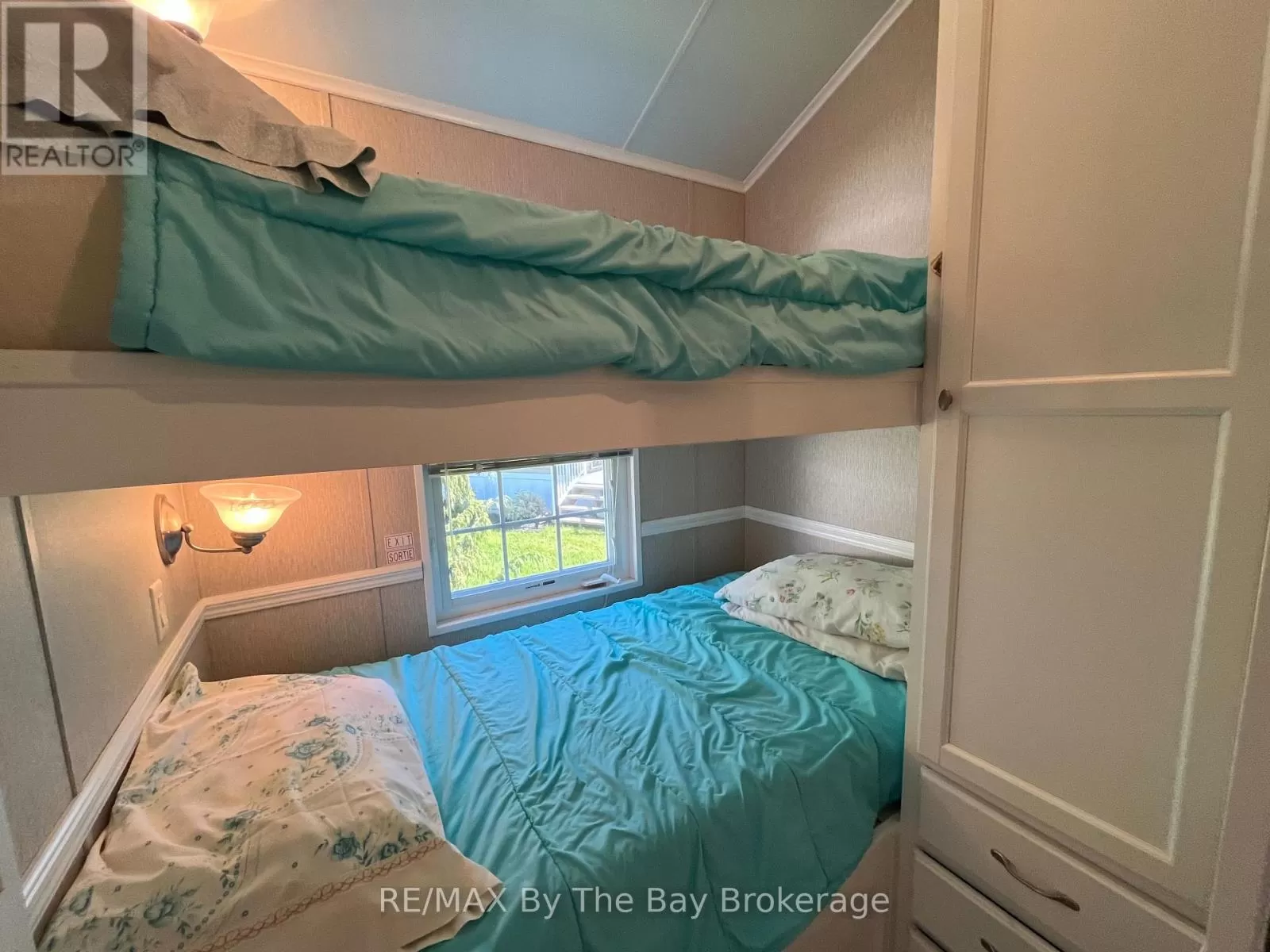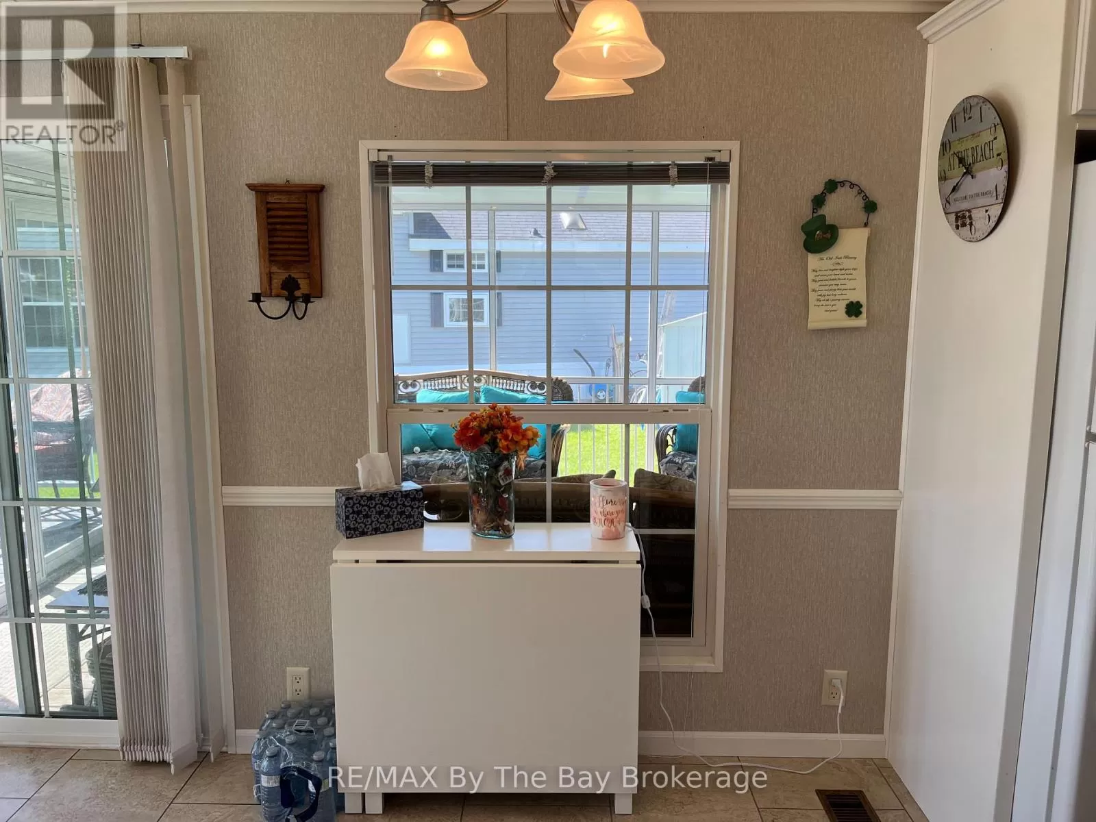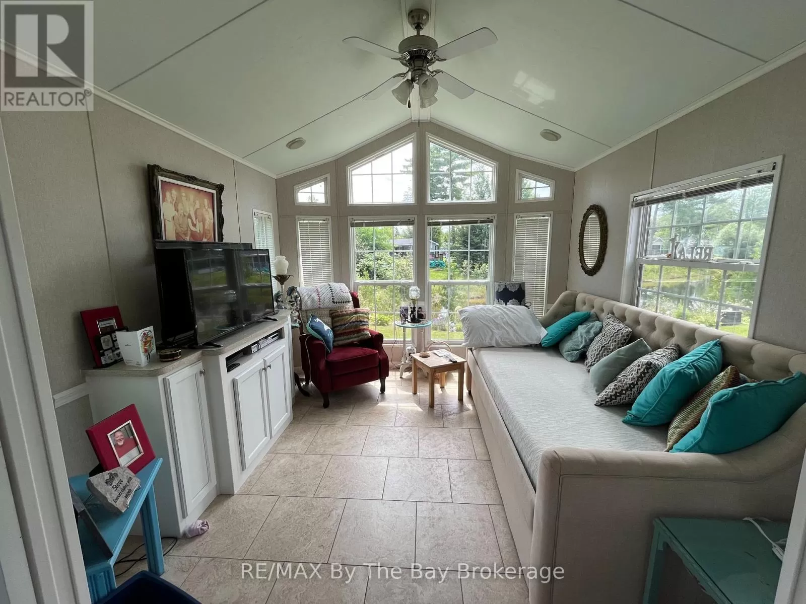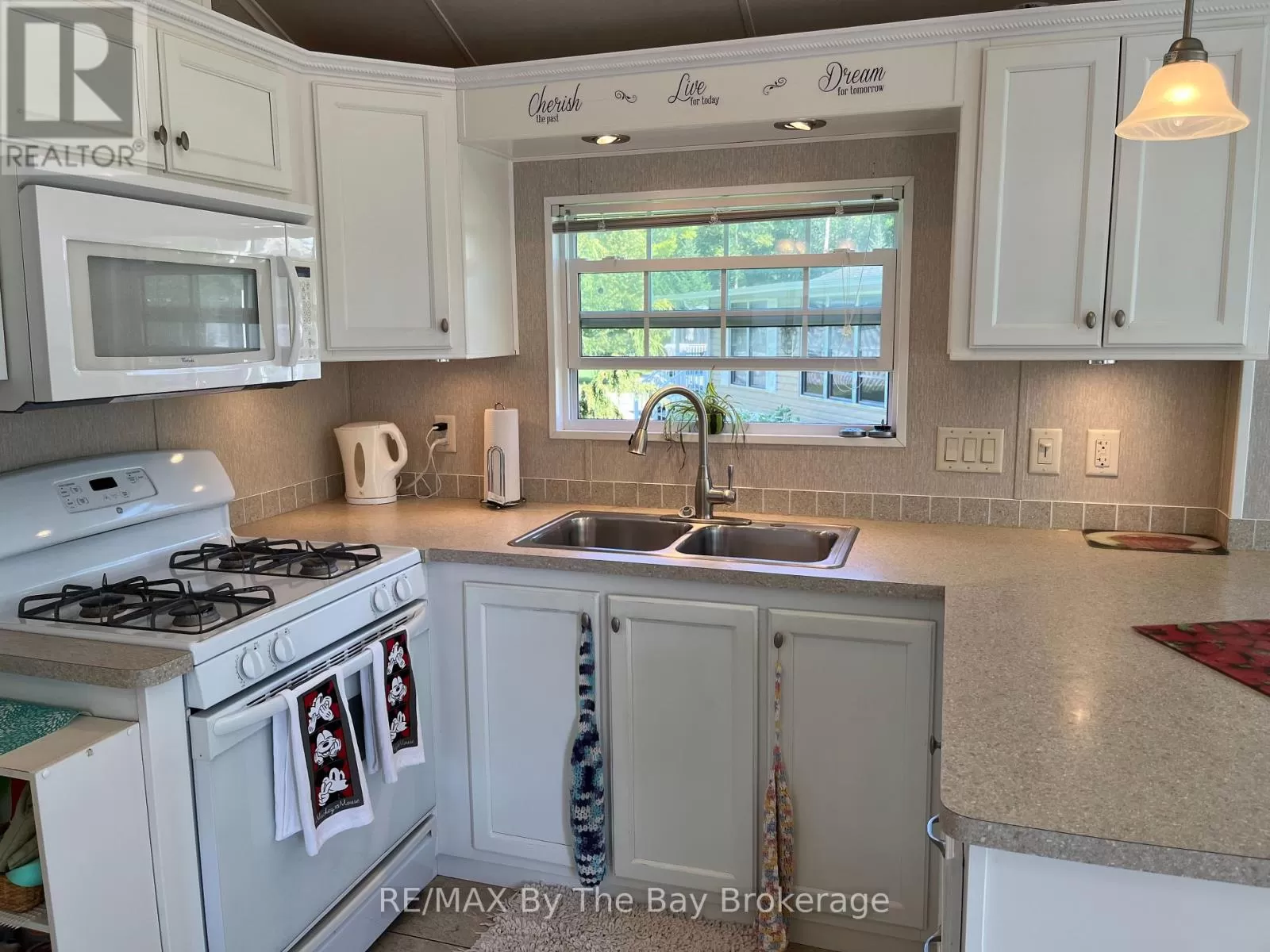Theme Park Drive-River Road West Golf cart included! Embrace the charm of a seasonal retreat in the coveted Countrylife Resort, where tranquility meets recreation from end of April to mid November. Nestled on a premium waterfront lot, this 2011 Woodland Park Muskoka Model exudes a cozy allure. Boasting 2 bedrooms and 1 bathroom, along with two sunrooms, there's ample space to host family and friends. Step outside to a spacious deck, complete with a separate 15x11 screen room, all offering picturesque water views. With paved parking for two cars, convenience is at your fingertips, and a brief stroll leads you to the sandy shores. Enjoy modern comforts with central A/C, natural gas heat, and municipal water and sewer, ensuring minimal upkeep. This cottage is poised for your family's enjoyment. The resort itself offers an array of amenities including pools, a splash pad, clubhouse, tennis court, playgrounds, and mini golf, ensuring endless entertainment. Rest easy in this gated community with seasonal security. Meticulously maintained, this unit is a must-see. Secure your spot in this idyllic retreat with seasonal site fees for 2025 priced at $7,610. Don't miss the chance to create cherished memories in this welcoming lakeside haven. (id:27476)