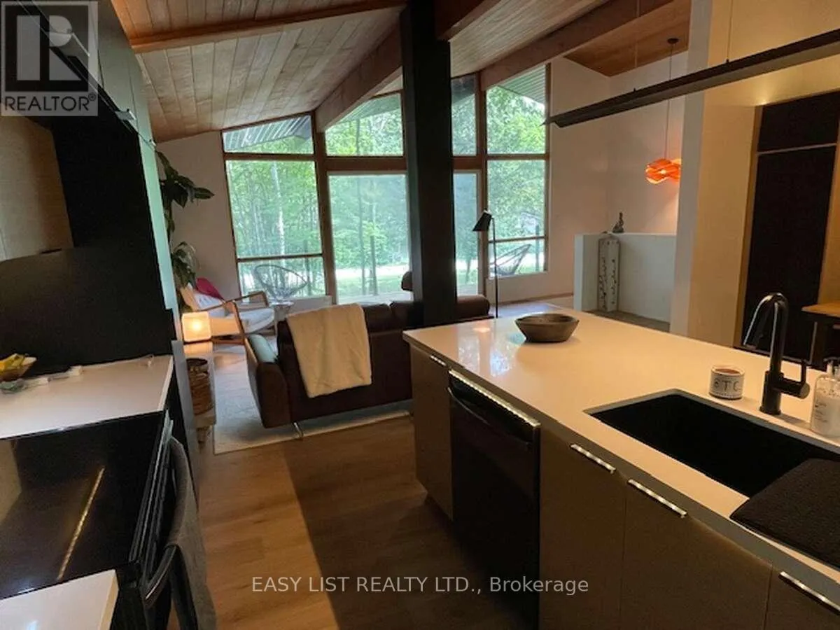 Cross Streets: Eastdale Drive and River Road E. ** Directions: Eastdale Drive and River Road. For more info on this property, please click the Brochure button. Welcome to this mid-century modern four-season home, just a short walk from the sandy shores of Wasaga Beach. Nestled on a quiet cul-de-sac and surrounded by mature trees, this 90' x 187' lot offers a peaceful and private setting with easy access to forest trails, biking paths, and outdoor recreation. This property is ideal for those seeking a full-time residence, a tranquil weekend retreat, or a high-end investment opportunity. This fully renovated property blends original charm with thoughtful upgrades. The interior features preserved 1970s cedar ceilings (15ft high), natural materials, and clean architectural lines. Slab on grade construction. No basement. Main Level: Entry, Office, 1 bdrm, 1 full bath with steam shower, and family room with F/P, bar/sink. Second Level: Kitchen/Dining, Living room with F/P, 2 bdrms, 1 full bath/tub and laundry. Large windows offering calming views of the trees and natural surroundings. Recent upgrades include a new steel roof (2021), 80,000 BTU gas furnace (2025), central A/C (2022), updated plumbing, and full electrical rewire with new panel (2022). Kitchen and dining area feature custom cabinetry, quartz countertops and new appliances incl. Bosch extra quiet dishwasher. Private, fully treed half-acre lot includes a firepit, natural landscaping, and offers a 5 minute walk to the beach via quiet, private pathways. Designed with inspiration from Japanese minimalism and Scandinavian warmth, the home offers calm, curated spaces throughout, making it a rare opportunity in one of Wasaga Beach's most desirable locations. (id:27476)