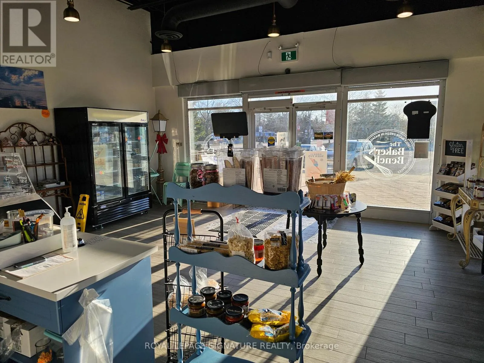 River and Main Bright and modern bakery and quick service restaurant (QSR) in one of the busiest plazas in downtown Wasaga Beach. Located at the intersection of Main Street and River Road West where all of the big retailers, supermarkets, and restaurants are. This location is surrounded by hotels,resorts, and the provincial park with the beach just steps away. Currently operating as a very established and popular bakery. 9-ft commercial hood plus tons of prep area, refrigeration, andover 100 parking spaces. Brand new lease to be provided to qualified operators at $3,000 NetRent with 5 + 5 years. Open for rebranding into a different concept, cuisine, or franchise.Please do not go direct or speak to staff or ownership. Excellent opportunities for a growing brand or franchise to take over an expensive and very high quality build out in a bright corner location of a premium plaza. This is a AAA plaza with lots of big operators. Tons of signage and parking options. This is THE place to be in Wasaga Beach with the Beach Area 1 just a few minute walk away. It benefits from a huge boost in tourism in the summer months and it is surrounded by all kinds of hotels, motels, camping areas, RV parks, and of course the local population. Property Details: 200-amp, 3-phase power supplies this modern unit. It has high ceilings and tons of light as it is southwest facing. Full kitchen with a hood system and tons of prep area in the back with a great retail area ideal for many different concepts. (id:27476)