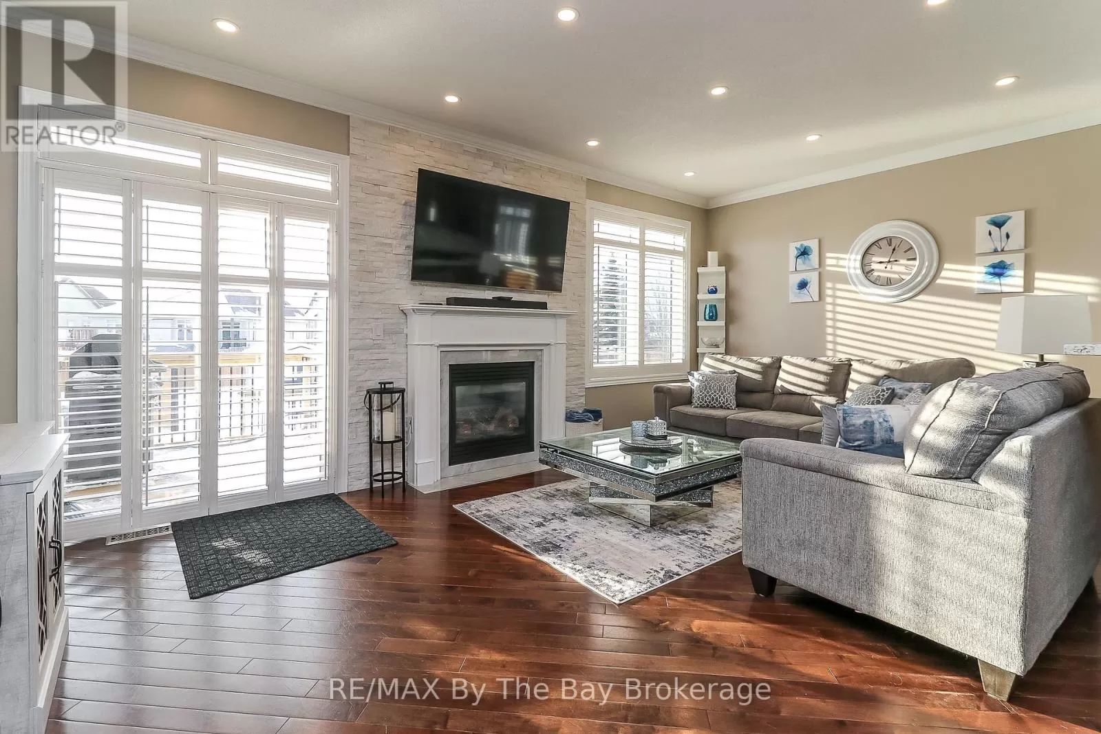 Cross Streets: Middleport Drive. ** Directions: Ryther Road To Middleport Drive To Broadpoint Street. OPEN HOUSE SATURDAY AUGUST 23RD NOON TO 2PM. Are you on the lookout for a ready-to-move-in family home in Wasaga Beach that beautifully blends style with practicality? This home offers over 2,500 square feet of flexible living space, catering to growing families, dedicated professionals, retirees, and those looking to downsize.The open-concept main floor features a spacious family room with a cozy gas fireplace, a modern kitchen, and a dining area highlighted by 9-foot ceilings and elegant pot lights. There are 3 bedrooms on the main floor, ideal for families needing extra space or professionals seeking a work-from-home environment. One bedroom, slightly set apart, is currently used as an office, boasting impressive 14-foot ceilings to foster creativity.Step outside to a fully fenced backyard with a 4-tier deck, landscaped walkway and an above-ground pool plus a hot tub. Large yards like this are rare in modern subdivisions, providing a private retreat perfect for relaxation or family fun, truly capturing the essence of the Wasaga Beach lifestyle.The fully finished basement includes a spacious recreation room, a modern bathroom with a walk-in glass shower, an extra bedroom and a fully equipped kitchen, making it ideal for an in-law suite while still fitting seamlessly into a single-family home. Practical needs are met with ample storage in the crawl space and a roomy double garage with inside entry. Family-friendly area, surrounded by beautiful trails and green spaces, perfect for cycling and walking in summer, and snowshoeing and cross-country skiing in winter. Stonebridge town center, with stores and restaurants like Walmart, Boston Pizza, and Tim Hortons, is only a 5-minute drive away, as is the inviting Beach 1.California shutters, pot lights, an 18-foot gas-heated above-ground pool, a pool bar, a hot tub, a hardtop gazebo, a gas BBQ hookup, quartz kitchen countertops, a sprinkler system and a rough-in for central vacuum. Roof was reshingled in 2024. (id:27476)