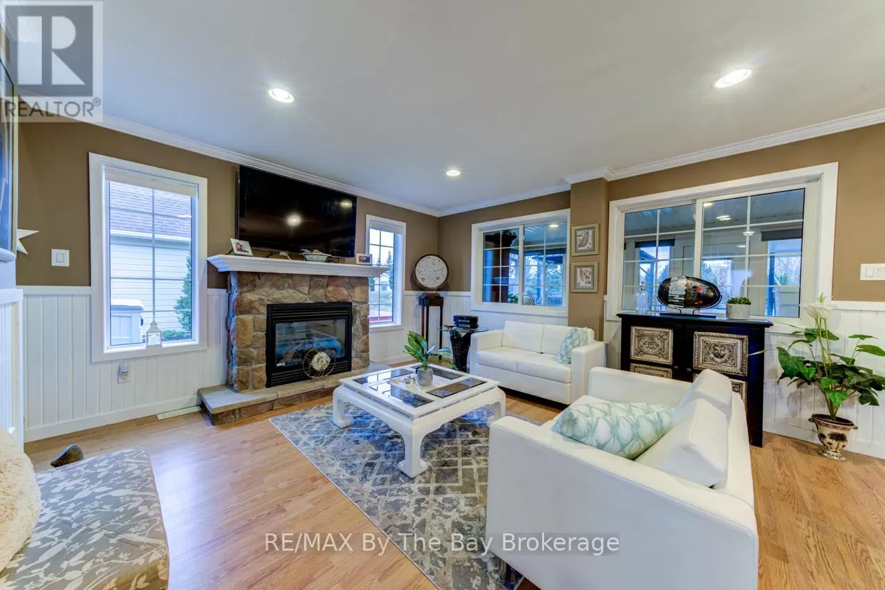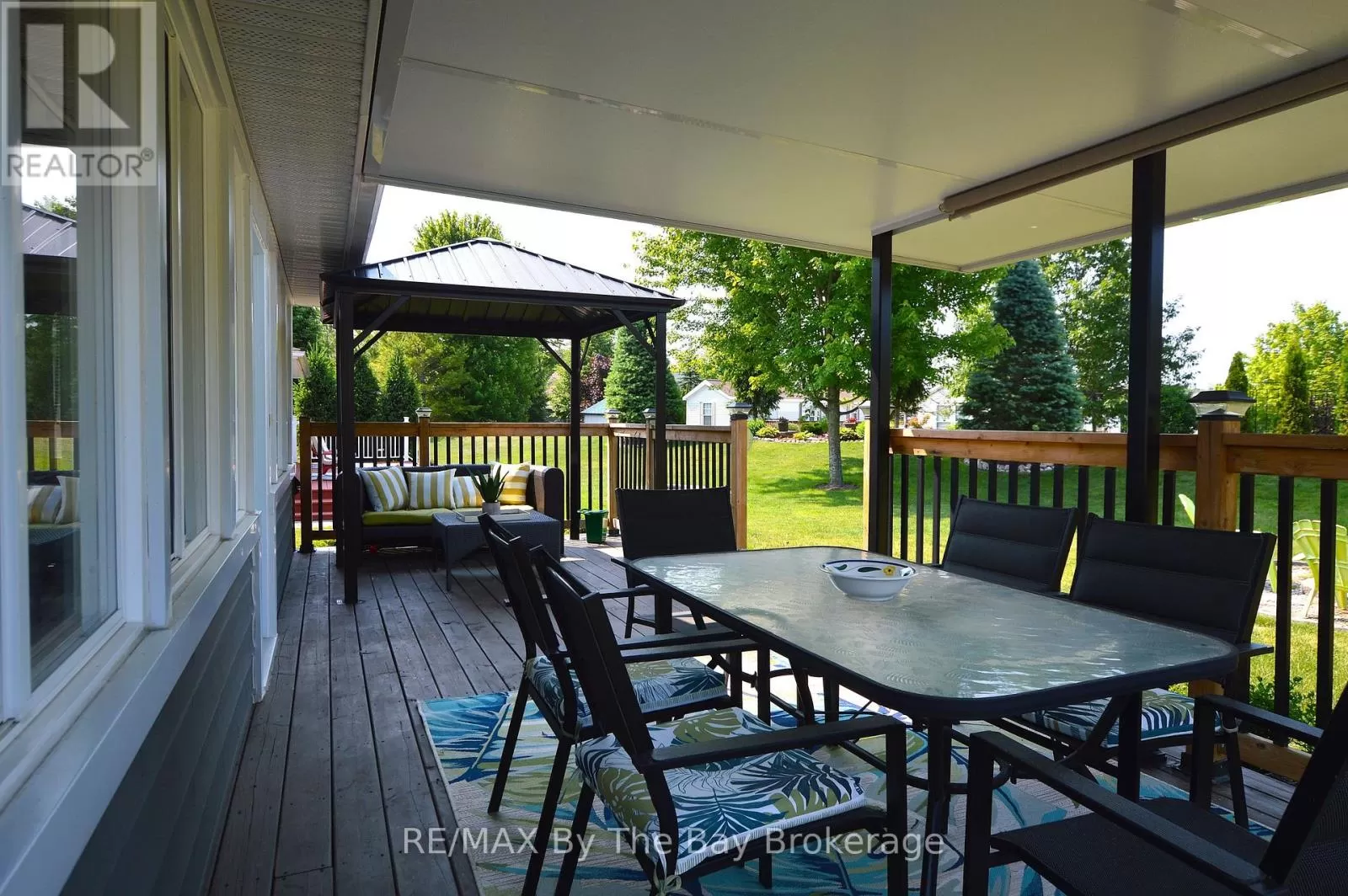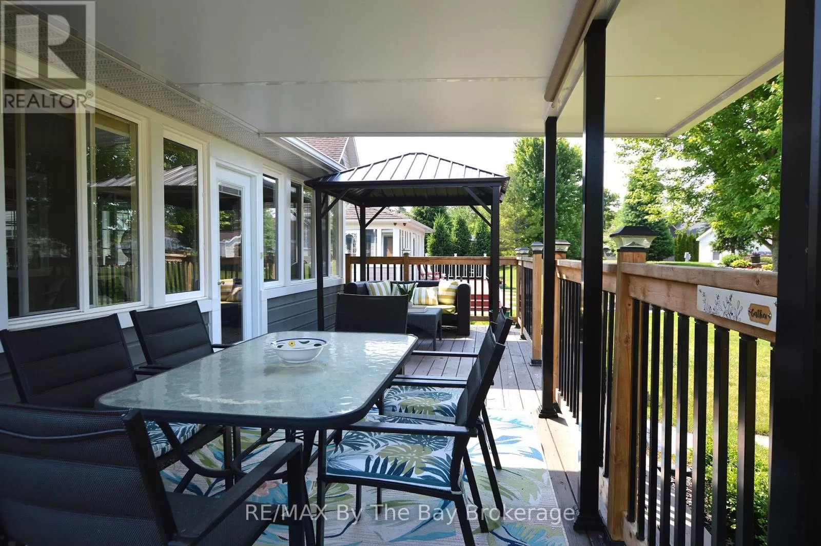 Cross Streets: Theme Park Drive and River Road West. ** Directions: River Road West to Theme Park Drive, Check in with Park Office for access. Welcome to 6 Temagami Trail! Discover this charming 3-bedroom, 2-bathroom home nestled in the sought-after community of Wasaga Country Life Resort, located just minutes from the stunning shores of Wasaga Beach. This lovely home offers a perfect blend of comfort, style, and convenience for those looking for peaceful living. As you step inside, you'll be greeted by an open-concept layout featuring a bright and inviting family room, complete with a cozy gas fireplace. The spacious kitchen offers ample cabinetry, modern stainless steel appliances, and plenty of counter space, making meal prep a breeze. Three season insulated sunroom leads to a spectacular 10' x 29' sundeck boasting an aluminum Sunshade Master, Pergola, and natural gas bbq hook up. The deep lot is complete with beautiful landscaping, low maintenance gardens and invisible pet fencing. Interior upgrades include: crown moulding on the main floor, back-up water pump, stone gas fireplace, quality laminate, Ceramic & Berber flooring. Resort amenities include a fully equipped rec centre, indoor and outdoor pools, playground, mini golf, tennis court, and access to the beach via the walking paths. Leased Land community. Total Monthly fees to new owners: $863.08. (Total monthly fees include: Land Lease: $700, Property Taxes: $163.08), water/sewer billed quarterly. (id:27476)