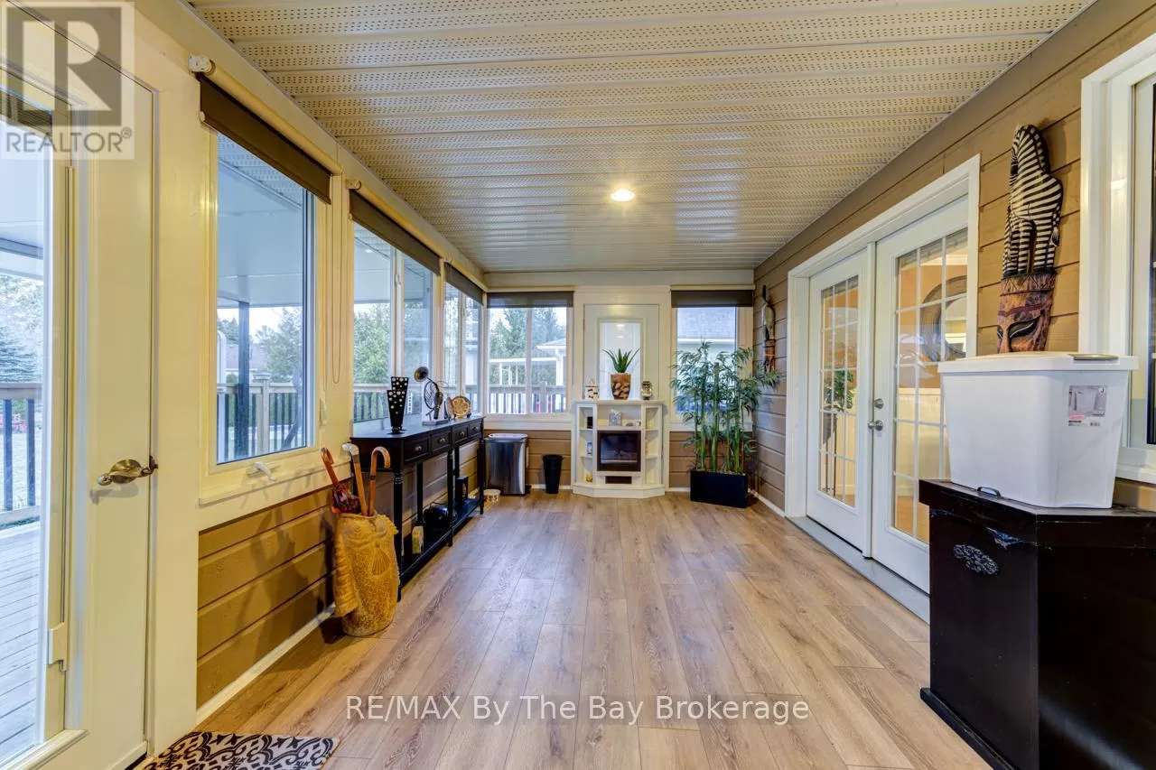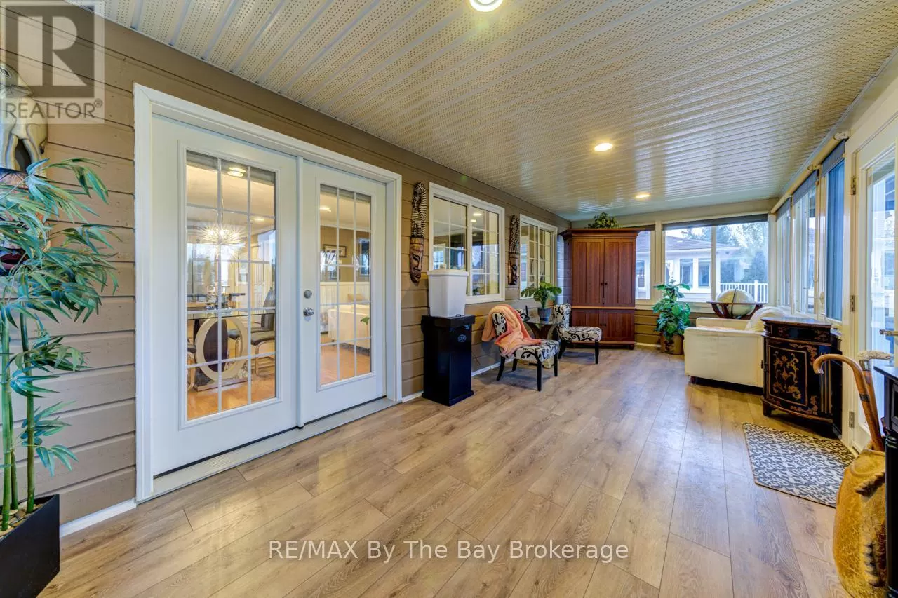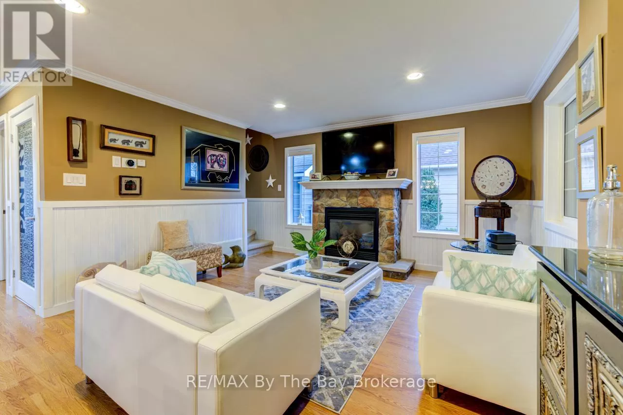 Cross Streets: Theme Park Drive and River Road West. ** Directions: River Road West to Theme Park Drive, Check in with Park Office for access. Welcome to 6 Temagami Trail! Discover this charming 3-bedroom, 2-bathroom home nestled in the sought-after community of Wasaga Country Life Resort, located just minutes from the stunning shores of Wasaga Beach. This lovely home offers a perfect blend of comfort, style, and convenience for those looking for peaceful living. As you step inside, you'll be greeted by an open-concept layout featuring a bright and inviting family room, complete with a cozy gas fireplace. The spacious kitchen offers ample cabinetry, modern stainless steel appliances, and plenty of counter space, making meal prep a breeze. Three season insulated sunroom leads to a spectacular 10' x 29' sundeck boasting an aluminum Sunshade Master, Pergola, and natural gas bbq hook up. The deep lot is complete with beautiful landscaping, low maintenance gardens and invisible pet fencing. Interior upgrades include: crown moulding on the main floor, back-up water pump, stone gas fireplace, quality laminate, Ceramic & Berber flooring. Resort amenities include a fully equipped rec centre, indoor and outdoor pools, playground, mini golf, tennis court, and access to the beach via the walking paths. Leased Land community. Total Monthly fees to new owners: $863.08. (Total monthly fees include: Land Lease: $700, Property Taxes: $163.08), water/sewer billed quarterly. (id:27476)