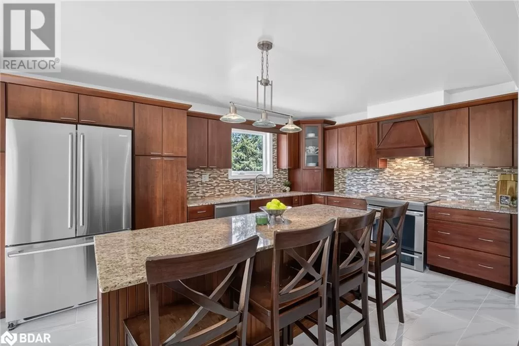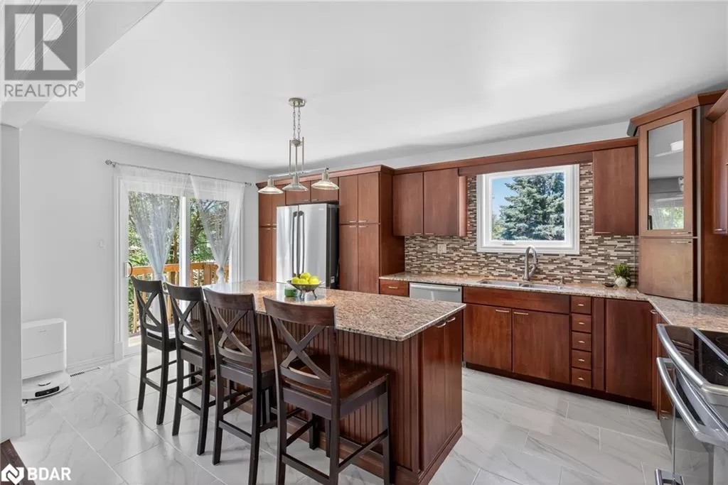 River Rd to Blueberry Trail to Caribou to Birchmount Renovated Raised Bungalow Move-In Ready!Welcome to this beautifully updated raised bungalow offering the perfect blend of comfort and modern style. Step inside to find a bright, open-concept layout featuring a large eat-in kitchen with granite countertops, stainless steel appliances, and abundant pantry space, plus a walk-out to the deck and backyard ideal for entertaining and family gatherings. A separate dining room and a spacious family room with a cozy gas fireplace complete the main living area.The main floor boasts hardwood floors, three generous bedrooms, including a primary suite with a walk-in closet. The finished basement offers incredible living space with three additional bedrooms, a 3-piece bathroom, a laundry room, and a large family room. With no carpet throughout, this home is perfect for easy maintenance and a clean, modern feel. Additional highlights include large windows bringing in natural light, plenty of storage, central vacuum, and central air. Major components such as roof, windows and furnace, are less than 10 years old, giving you peace of mind for years to come. Fully insulated and heated double car garage perfect for hobbyist or mechanic. (id:27476)