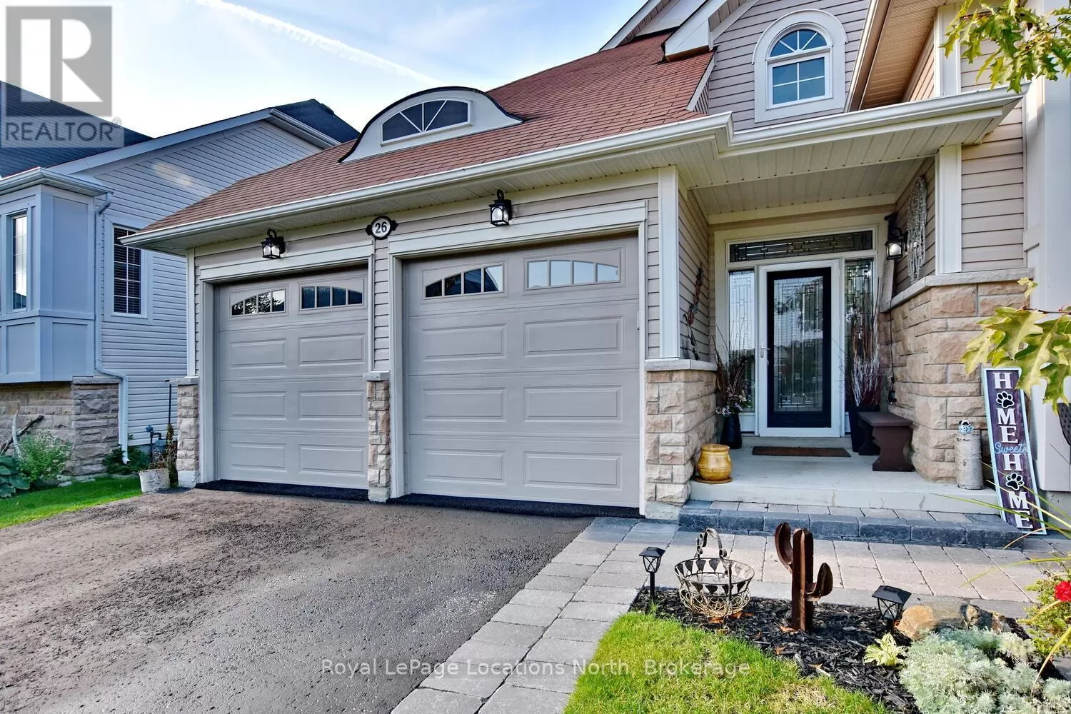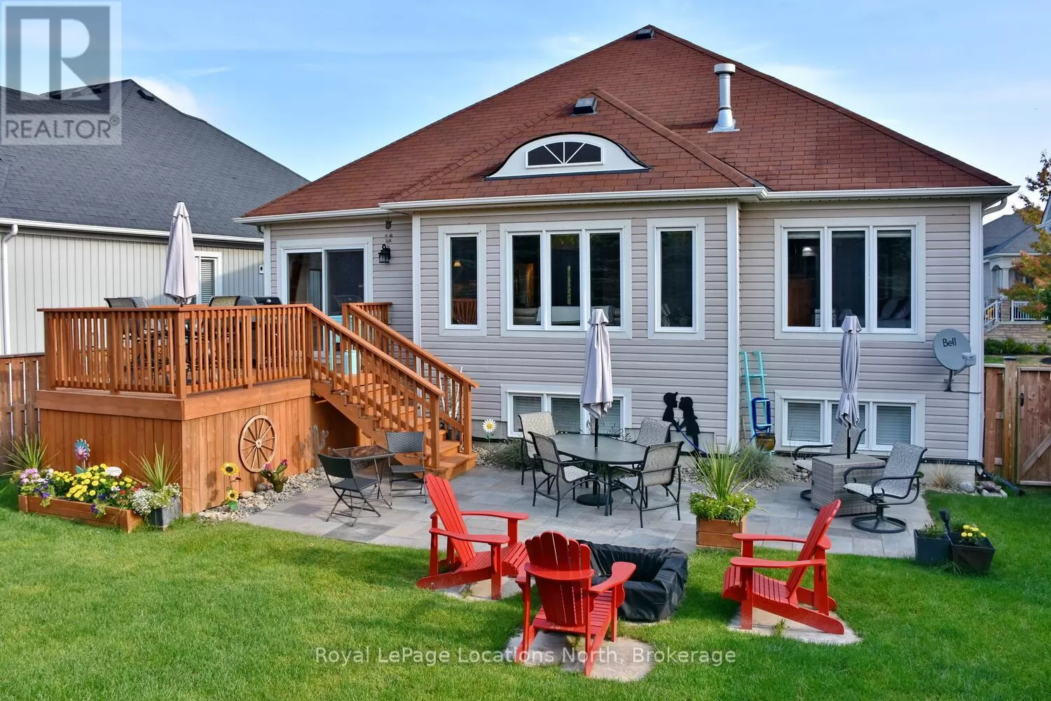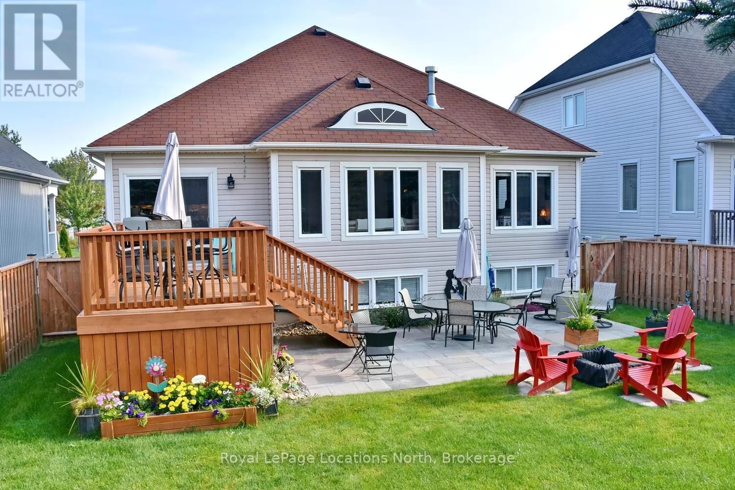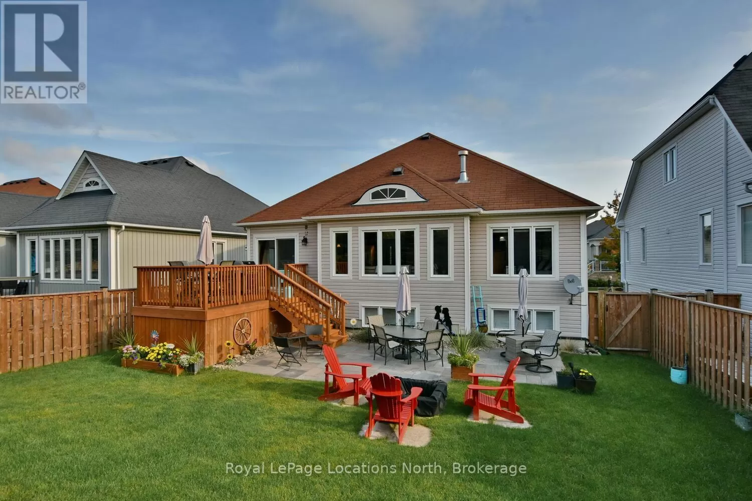 Cross Streets: Starboard Circle And Canoe Dr. ** Directions: Beachwood rd. to Bluewater Gate to Waterview right to Starboard. Bluewater on the Bay! This charming 4 bed, 3 bath bungalow is just off Beachwood Rd on the edge of Collingwood. Enjoy your water view from your landscaped front patio! This open concept kitchen, dining & living room overlooking a fully fenced backyard with firepit, makes entertaining easy! The kitchen features granite counters, stainless steel appliances, tiled back-splash & undermount lighting. The Great room has hardwood floors, pot lights, gas fireplace & walk-out to a recently enlarged back deck w/ storage below. What else can you ask for, except: a main floor primary bed with a 4pc ensuite & walk-in closet, a second bath with a walk-in therapeutic spa tub, a finished lower level with a large family room, two beds & another full bath! The neighborhood is a wonderful area where you can enjoy overlooking Georgian Bay from the clubhouse, featuring a saltwater pool, exercise room, sauna & a party room. Snow ploughing & grass cutting are included in a small monthly fee of $306. Recently installed was the Generac generator, large enough to run the entire home. The garage has been updated with insulated rubber floors, spray foamed, drywalled, climate controlled and insulated garage storm doors (id:27476)