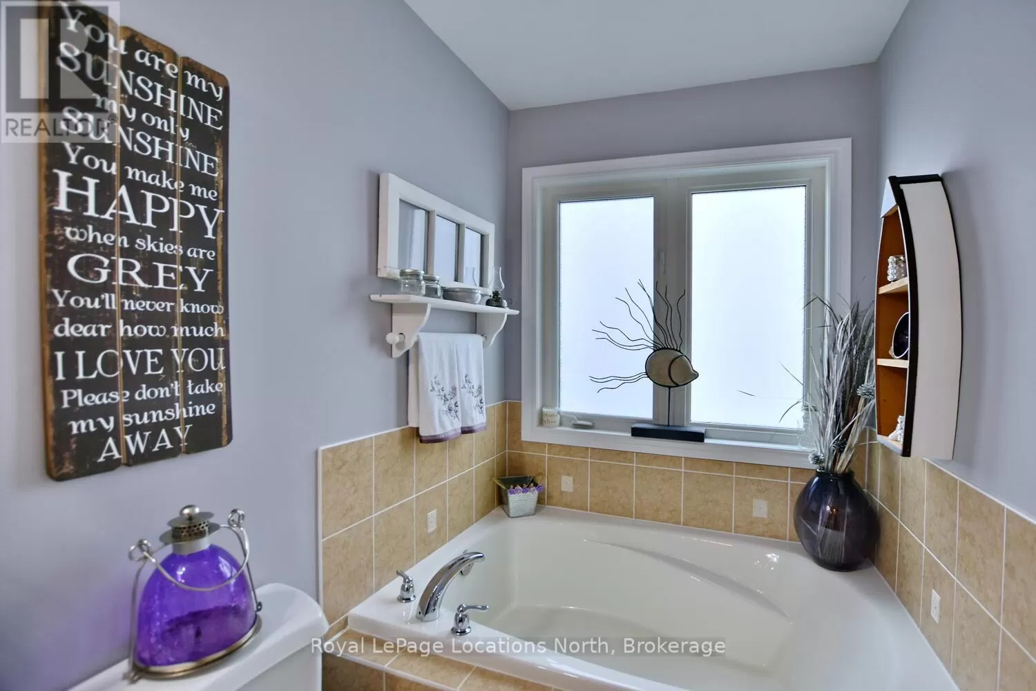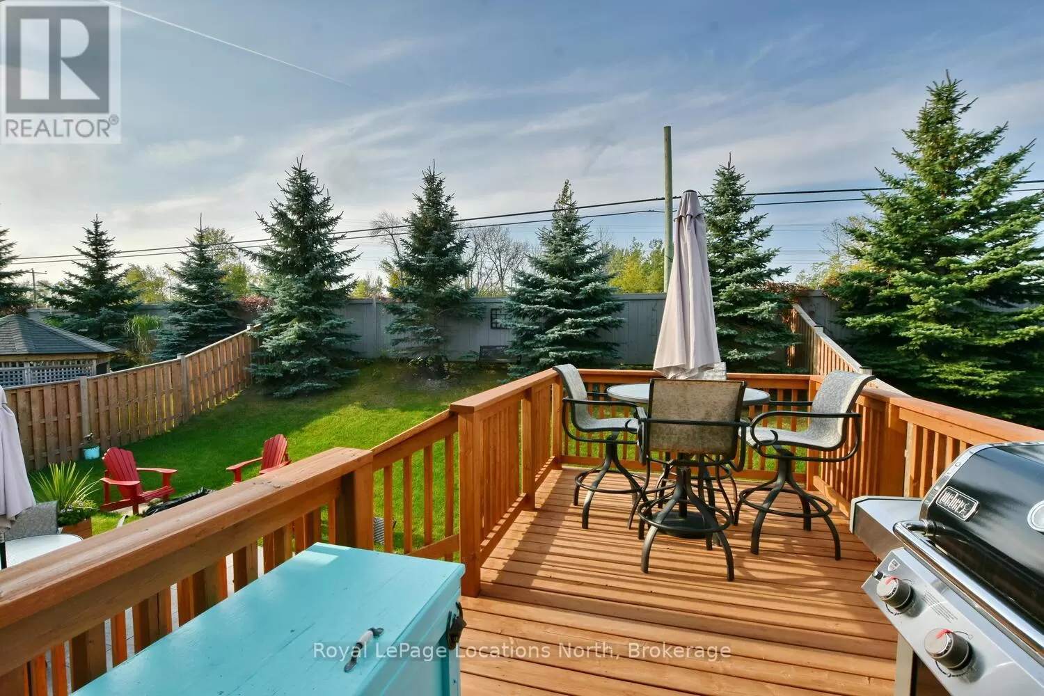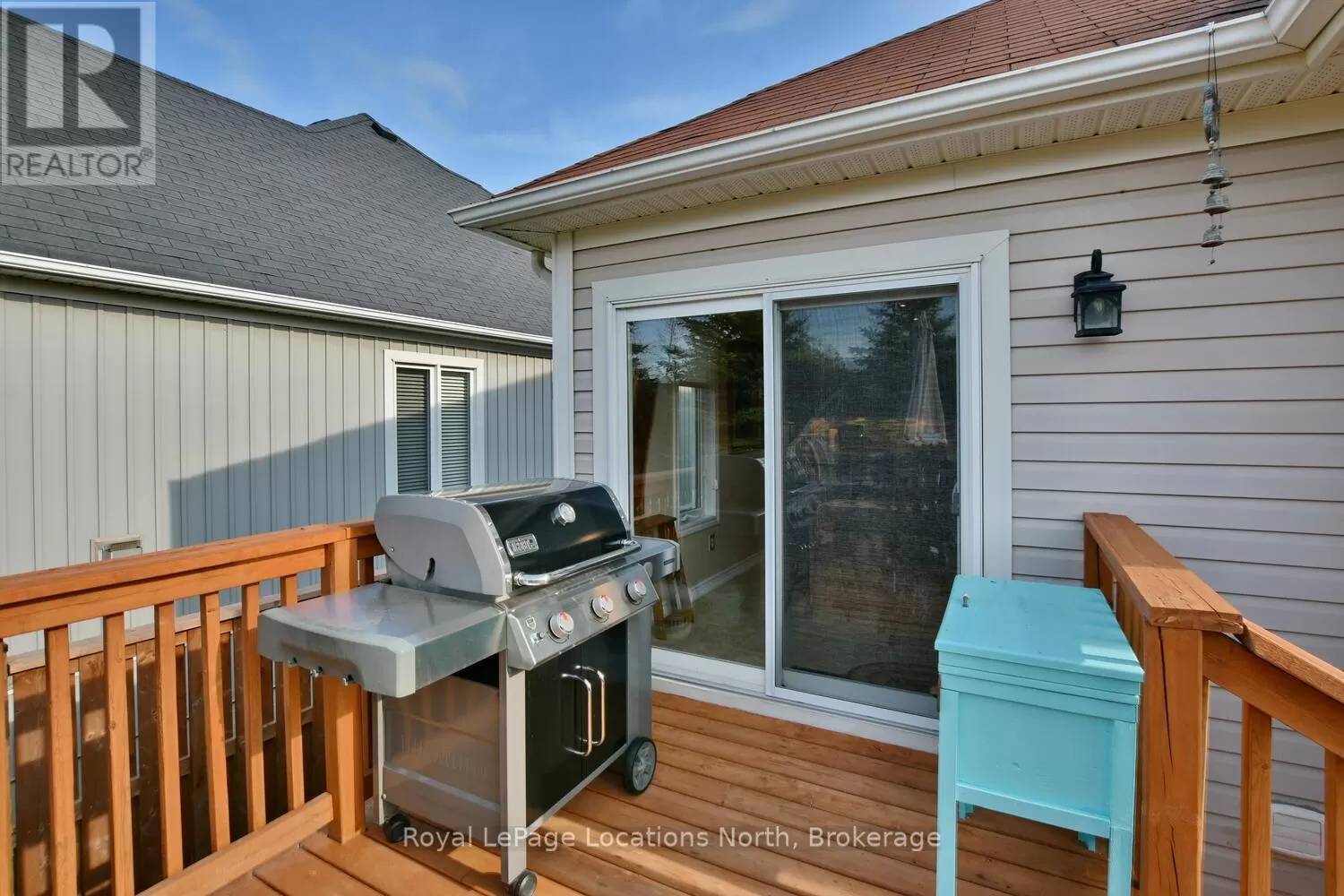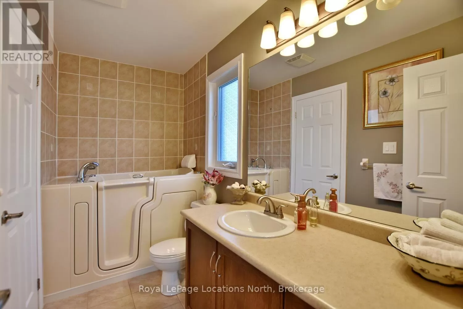 Cross Streets: Starboard Circle And Canoe Dr. ** Directions: Beachwood rd. to Bluewater Gate to Waterview right to Starboard. Bluewater on the Bay! This charming 4 bed, 3 bath bungalow is just off Beachwood Rd on the edge of Collingwood. Enjoy your water view from your landscaped front patio! This open concept kitchen, dining & living room overlooking a fully fenced backyard with firepit, makes entertaining easy! The kitchen features granite counters, stainless steel appliances, tiled back-splash & undermount lighting. The Great room has hardwood floors, pot lights, gas fireplace & walk-out to a recently enlarged back deck w/ storage below. What else can you ask for, except: a main floor primary bed with a 4pc ensuite & walk-in closet, a second bath with a walk-in therapeutic spa tub, a finished lower level with a large family room, two beds & another full bath! The neighborhood is a wonderful area where you can enjoy overlooking Georgian Bay from the clubhouse, featuring a saltwater pool, exercise room, sauna & a party room. Snow ploughing & grass cutting are included in a small monthly fee of $306. Recently installed was the Generac generator, large enough to run the entire home. The garage has been updated with insulated rubber floors, spray foamed, drywalled, climate controlled and insulated garage storm doors (id:27476)