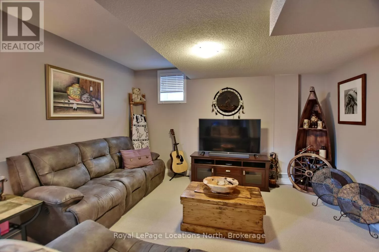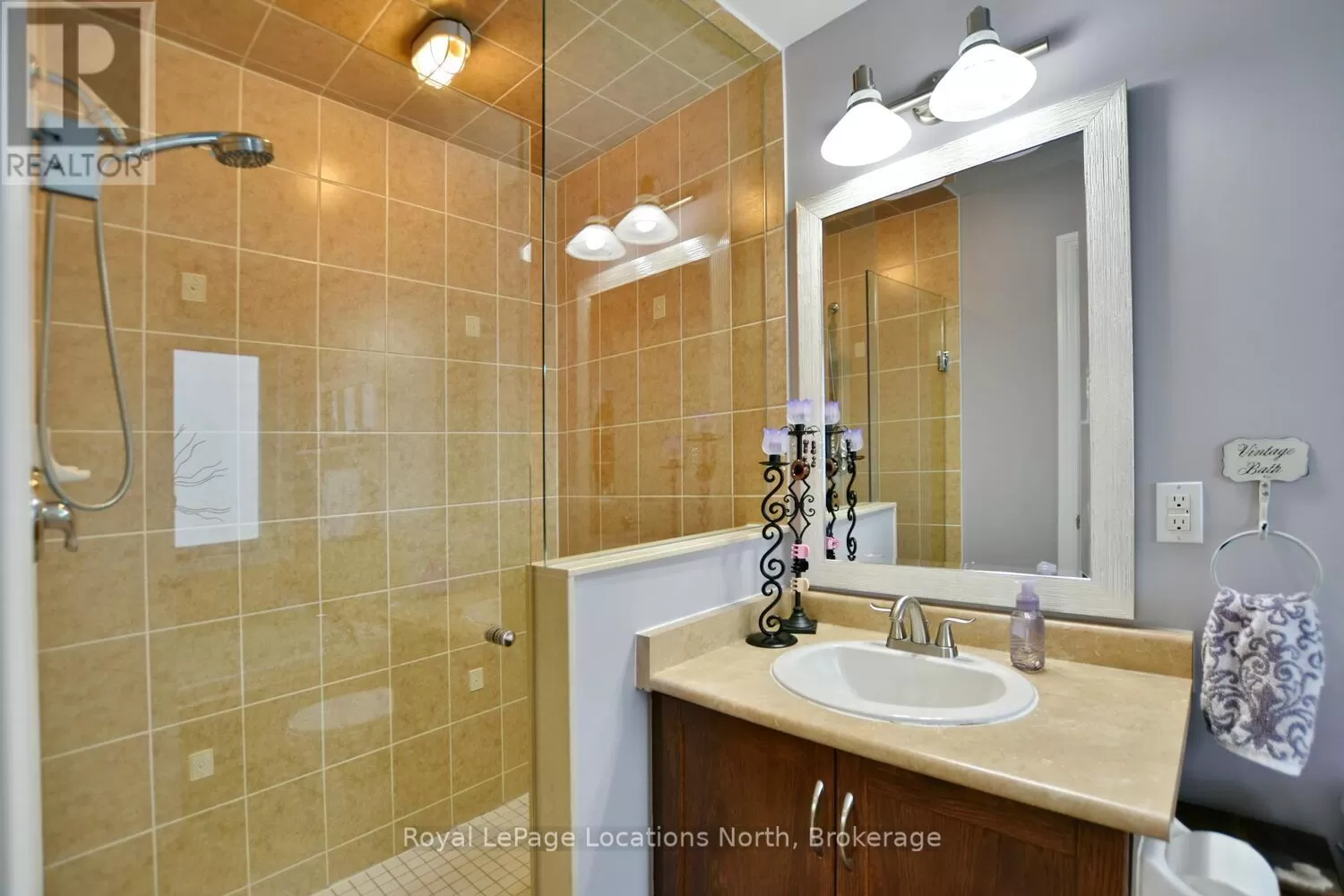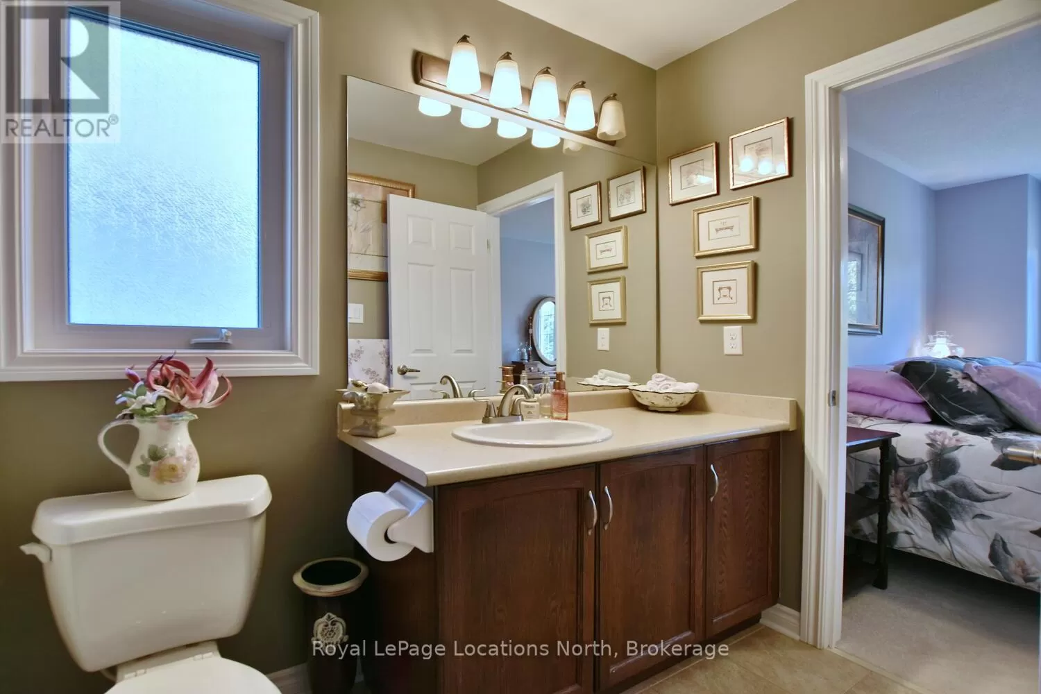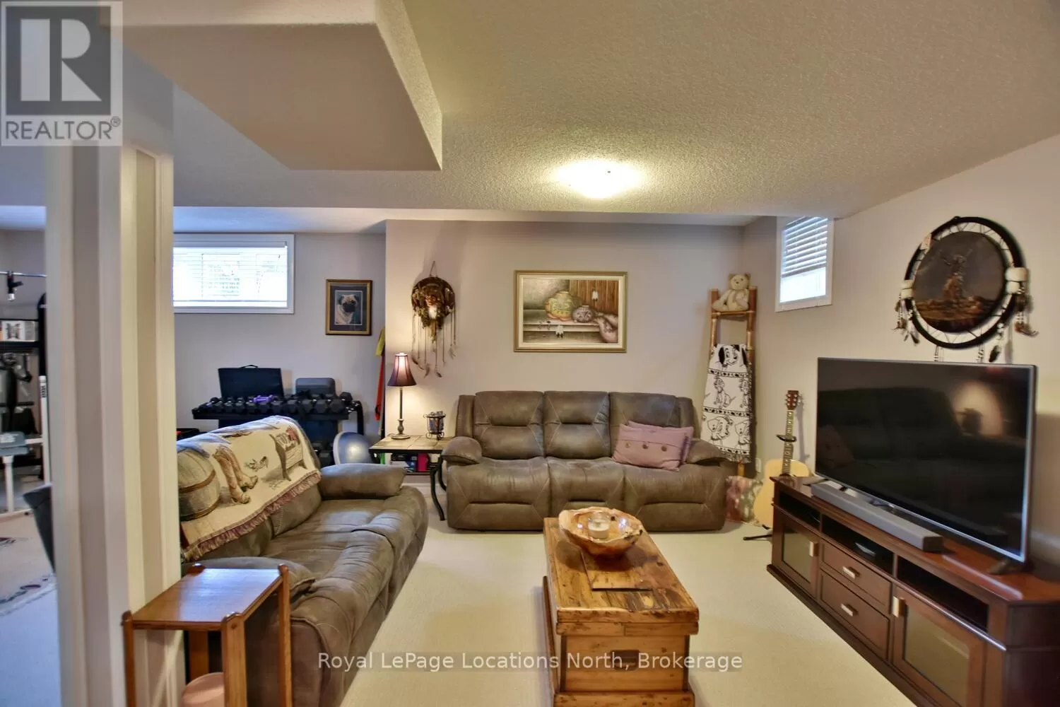 Cross Streets: Starboard Circle And Canoe Dr. ** Directions: Beachwood rd. to Bluewater Gate to Waterview right to Starboard. Bluewater on the Bay! This charming 4 bed, 3 bath bungalow is just off Beachwood Rd on the edge of Collingwood. Enjoy your water view from your landscaped front patio! This open concept kitchen, dining & living room overlooking a fully fenced backyard with firepit, makes entertaining easy! The kitchen features granite counters, stainless steel appliances, tiled back-splash & undermount lighting. The Great room has hardwood floors, pot lights, gas fireplace & walk-out to a recently enlarged back deck w/ storage below. What else can you ask for, except: a main floor primary bed with a 4pc ensuite & walk-in closet, a second bath with a walk-in therapeutic spa tub, a finished lower level with a large family room, two beds & another full bath! The neighborhood is a wonderful area where you can enjoy overlooking Georgian Bay from the clubhouse, featuring a saltwater pool, exercise room, sauna & a party room. Snow ploughing & grass cutting are included in a small monthly fee of $306. Recently installed was the Generac generator, large enough to run the entire home. The garage has been updated with insulated rubber floors, spray foamed, drywalled, climate controlled and insulated garage storm doors (id:27476)