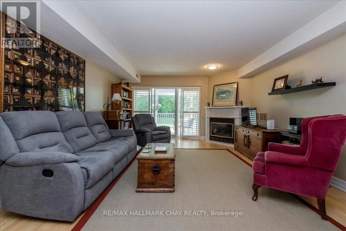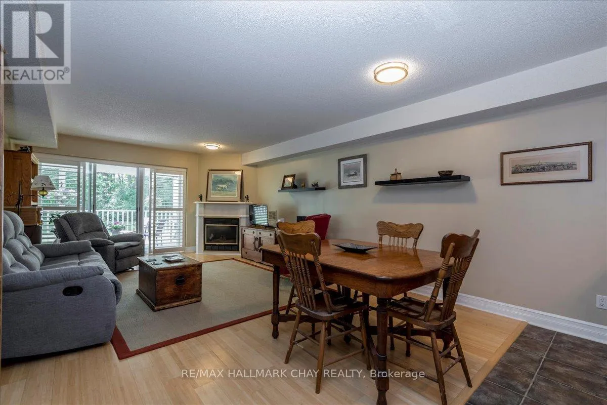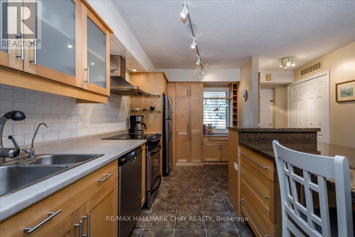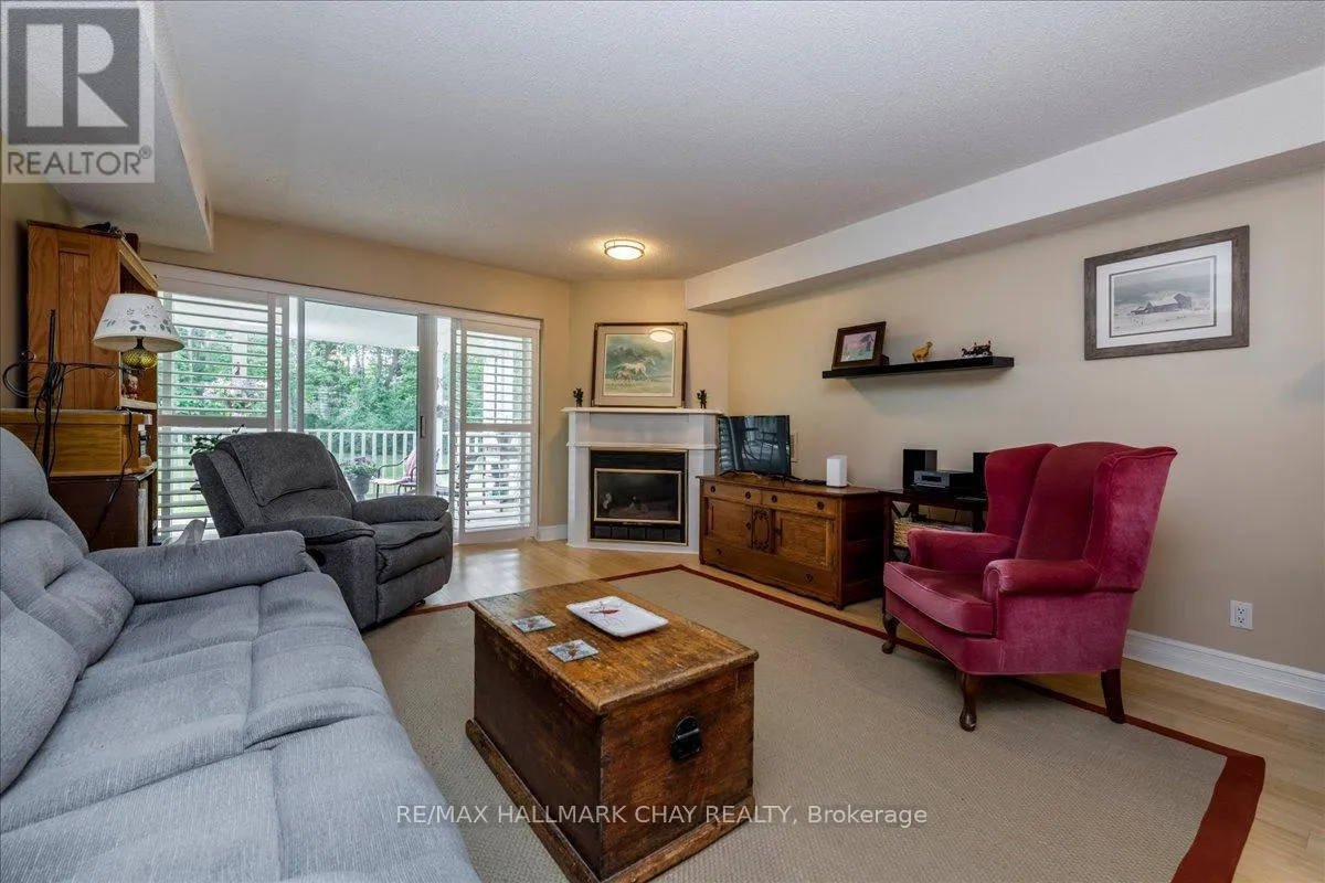 Cross Streets: Golf Course Lane/Fairway. ** Directions: Golf Course Rd.- Fairway- Mulligan. FORE! There is lots of season left to sit on this beautiful patio that looks out over the trees that back onto the Marlwood Golf & Country Club. It's a quiet life situated on the edge of the Marlwood Estates and provides open-concept living with 2 bedrooms and 2 bathrooms. A large centre island with seating for 4 makes this condo unique and the upgraded kitchen offers loads of storage and prep space. The living room/dining room combination flows easily and has the bonus for flexible space options when entertaining too. The cozy gas fireplace is a bonus when the weather cools and provides ambience as you gaze out to the quiet greenscape outside the sliding glass doors. And you have to check out the patio, it's inviting and will fit all your entertaining or retreat needs, and this space can be screened in with a simple request to the condo corp. Why not extend your enjoyment of the warmer seasons while you watch the rabbits hop by. California shutters provide privacy and insulation and a clean updated feel to any decor. All stainless steel appliances are included. This lovely space is move-in ready! (id:27476)