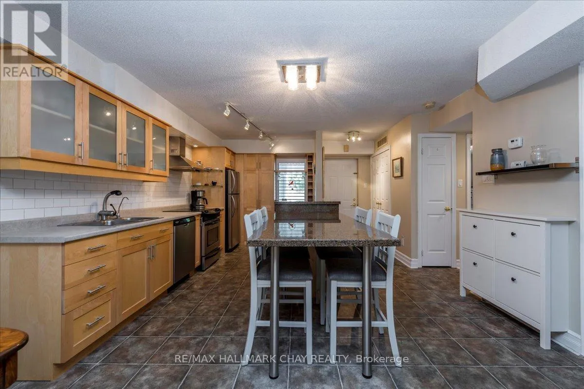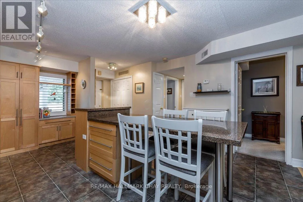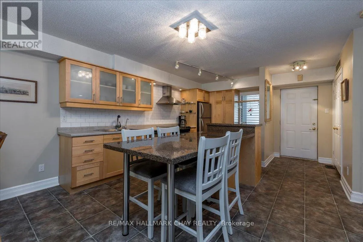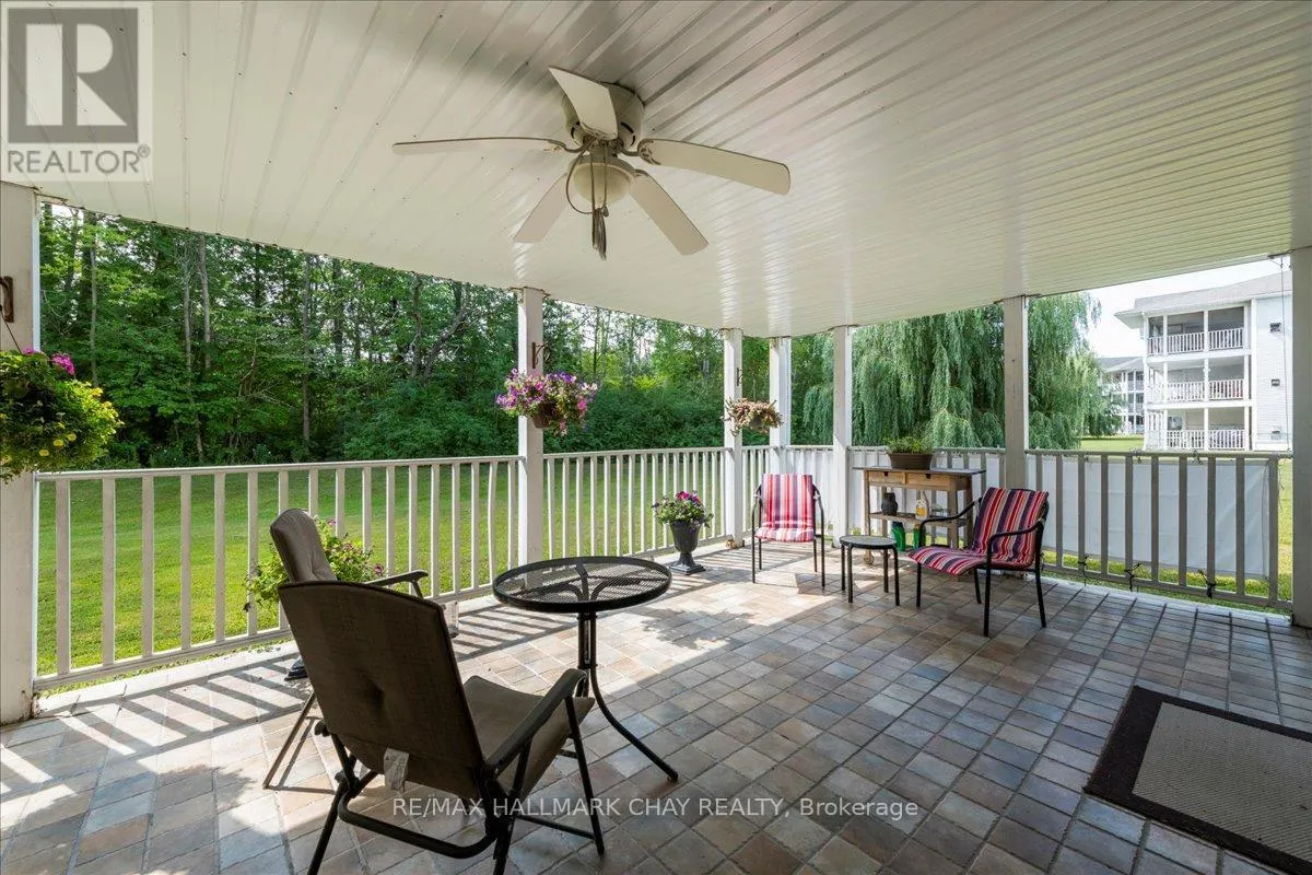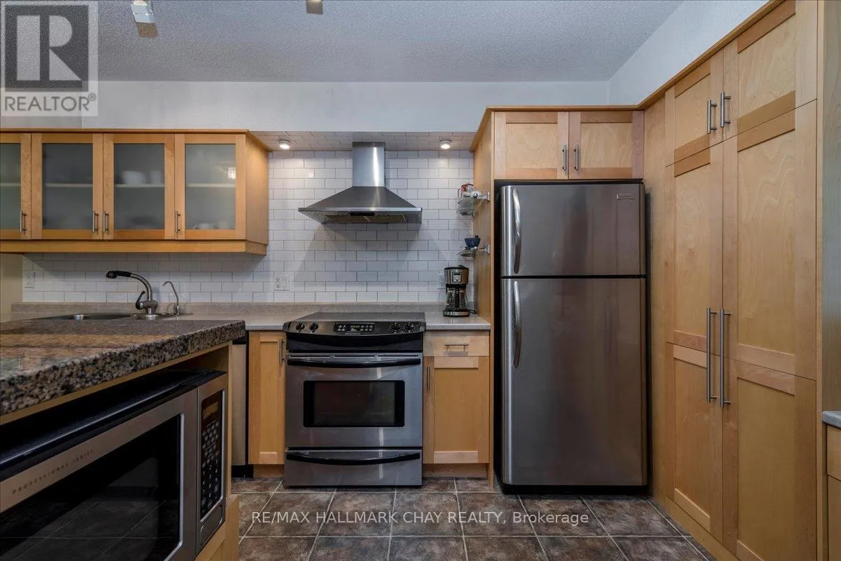 Cross Streets: Golf Course Lane/Fairway. ** Directions: Golf Course Rd.- Fairway- Mulligan. FORE! There is lots of season left to sit on this beautiful patio that looks out over the trees that back onto the Marlwood Golf & Country Club. It's a quiet life situated on the edge of the Marlwood Estates and provides open-concept living with 2 bedrooms and 2 bathrooms. A large centre island with seating for 4 makes this condo unique and the upgraded kitchen offers loads of storage and prep space. The living room/dining room combination flows easily and has the bonus for flexible space options when entertaining too. The cozy gas fireplace is a bonus when the weather cools and provides ambience as you gaze out to the quiet greenscape outside the sliding glass doors. And you have to check out the patio, it's inviting and will fit all your entertaining or retreat needs, and this space can be screened in with a simple request to the condo corp. Why not extend your enjoyment of the warmer seasons while you watch the rabbits hop by. California shutters provide privacy and insulation and a clean updated feel to any decor. All stainless steel appliances are included. This lovely space is move-in ready! (id:27476)