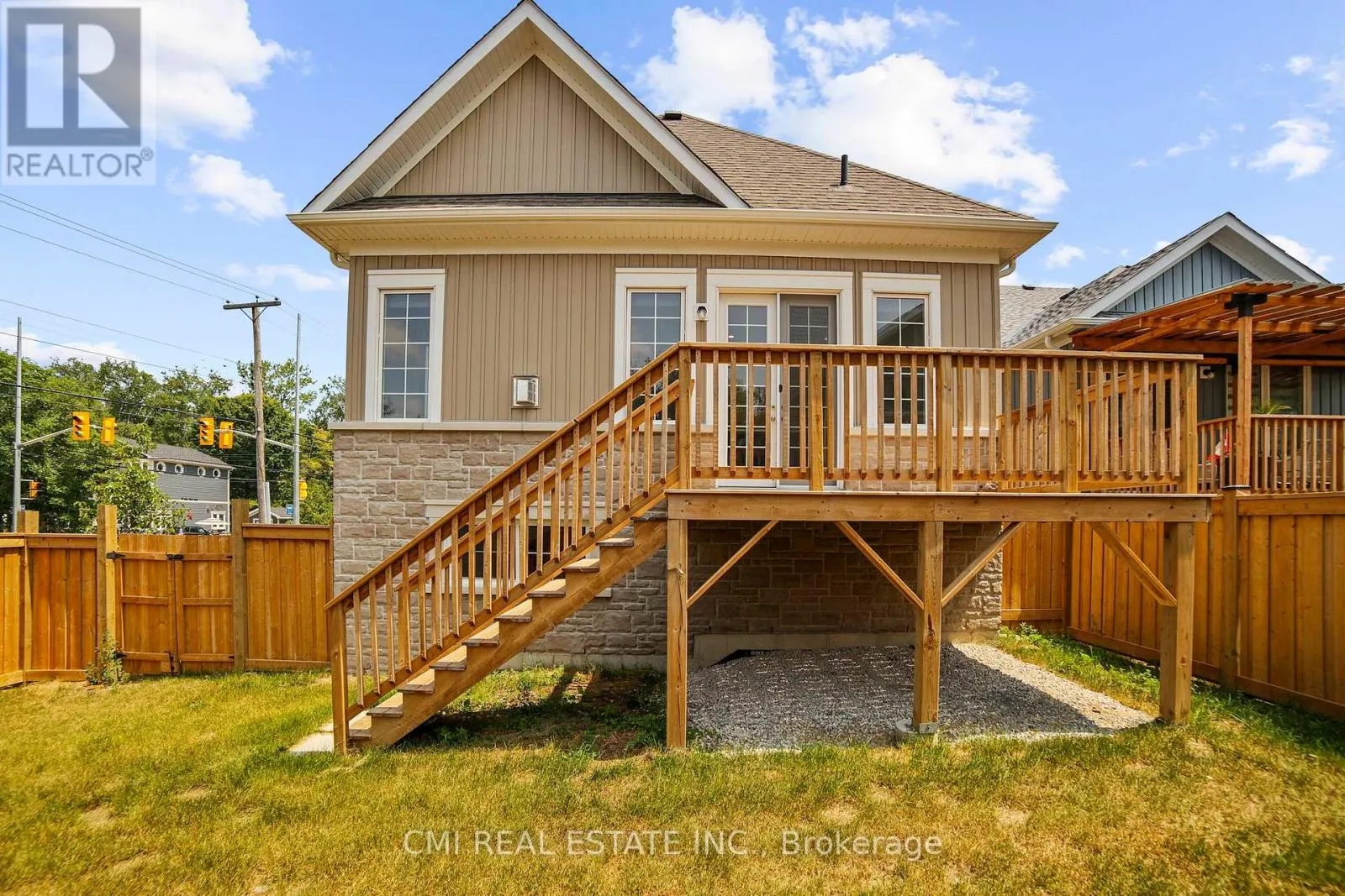 Mosley St/ 62nd St S Waterview! Nestled on the sandy shorelines of Wasaga Beach, presenting this 2-yr old detached bungaloft offering 3beds, 3 bath approx 2200sqft of living space on premium 50ft corner lot steps to schools, parks, beaches, recreation, conversation, shopping, & much more! Short drive to Collingwood, Blue Mountain, & HWY 400 providing amazing connectivity. Purchase a new home on a budget in a developed neighborhood down the street from beach access. Two-car garage w/ large driveway (no sidewalk) provides ample parking. Bungaloft layout ideal for first time home buyers, buyers looking to downsize or buyers looking for a primary bedroom on the main level. Step into the split level bright foyer w/ access to the garage. Explore the expansive dining & living space w/ gorgeous fireplace. Eat-in gourmet kitchen w/ modern cabinetry, quartz counters, & accent colored center island W/O to rear deck. Main-lvl large primary bedroom w/ 3-pc ensuite. Head upstairs to find a small loft (can be used as an office or sitting area), two additional beds & 5-pc bath ideal for guests or kids. Full sized bsmt awaiting your vision (can be converted to recreational space, in-law suite or rental). Enjoy a fully fenced private backyard ideal for summer entertainment & pet lovers! (id:27476)