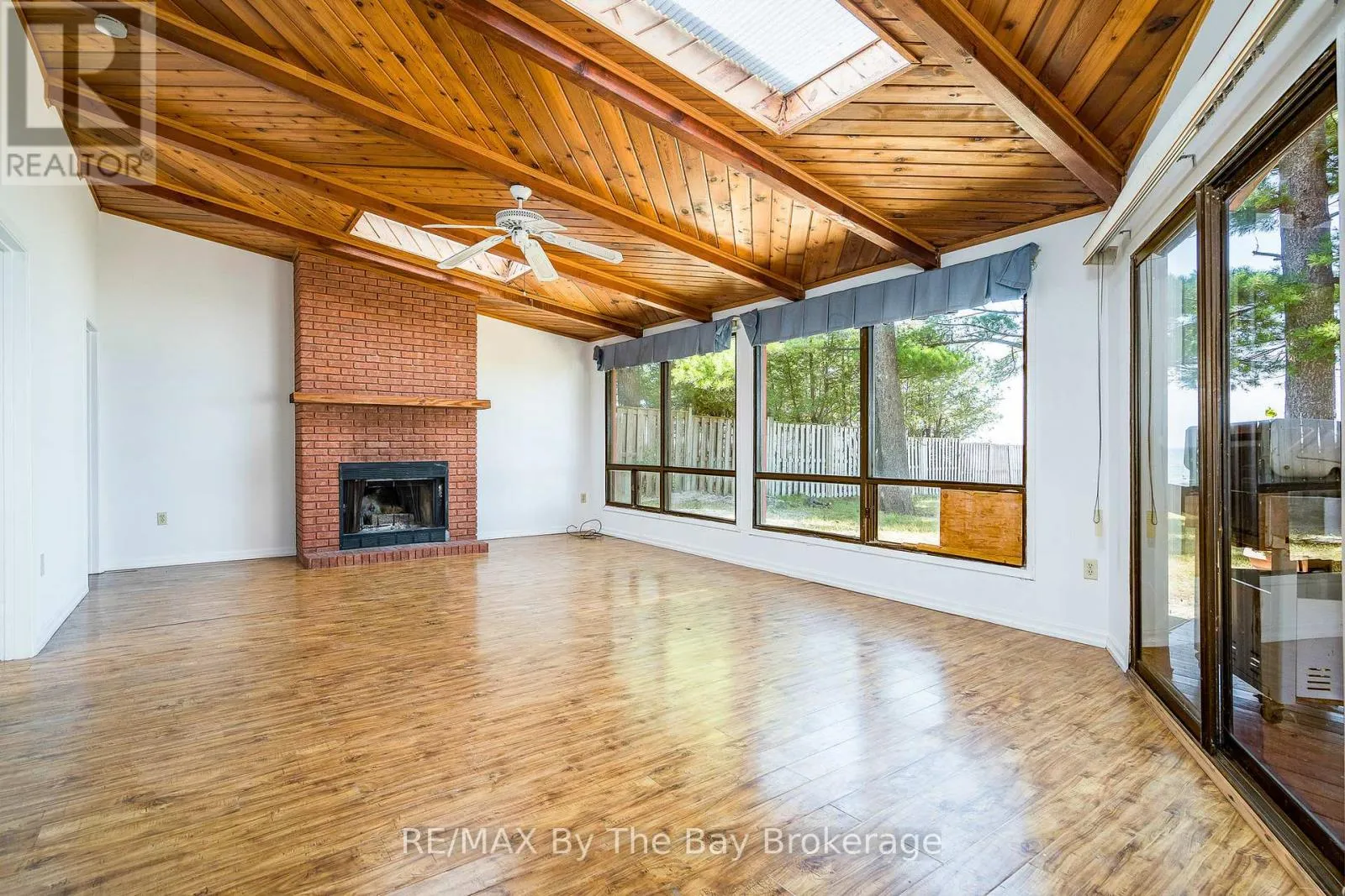 River Road East To Santos Lane A rare opportunity to secure a sandy 3-season beachfront cottage on Georgian Bay ideal for both lifestyle and long-term value. With full municipal water and sewer services, this property is all about location and potential. Set on a quiet private lane with direct access to the sandy shoreline from your backyard (no roads to cross), it offers panoramic views of Georgian Bay and The Blue Mountains, with spectacular sunsets.The existing 4-bedroom, 2-bath cottage (approx. 1,200 sq. ft.) provides a foundation for your vision: renovate and embrace its relaxed beachside charm, or design and build a new custom waterfront retreat or estate tailored to your lifestyle. Expansive windows capture sweeping water views and fill the interior with natural light, while the open layout offers flexibility for reimagining. Here you'll enjoy the best of both worlds a tranquil residential setting in Wasaga's sought-after east end, yet only minutes to shopping, dining, golf, trails, and the marina. Stroll straight from your backyard to the waters edge and experience the rare combination of sandy beachfront, privacy, and residential charm that makes this location so special. Exciting redevelopment is also underway at Wasaga Beach's main end, including plans for a 150-room boutique Marriott hotel, condos, and new commercial spaces at Beach 1, further enhancing the areas appeal and long-term desirability. A unique chance to invest in sandy Georgian Bay waterfront with spectacular views, direct beach access, and lasting value. (id:27476)