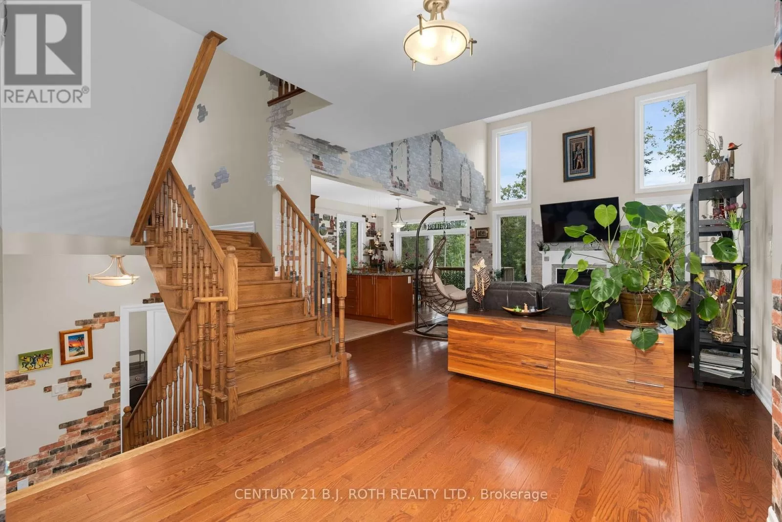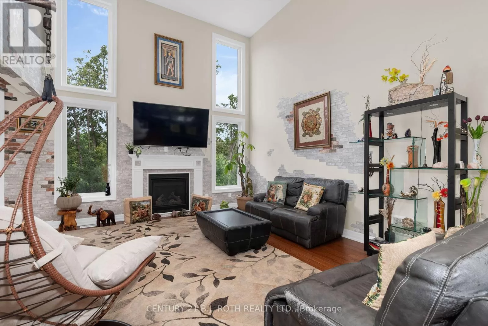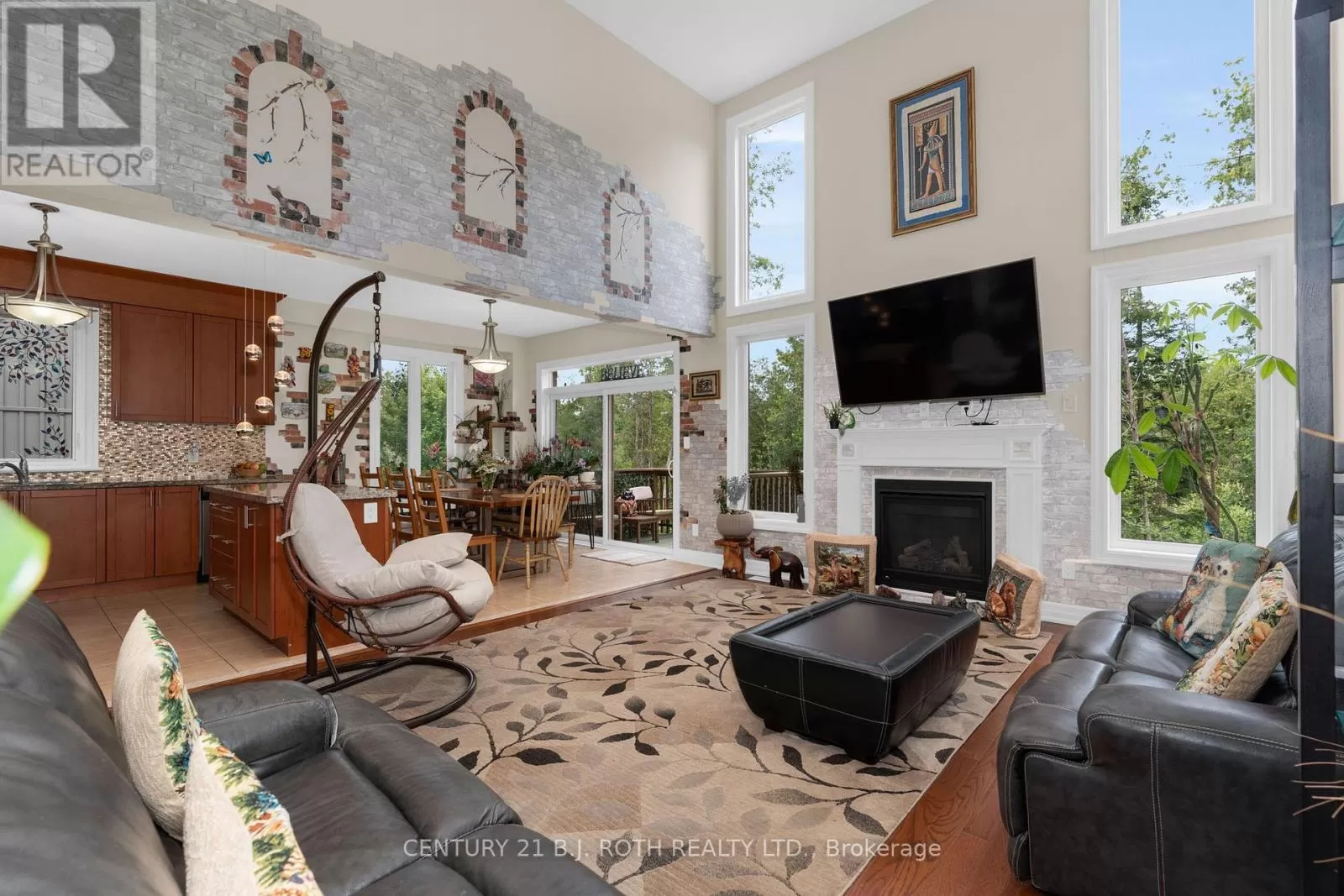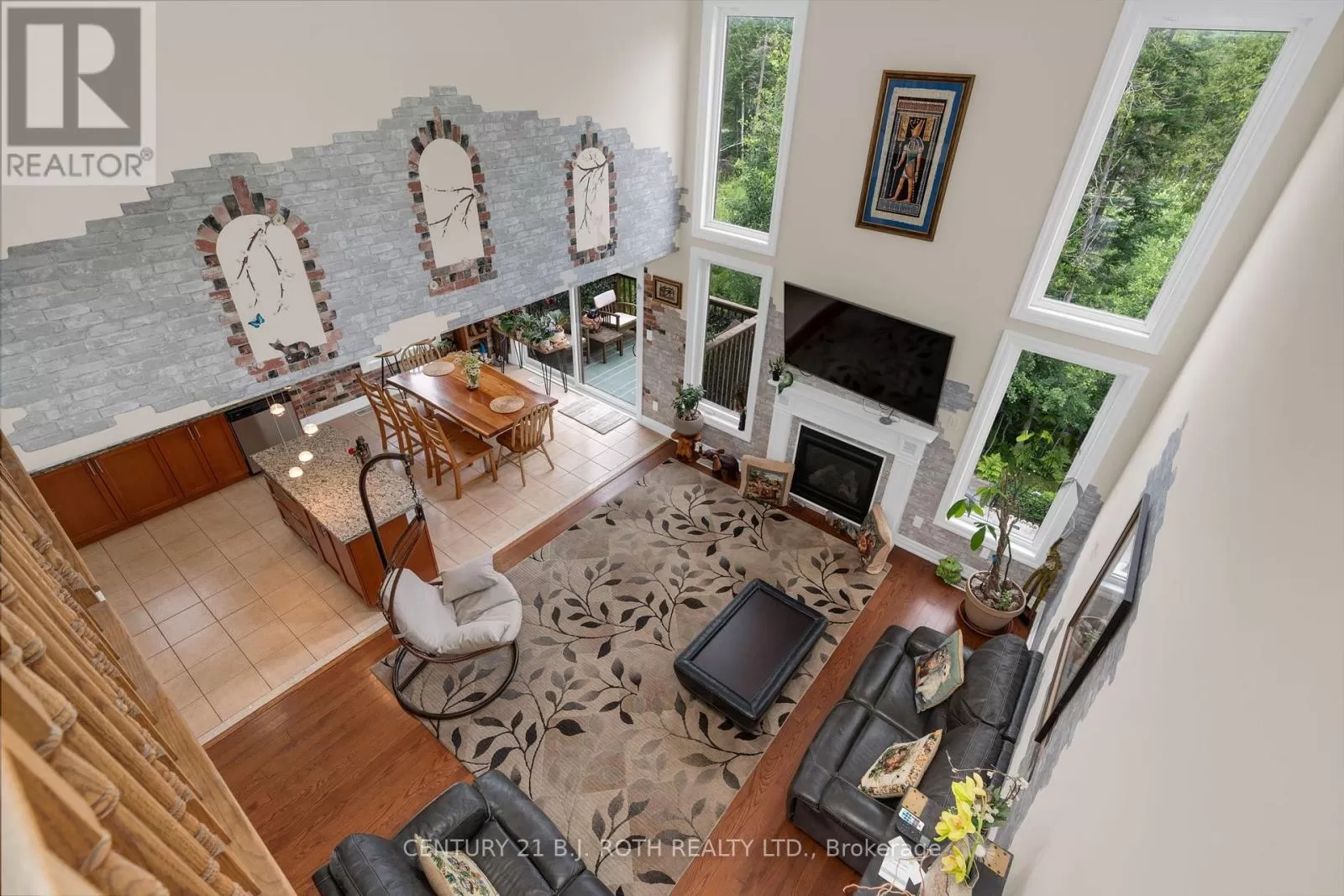 Cross Streets: Ramblewood. ** Directions: Ramblewood to Dennis to Allegra. Welcome to 107 Allegra Dr. - A Spacious & Stylish Family Home! This beautifully landscaped property offers over 3,500 sq ft of finished living space, 6 bedrooms, 5 full bathrooms, and incredible in-law potential. MAIN FLOOR: Enjoy an open-concept layout with soaring 16-ft ceilings in the living room, large windows, and a cozy gas fireplace. The kitchen features stainless steel appliances and large island, a bright dining area with a walkout to a private deck overlooking that yard. The main floor also includes a luxurious primary bedroom with spa-like ensuite and walk-in closet, plus a second bedroom and full bath. LOFT: Flooded with natural light, the loft overlooks the main floor and includes two spacious bedrooms and a full bathroom perfect for kids or guests. LOWER LEVEL: Ideal for extended family or multi-generational living, the walkout basement includes a full kitchen, large living area with fireplace, 2 bedrooms connected by a Jack & Jill bath, an additional 3-piece bath, separate laundry, and access to the private backyard with deck and firepit. This home is truly move-in ready and offers comfort, flexibility, and style for any stage of life. Don't miss it! (id:27476)