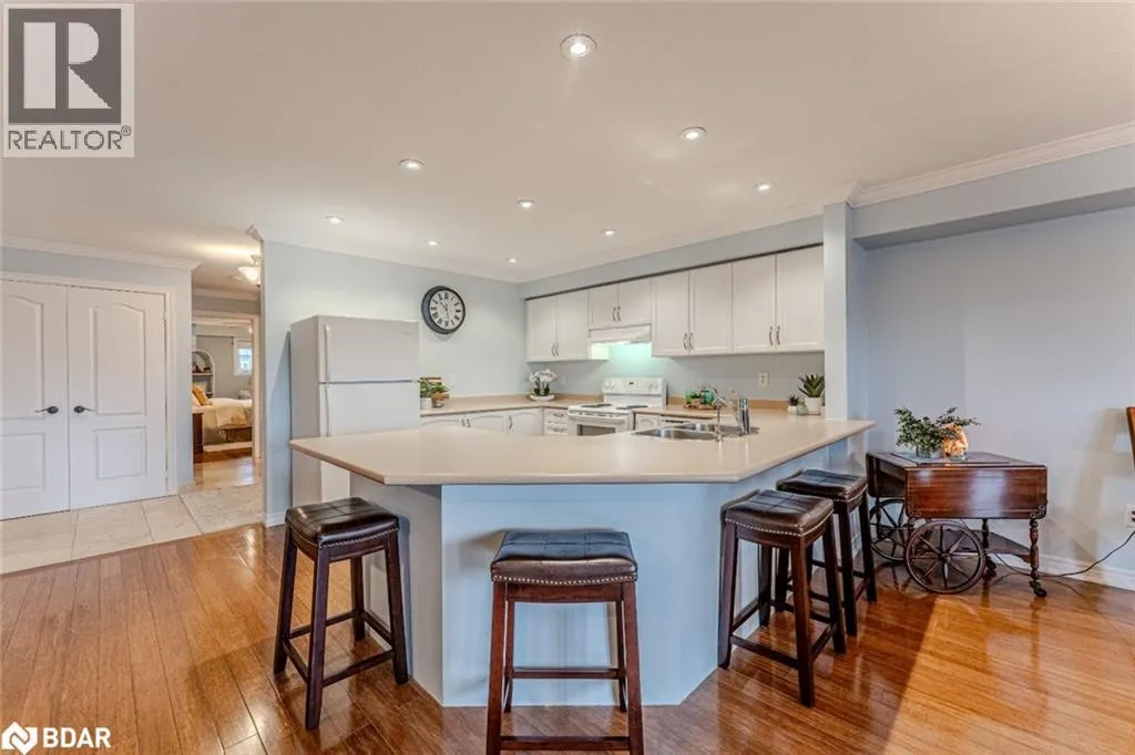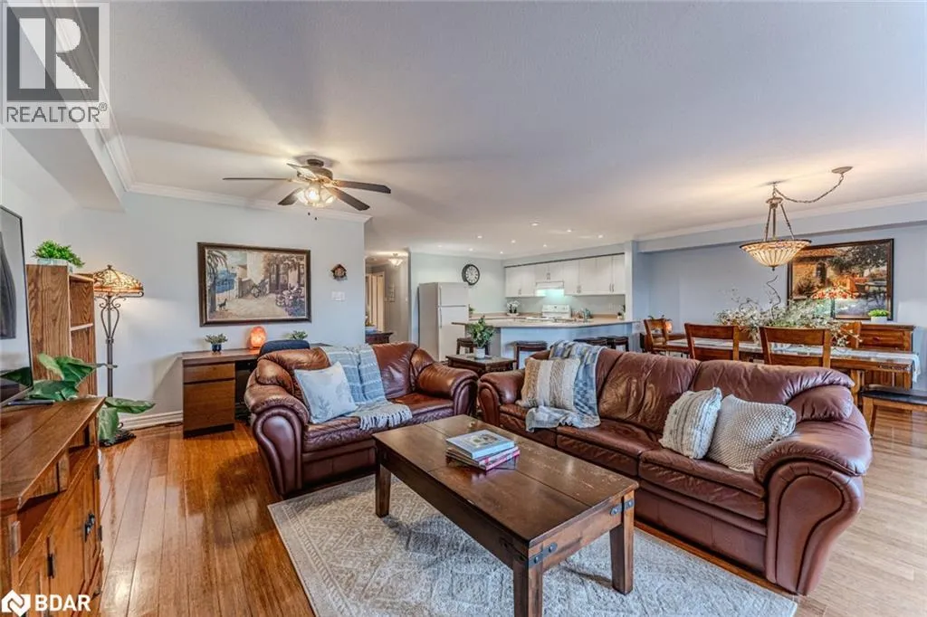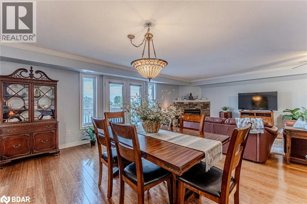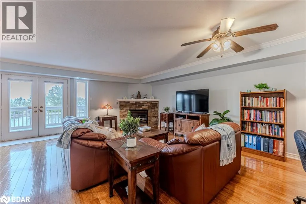 River Rd W/Zoo Park Rd/River Rd E SPACIOUS & RARE WATERFRONT CONDO WITH DOCK ACCESS & INCREDIBLE VIEWS! Imagine mornings on the Nottawasaga River, coffee in hand as the sunlight sparkles across the water, followed by a paddle or a quick boat ride to Georgian Bay from the dock before wandering down to the worldâs largest freshwater beach. After time spent by the shore, return to your bright and spacious top-floor condo, one of only three in a boutique building of nine, where 1,478 square feet of comfort and style await with bamboo and tile flooring, crown moulding and pot lights. Prepare delectable meals in the open concept kitchen with its white cabinetry and breakfast bar, then sit down to enjoy them in the dining area while watching the river drift by. As evening settles in, gather in the living room by the glow of the gas fireplace or open the double garden doors and step onto the balcony for barbecues and sunsets over the water. At the end of a long day, retreat to your generously sized primary bedroom with a walk-in closet and private three-piece ensuite, while guests settle into a welcoming second bedroom with its own full bathroom. Everyday ease is built in with in-suite laundry and parking, and when you are ready for more, you are just steps from shops, restaurants, entertainment, a marina and parks, with Barrie, Collingwood and The Blue Mountains only a short drive away. Here, every day unfolds like a story, filled with beauty, ease and endless possibilities for waterfront living! (id:27476)