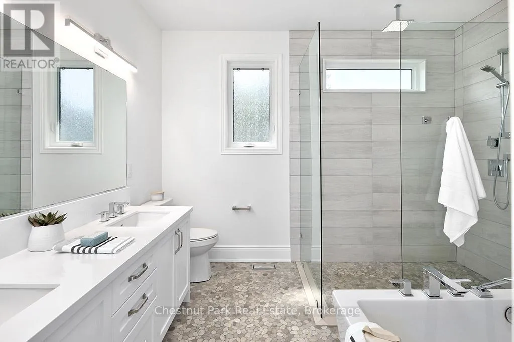 Cross Streets: 74th St N and Beachwood Rd. ** Directions: Beachwood Road East to 74th St N. Left on Shore Lane. Welcome to 2237 Shore Lane -- A Coastal-Inspired Retreat Steps from Georgian Bay. Pristine 6 bedroom and 3 bath VANDERMEER HOMES built bungalow with loft on the desired Shore Lane at the west end of Wasaga Beach. Walking distance to beach and only minutes to downtown Collingwood by car. Nestled in one of Wasaga Beach's most sought-after areas, this beautifully designed 6-bedroom home offers an impressive blend of luxury, functionality, and lifestyle. OVER 3400 SQUARE FEET OF FINISHED LIVING SPACE with 3 spacious bedrooms on the main level and 3 additional bedrooms on the fully finished lower level, there's plenty of room for family, guests, or a multi-generational living setup. Step inside and be greeted by an open-concept layout that flows seamlessly, perfect for both relaxed living and entertaining. Upstairs, the media room provides the perfect space for movie nights or gaming, while the lower level gym with a glass wall and rubberized floor offers a private workout experience right at home. Enjoy the lower level family room--ideal for kids, teens, or hosting overnight visitors--making this home as flexible as it is inviting. Located just moments from the beach, this property offers the rare opportunity to live year-round in a vibrant, lakeside community. Whether you're looking for a full-time residence or a seasonal escape, 2237 Shore Lane delivers the perfect blend of comfort, style, coastal charm, and a quality build. Vandermeer Homes has been a trusted home builder in Southern Georgian Bay for over 3 decades. Some photos have been virtually staged. (id:27476)