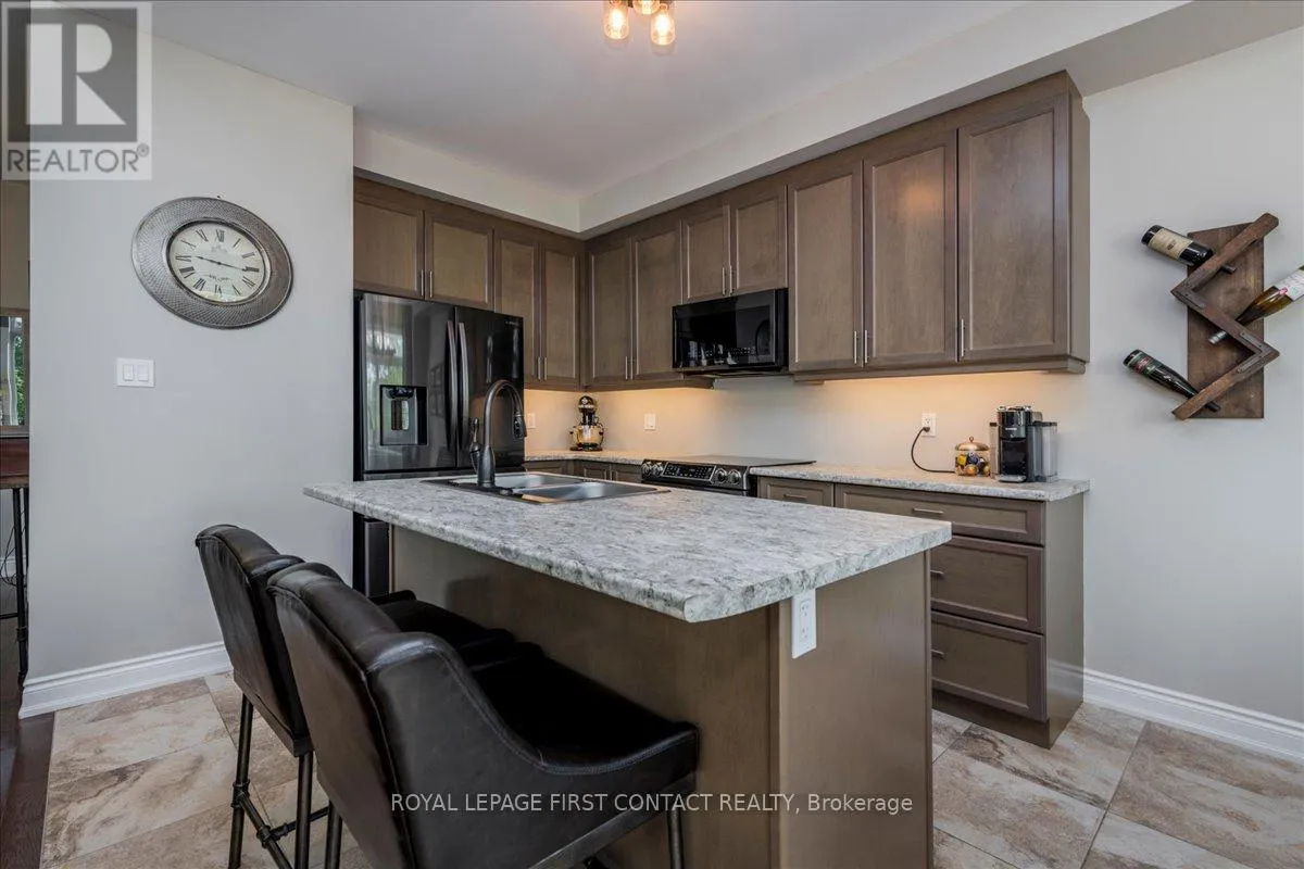 Cross Streets: Beachway Trail & River Rd E. ** Directions: River Rd E to Beachway Trail to left on Nautical. Welcome home! Located in the sought after neighbourhood of Stonebridge by the Bay on a quiet cul-de-sac, this executive townhome has so much to offer. Spacious foyer leads into the open concept main floor with large windows that fill the living and kitchen areas with natural light and views of the backyard that abuts a treed space. Soaring 18 foot ceilings in the living room graced with a gas fireplace with custom maple mantle plus 9 foot ceilings throughout the rest of the main floor. Well laid out kitchen with pot drawers, valance lighting and handy breakfast bar next to the dining area with walkout to deck. Convenient main floor primary suite featuring Juliette balcony, walk in closet plus ensuite with separate, lighted shower. Hardwood stairs with wrought iron pickets lead to the upper level that offers 2 generous bedrooms that share a Jack and Jill 5 pce ensuite as well as loft space, perfect for an office or den. The unfinished lower level provides ample storage as well as access to the tandem garage with epoxy floor, walkout to the patio in the backyard along with a rough in for a future bathroom. Make memories here! (id:27476)