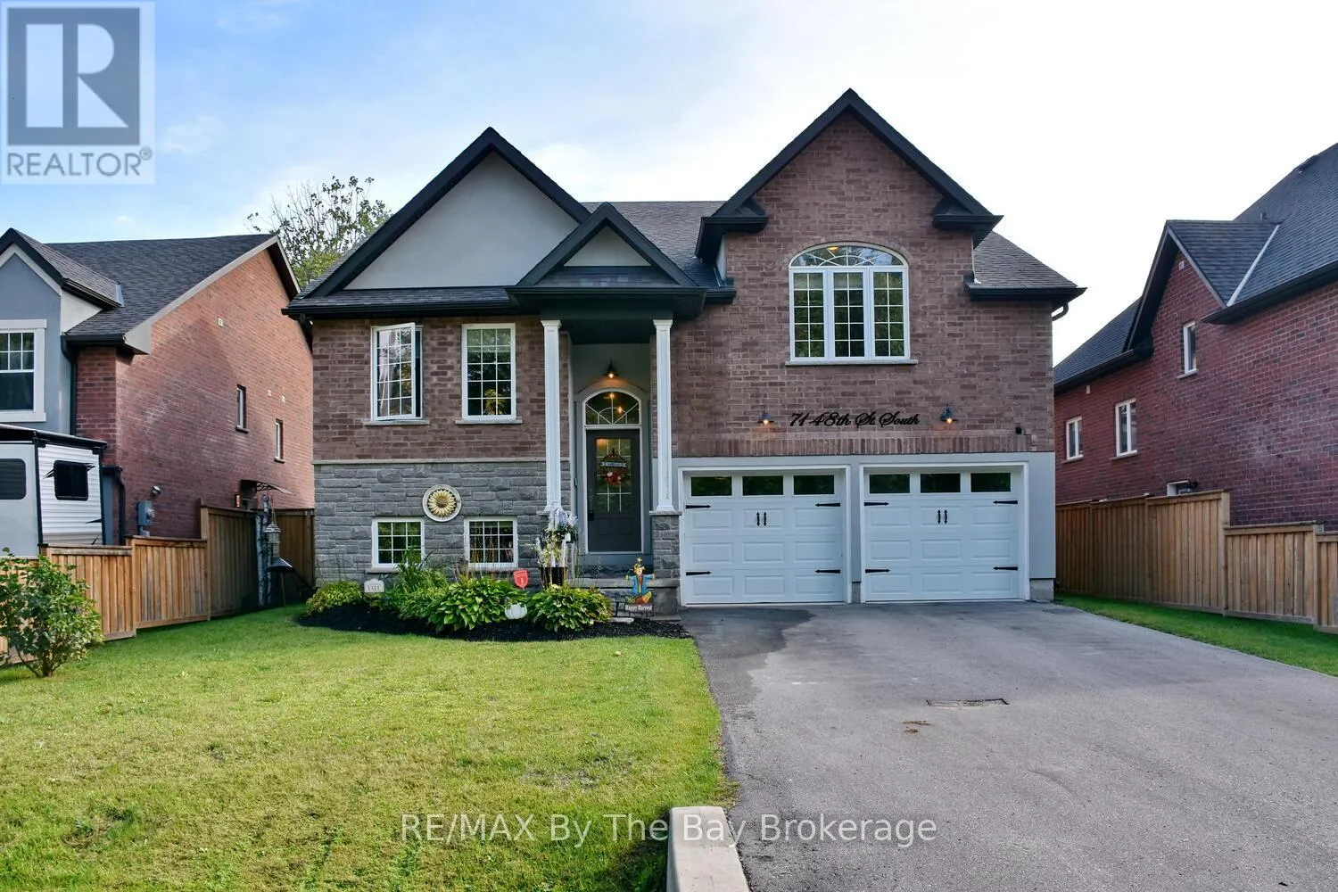 Cross Streets: Mosley and 48th St S. ** Directions: Mosley St to 48th St S. This all-brick, well-built home in Wasaga Beach's west end offers excellent in-law potential. Boasting four bedrooms, it's located just minutes from sandy beaches, shopping, restaurants, and the skiing opportunities at Blue Mountain. The open-concept main level features 9-foot ceilings and an upgraded kitchen with stainless steel appliances, a center island, and quartz countertops. Step out onto the deck with privacy louvers that overlook a fully fenced backyard. The spacious primary bedroom includes walk-in closets, vaulted ceilings, and a full ensuite bath. A second bedroom also has its own 3-piece ensuite. The home includes a double garage with inside entry to the main level, and the unspoiled basement offers high ceilings, large windows, and roughed-in plumbing for a fourth bathroom perfect for creating an income-generating suite. Situated on a quiet street, this home offers both comfort and convenience. (id:27476)