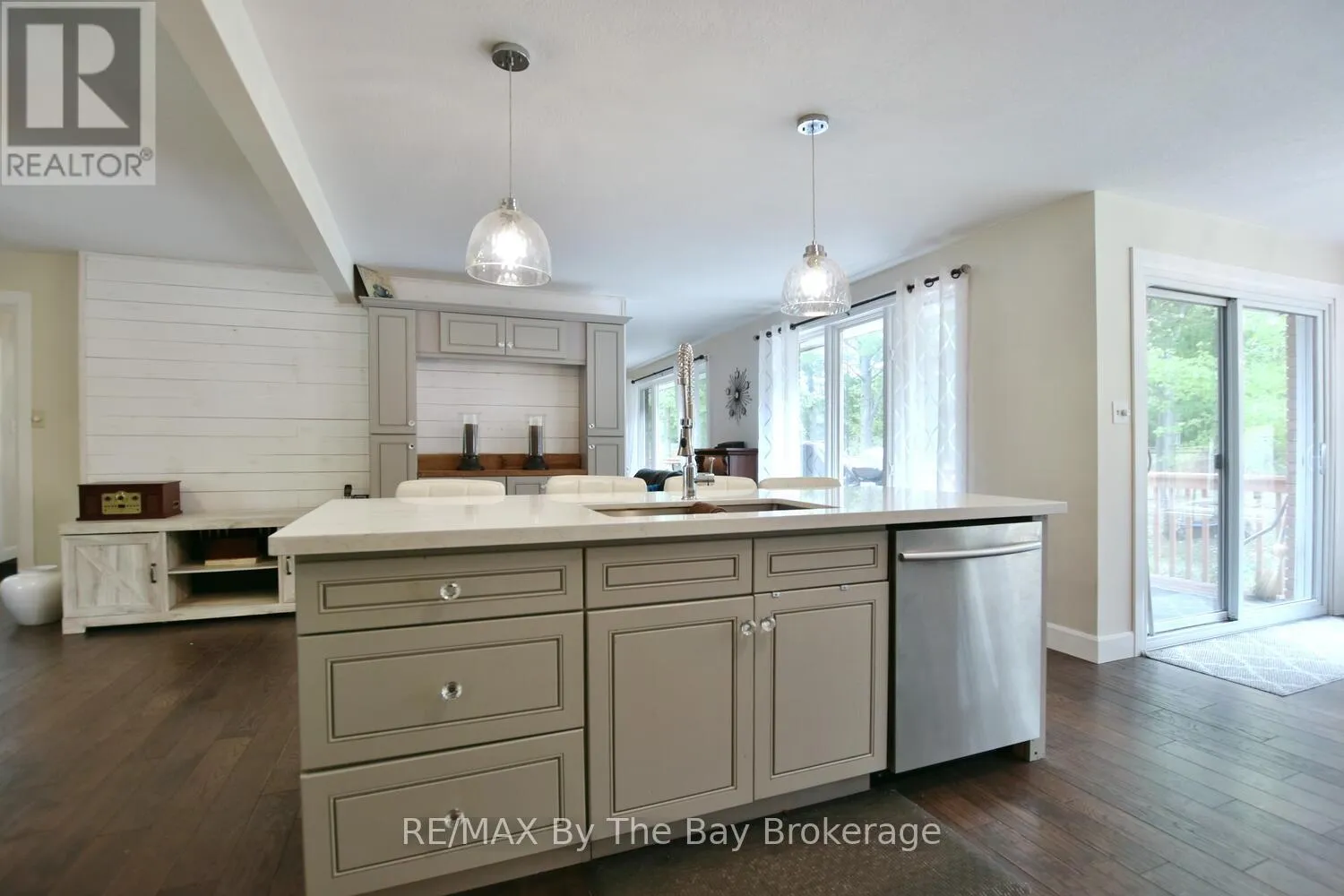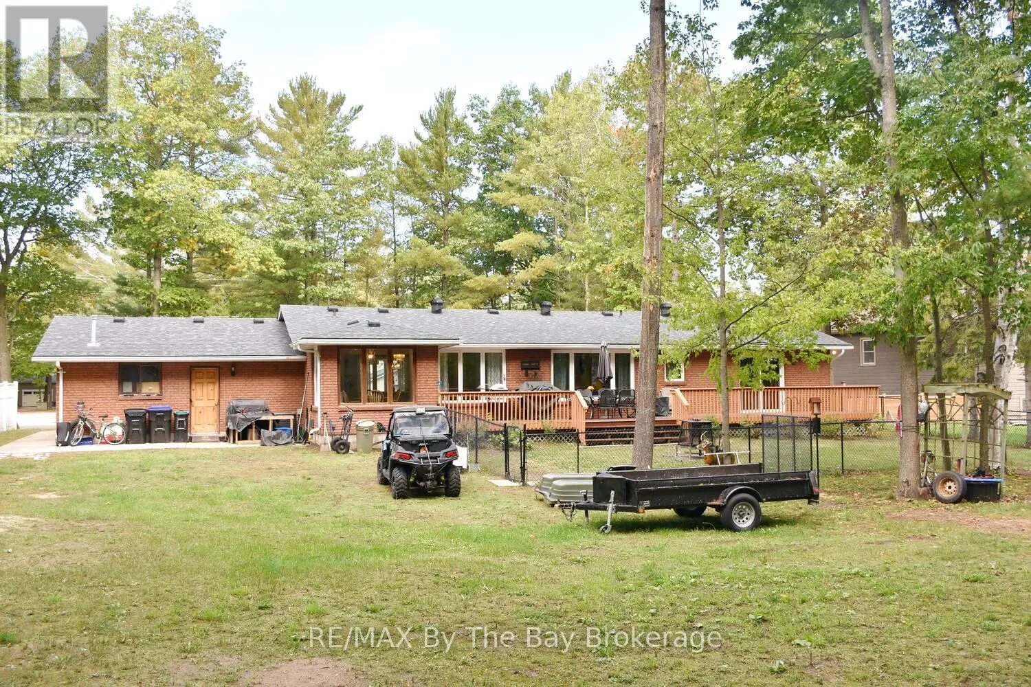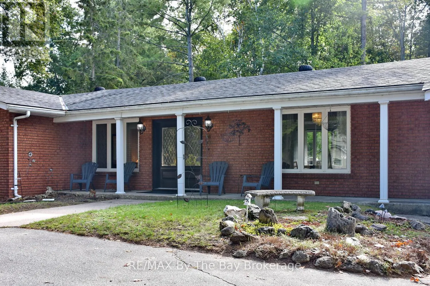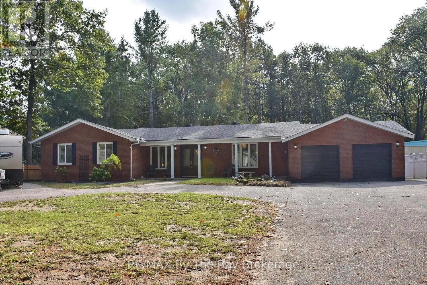 Cross Streets: Mosley Street & Oxbow Park Dr. ** Directions: Mosley Street to Oxbow Park Dr. to 185. Nestled on a beautiful, well-established street in the heart of Wasaga Beach, this lovely 3-bedroom, 2-bath all brick ranch bungalow offers the perfect blend of convenience and tranquility. Set on an expansive 100-foot frontage, the property boasts a unique circular driveway that not only enhances curb appeal of the home but also provides ample parking. The large, private backyard with mature trees creates a peaceful, park-like setting to enjoy year-round. Inside the thoughtfully designed main floor features engineered hardwood, a welcoming foyer, and bright open-concept dining, and kitchen areas. The custom kitchen is equipped with stainless steel appliances, a large island ideal for entertaining, and a cozy dining nook. A picture window frames panoramic views of the backyard, flooding the space with natural light. The spacious primary bedroom includes a 3-piece ensuite and direct walkout to the deck patio, perfect for morning coffee or evening relaxation. Two additional bedrooms and a 4-piece bath complete the main level. The lower level offers a comfortable rec room and abundant storage, while the garage (mostly insulated with a gas heater) will appeal to car enthusiasts or hobbyists. Enjoy expansive main floor living all in a prime location just minutes from shopping, dining, trails, and the sandy shores of Wasaga Beach. (id:27476)