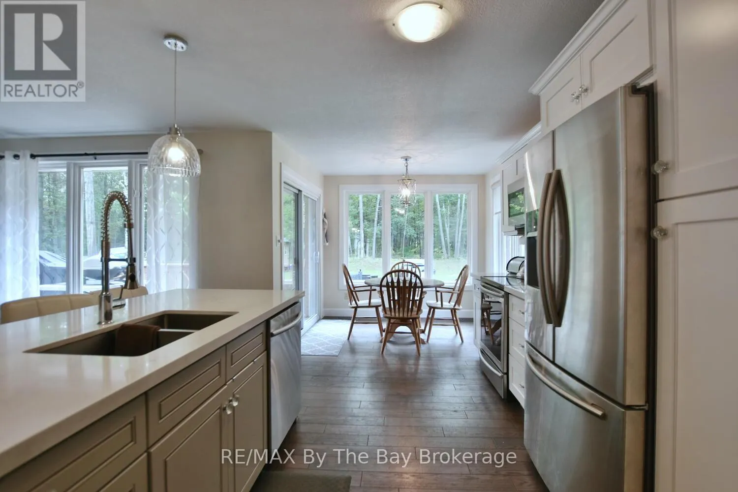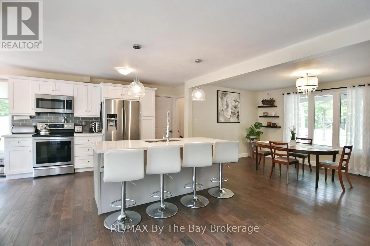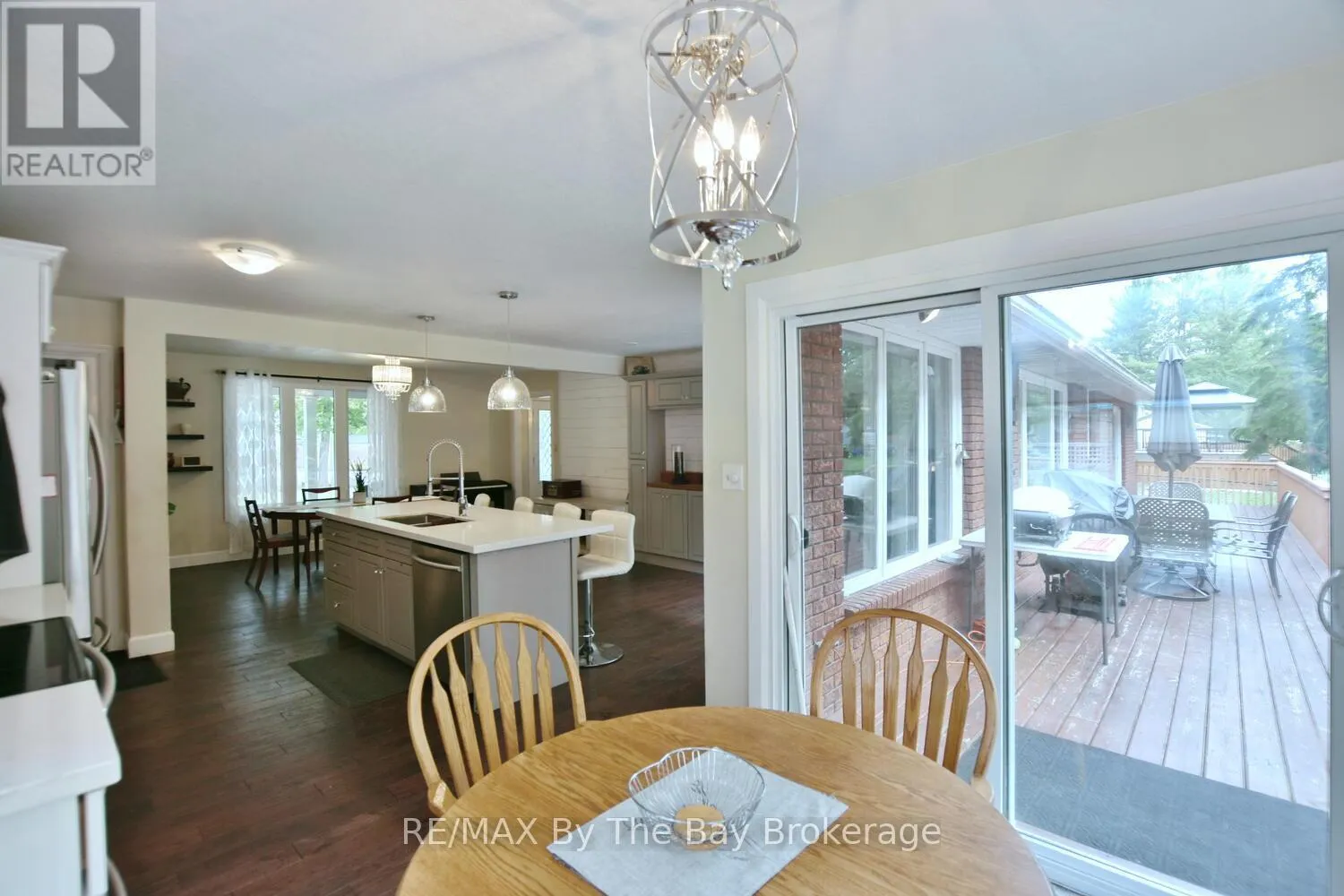 Cross Streets: Mosley Street & Oxbow Park Dr. ** Directions: Mosley Street to Oxbow Park Dr. to 185. Nestled on a beautiful, well-established street in the heart of Wasaga Beach, this lovely 3-bedroom, 2-bath all brick ranch bungalow offers the perfect blend of convenience and tranquility. Set on an expansive 100-foot frontage, the property boasts a unique circular driveway that not only enhances curb appeal of the home but also provides ample parking. The large, private backyard with mature trees creates a peaceful, park-like setting to enjoy year-round. Inside the thoughtfully designed main floor features engineered hardwood, a welcoming foyer, and bright open-concept dining, and kitchen areas. The custom kitchen is equipped with stainless steel appliances, a large island ideal for entertaining, and a cozy dining nook. A picture window frames panoramic views of the backyard, flooding the space with natural light. The spacious primary bedroom includes a 3-piece ensuite and direct walkout to the deck patio, perfect for morning coffee or evening relaxation. Two additional bedrooms and a 4-piece bath complete the main level. The lower level offers a comfortable rec room and abundant storage, while the garage (mostly insulated with a gas heater) will appeal to car enthusiasts or hobbyists. Enjoy expansive main floor living all in a prime location just minutes from shopping, dining, trails, and the sandy shores of Wasaga Beach. (id:27476)
