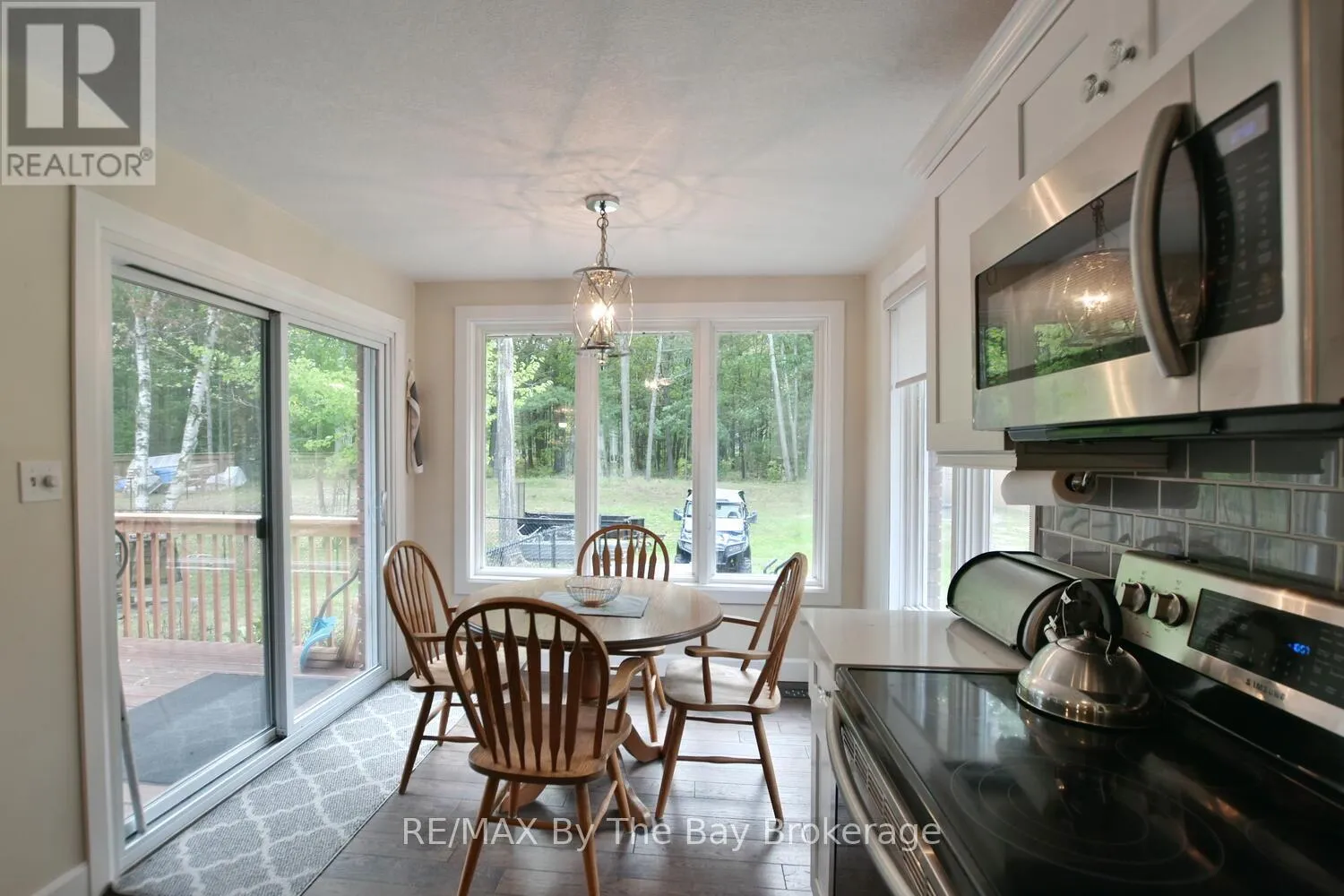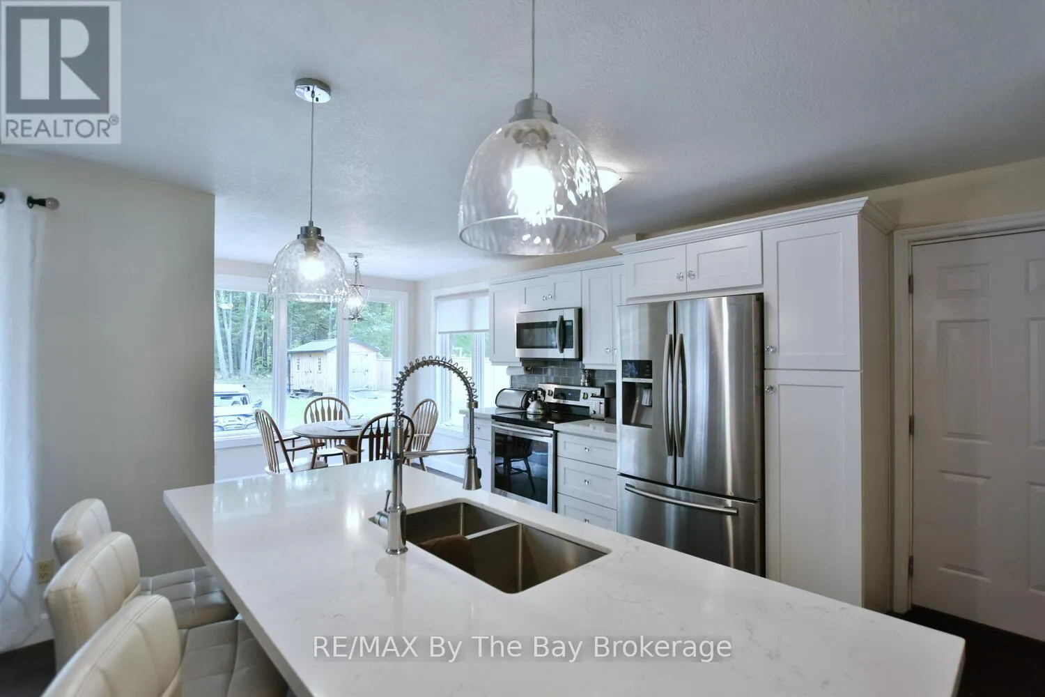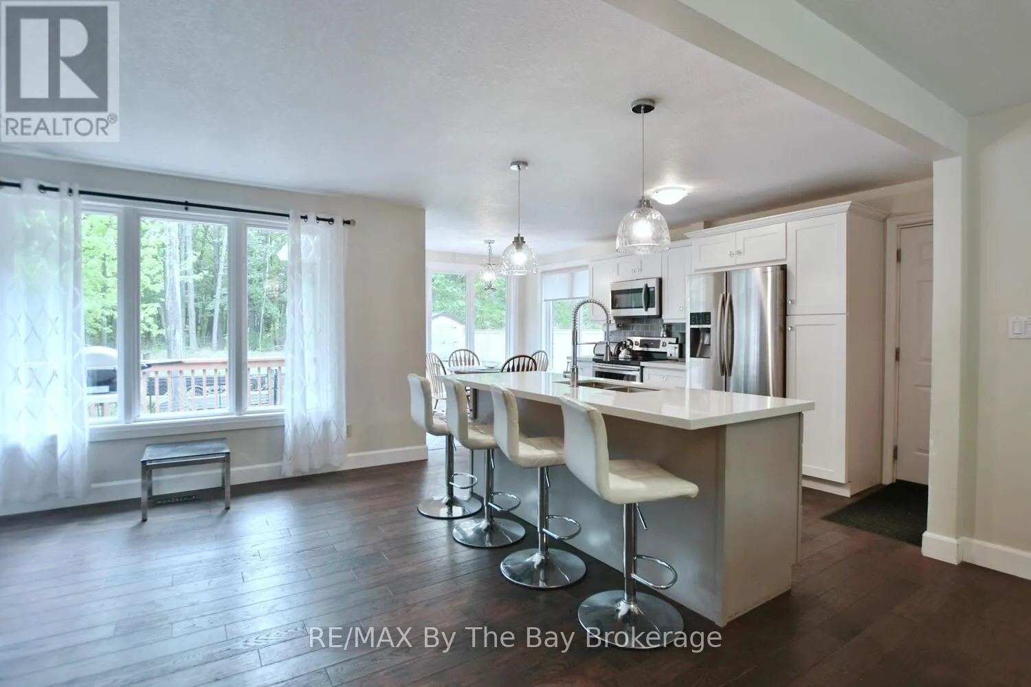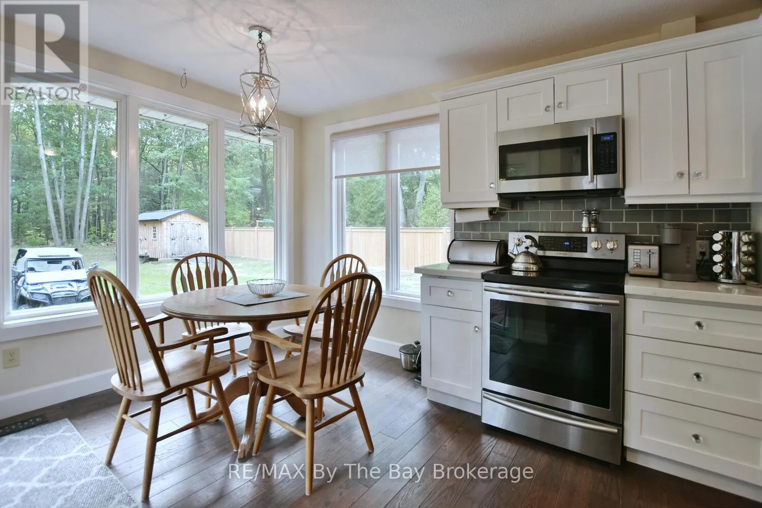 Cross Streets: Mosley Street & Oxbow Park Dr. ** Directions: Mosley Street to Oxbow Park Dr. to 185. Nestled on a beautiful, well-established street in the heart of Wasaga Beach, this lovely 3-bedroom, 2-bath all brick ranch bungalow offers the perfect blend of convenience and tranquility. Set on an expansive 100-foot frontage, the property boasts a unique circular driveway that not only enhances curb appeal of the home but also provides ample parking. The large, private backyard with mature trees creates a peaceful, park-like setting to enjoy year-round. Inside the thoughtfully designed main floor features engineered hardwood, a welcoming foyer, and bright open-concept dining, and kitchen areas. The custom kitchen is equipped with stainless steel appliances, a large island ideal for entertaining, and a cozy dining nook. A picture window frames panoramic views of the backyard, flooding the space with natural light. The spacious primary bedroom includes a 3-piece ensuite and direct walkout to the deck patio, perfect for morning coffee or evening relaxation. Two additional bedrooms and a 4-piece bath complete the main level. The lower level offers a comfortable rec room and abundant storage, while the garage (mostly insulated with a gas heater) will appeal to car enthusiasts or hobbyists. Enjoy expansive main floor living all in a prime location just minutes from shopping, dining, trails, and the sandy shores of Wasaga Beach. (id:27476)