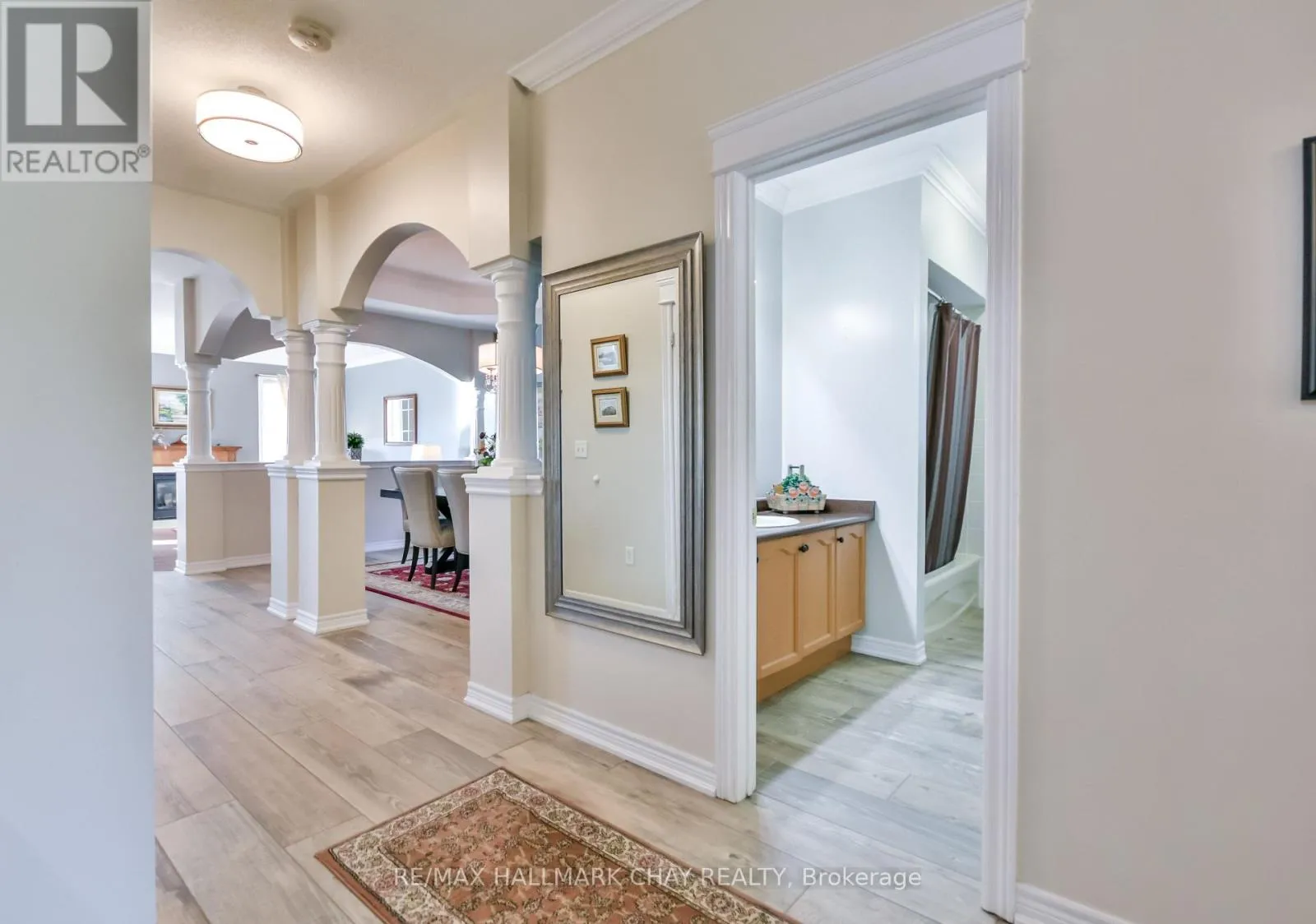 Cross Streets: Ryther Rd & Middleport Drive. ** Directions: Ryther Road to Middleport Drive to Meadowood Drive. Location, location, location, Welcome to 33 Meadowood Drive, that is in a family friendly neighborhood, beautifully upgraded home that backs on to green space and walking trails. It is minutes from a golf course and the Beach. Pride of ownership shines the moment you step inside this well-maintained home. This beautiful raised bungalow checks every box and more. There have been many recent upgrades to this home. All new windows (2024) new roof (2024) air exchanger (2022) crown moulding (2024) new large deck, stairs, glass railing and pergola, (2023) new flooring on most of the main floor, porcelain and high end laminate (2023) new ensuite bathroom (2023) 2.5 ton air conditioner (2023) two new glass patio doors (2024) and much more. This open concept home has 9 foot ceilings. The oversized elegant dining room makes hosting family and friends effortless. The bright living room offers the comforts of a warm fireplace, and also features a walkout to a large deck. There are two bedrooms on the main floor, one being the primary bedroom with a stunning ensuite. The kitchen has quartz countertops & a porcelain floor and lots of cupboards. There is a main floor laundry room with garage access. Downstairs, you'll find two spacious bedrooms, a 3 piece bath, and a bonus room that could be used for many things . There is a generous family room with a cozy gas fireplace and a large area for games or exercise equipment etc. The basement also has a walkout to a beautiful landscaped fenced yard and a brick patio. This outdoor oasis is perfect for relaxing or entertaining overlooking the private green space. Outside you will appreciate the curb appeal: a double driveway , with an attached double garage, and a gorgeous stone driveway, walkway, steps, and backyard patio. This home is move-in ready and waiting for its next proud owners. It's located just minutes from everything Wasaga Beach and surrounding areas has to offer. This home won't last long, book your viewing today! (id:27476)