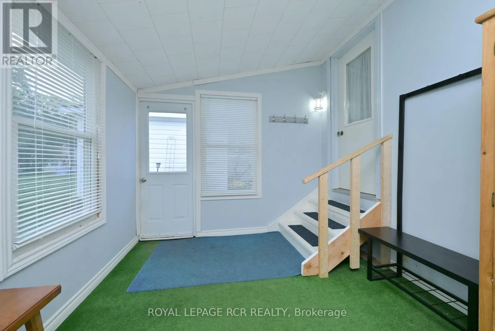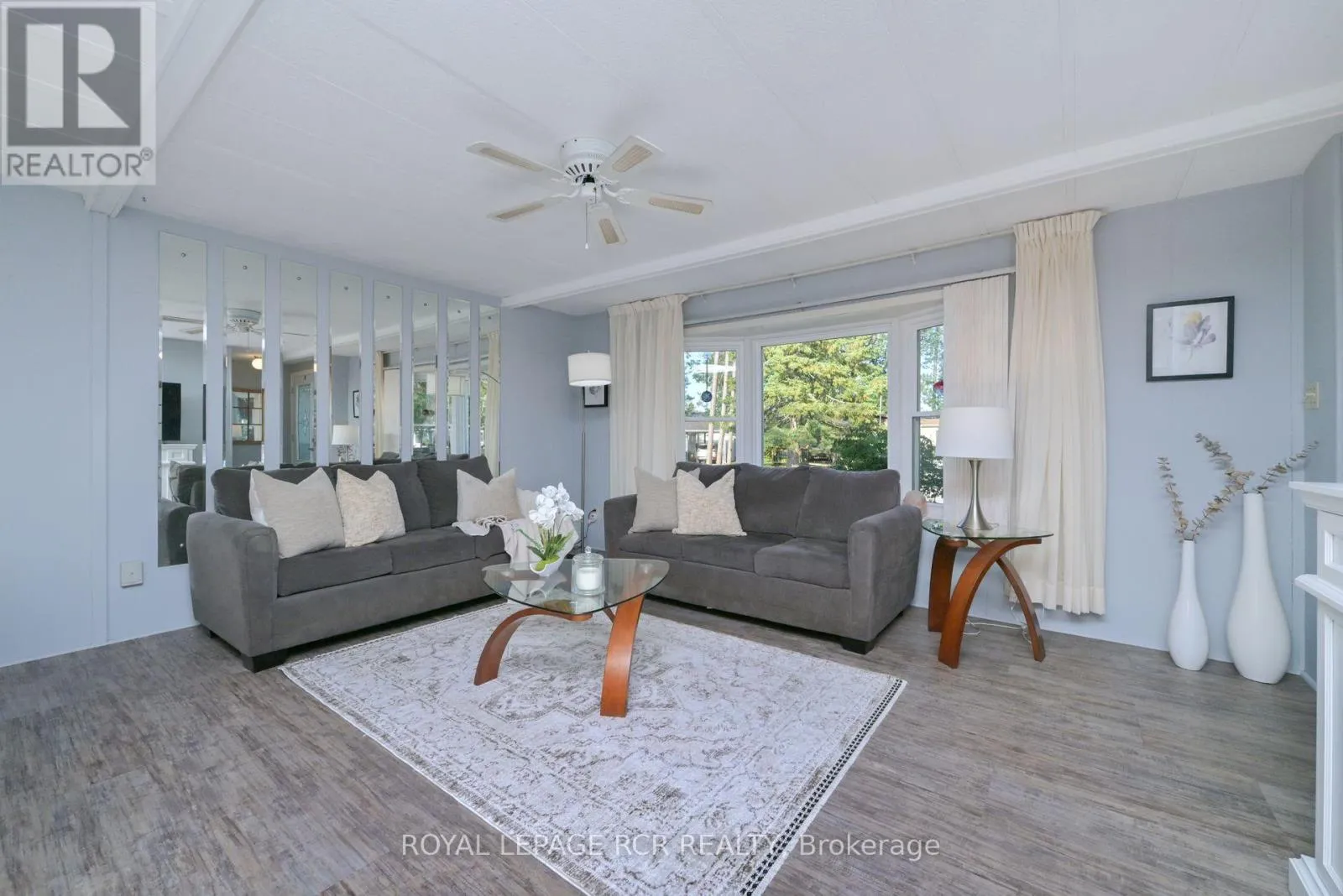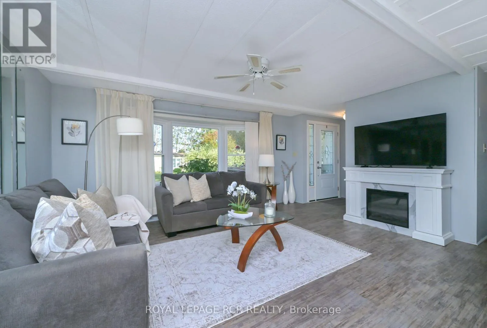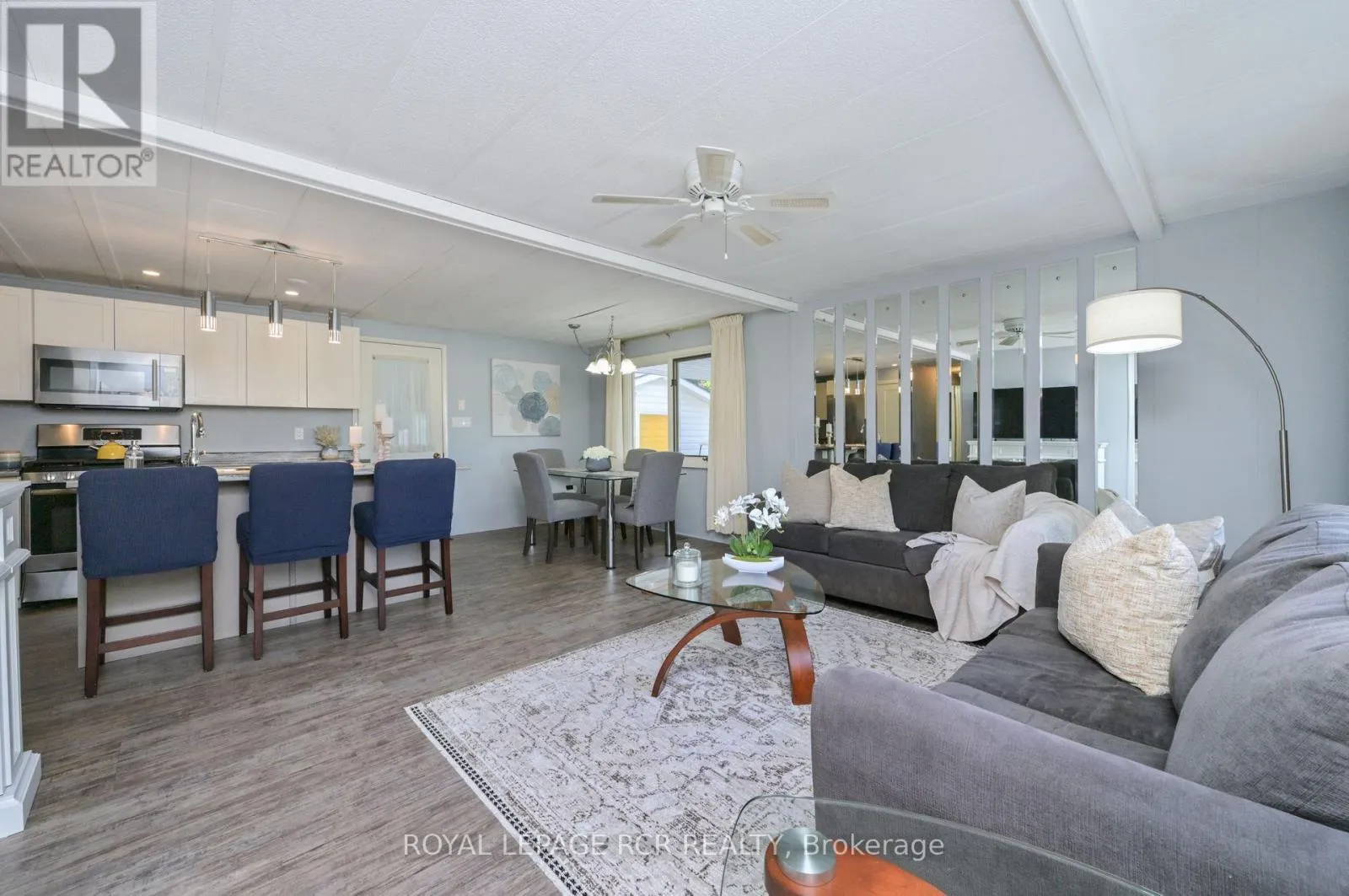 Klondike Park Rd & Watson Ave Welcome to your perfect blend of comfort, convenience, and community living at Hometown, a tranquil adult lifestyle community nestled just minutes from the shores of scenic Wasaga Beach. This beautifully updated 2-bedroom, 1-bah bungalow is a true gem-offering modern functionality in a quiet, friendly neighborhood designed for relaxed, carefree living. Generous three-car parking, covered carport, private storage shed for seasonal items, golf clubs, tools & maintenance free vinyl siding-everything you need to settle in & start living your best life. Gardens & front porch welcome you inside to a spacious open concept living/dining/kitchen area, designed to offer both comfort & style. Large bright window floods the space with natural light, & at the heart of the home, you'll find a beautifully updated kitchen boasting center island w/breakfast bar seating, soft-close cupboards/pot drawers galore, sleek stainless-steel appliances, including a 5-burner gas range, dishwasher, fridge & microwave. A cozy, functional space for entertaining family & friends. This home offers two spacious bedrooms, primary bedroom features a double closet, ensuring plenty of storage for clothing & personal items. Updated 4-piece bath offers convenience & style. It includes a full bathtub w/shower, modern vanity with storage, & quality fixtures. Ensuite laundry & walk in pantry complete this exceptional home. Off the dining area a bright 3-season sunroom extends your living space & accesses the private covered patio for outdoor dining & relaxing. One of the biggest perks of living in Hometown is the vibrant, active community lifestyle that comes with it. As a resident, you'll have access to the heated outdoor pool, on-site 9-hole golf course & Community Clubhouse. Shopping, restaurants & all amenities minutes away, come live your best life at 15 Carruthers! Monthly Fees are: Land Lease $725, Monthly Site taxes $35.49, Monthly house taxes $63.91 Total $824.40. Water meter is billed quarterly. (id:27476)