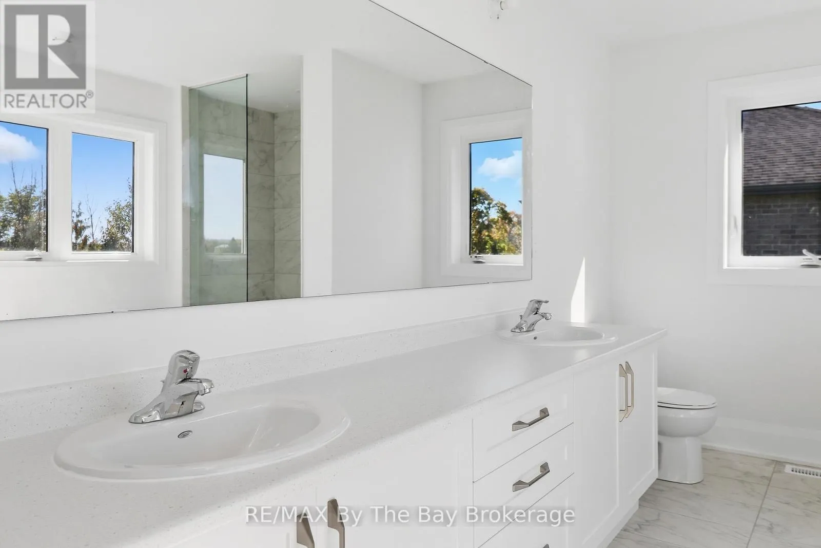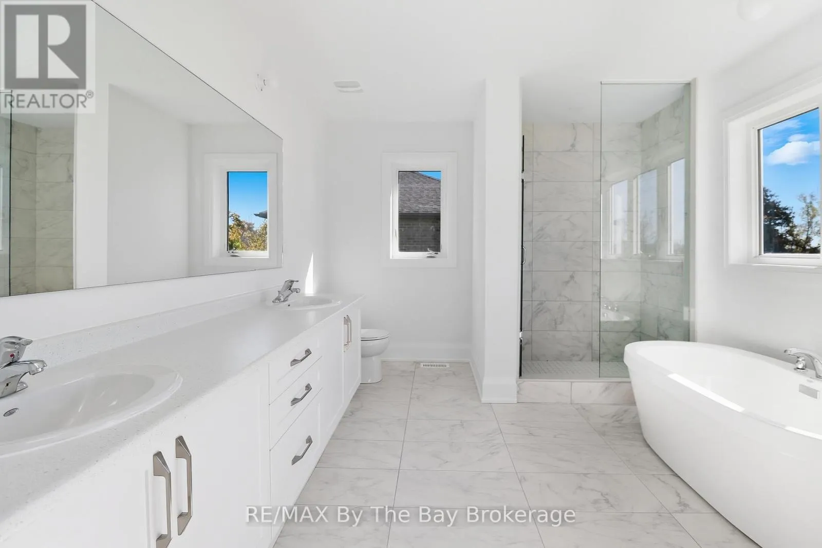 Cross Streets: 45th Street & Wasaga Sands Drive. ** Directions: 45th St to Wasaga Sands Drive to Pearl to Misty Ridge to Amber. Welcome to 66 Amber Drive, a stunning Walnut Elevation B in the sought-after Villas of Upper Wasaga (Phase 4). Set within the peaceful, final master-planned phase of Baycliffe Communities, this enclave is a private pocket of quiet streets and natural surroundings with this home backing directly onto parkland for unmatched privacy. Featuring a striking exterior design and just over 2,700 sq. ft. of upgraded living space, this 4-bedroom, 4-bathroom home is designed for both style and function, and is fully loaded with over $70,000 in upgrades. Inside, the bright open-concept main floor showcases upgraded hardwood, enhanced trim package, and elegant wrought iron spindles. The chefs kitchen is fully loaded with a double pantry, quartz counters, upgraded cabinetry, and sleek black hardware, opening seamlessly to the family and dining spaces. Practical touches include double garage access one through the laundry/mudroom and a bonus side entry from the exterior. Upstairs, retreat to the primary suite with a walk-in closet and spa-inspired ensuite, complete with a double vanity with banker drawers, freestanding soaker tub, and glass shower. Additional bedrooms feature ensuite or Jack & Jill access, all upgraded with quartz counters and premium finishes. With greenspace views for added tranquility, a full basement ready to customize, and thoughtful upgrades at every turn, this home blends comfort, style, and lifestyle. All of this just minutes from Wasaga Beach's shoreline, schools, shopping, and trails. 66 Amber Drive delivers unmatched style, function, and value in one of Wasaga Beach's most peaceful and private pockets. (id:27476)