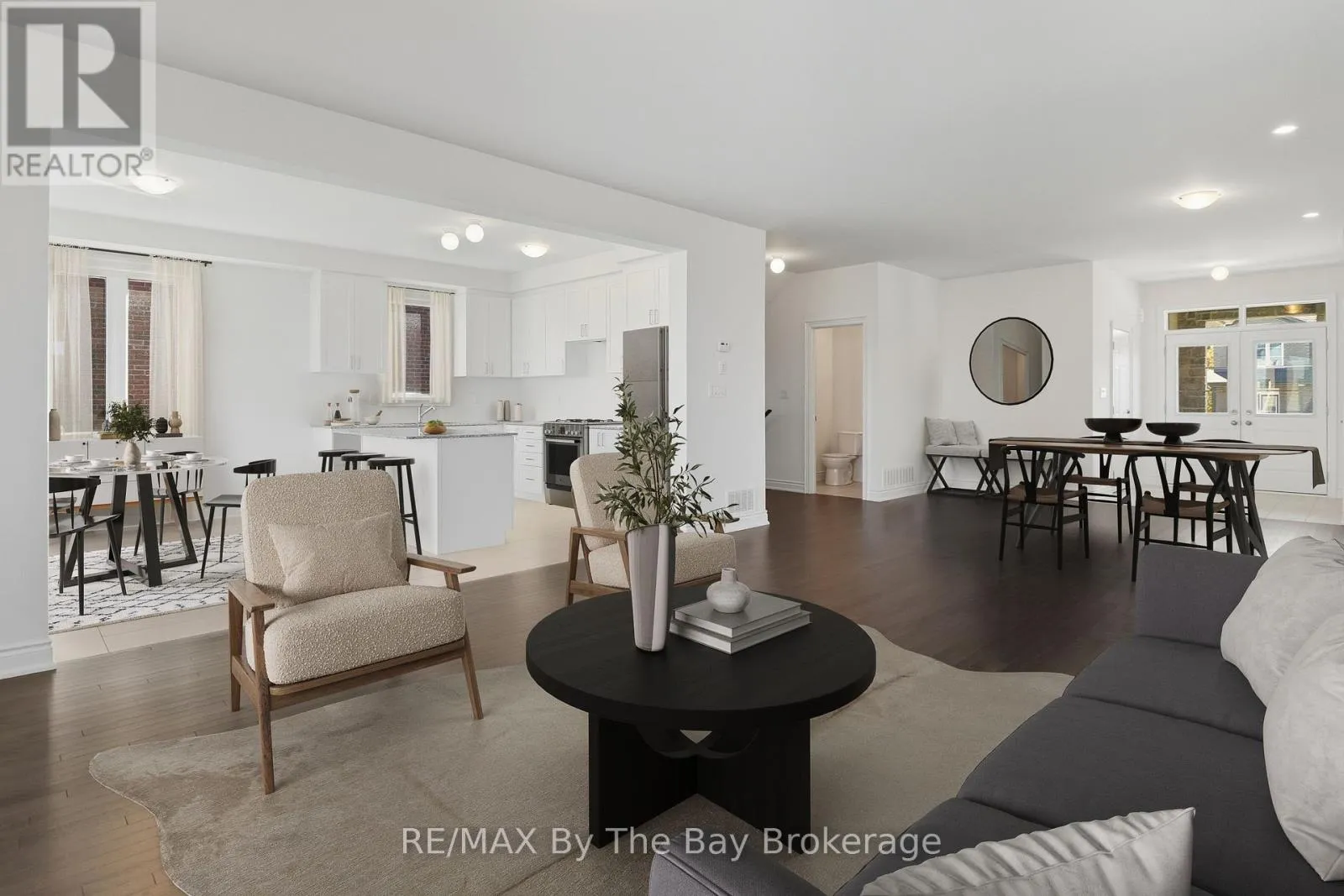 Cross Streets: 45th Street & Wasaga Sands Drive. ** Directions: 45th Street to Wasaga Sands Drive to Pearl to Misty Ridge to Amber. Welcome to 59 Amber Drive, boasting all Brick & Stone home with triple car garage. This stunning move in Pine Model in the sought-after Villas of Upper Wasaga (Phase 4). Set within the peaceful, final master-planned phase of Baycliffe Communities, this enclave is a private pocket of quiet streets and natural surroundings . Step inside through a covered front entryway to a spacious foyer leading into a bright open-concept living and dining area with gleaming hardwood floors, pot lights, and 9-foot ceilings. Large windows flood the main floor with natural light, while the upgraded kitchen showcases white cabinetry, granite countertops, a large island, and a walkout to the rear yard perfect for entertaining or family living. Upstairs, discover four spacious bedrooms and three-and-a-half bathrooms, including two private ensuites and a Jack & Jill bath shared by the remaining bedrooms. The primary suite offers a generous walk-in closet and a luxurious 5-piece ensuite with a glass shower and double vanity. Additional features include wrought iron spindles, upgraded tile and hardwood, main floor laundry, rough in for a electric car charger in the garage. A convenient side entrance leads to the unfinished basement, offering potential for a private suite or future customization. Located just minutes from Wasaga Beach's shoreline, schools, shops, and trails, this home delivers the perfect balance of luxury, comfort, and lifestyle all in one of Wasaga Beach's most peaceful and private pockets. (id:27476)