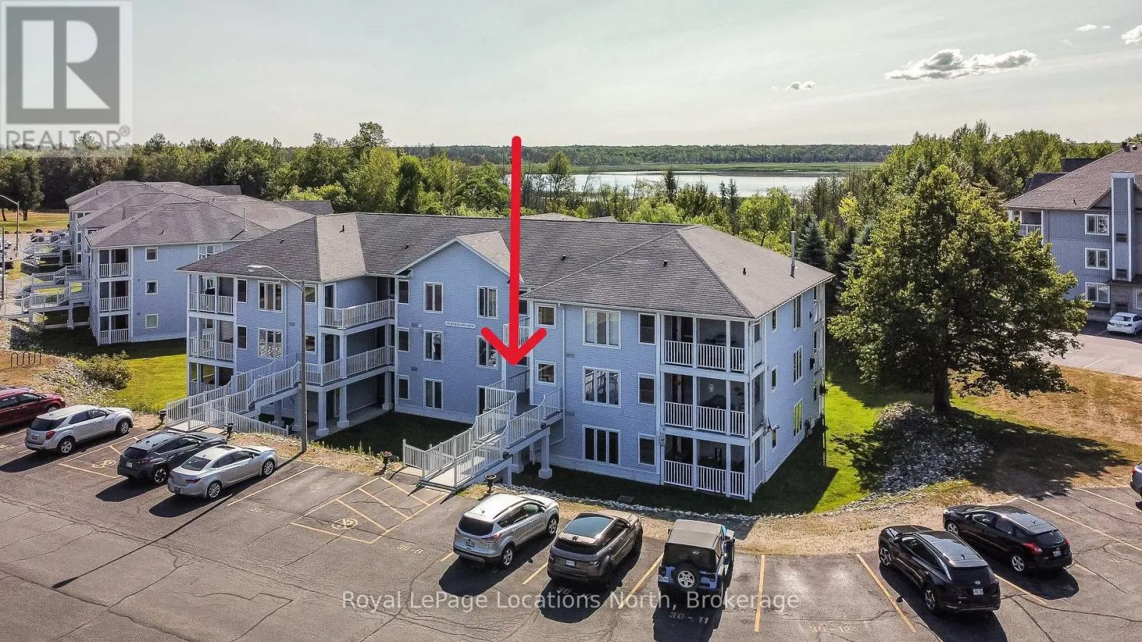 Cross Streets: Fairway Crescent & Mulligan Lane. ** Directions: River Road West to Zoo Park Road (turn south) to Golf Course Road (turn right) to Fairway Crescent (turn left) to Marlwood Condominiums (near 90 Fairway) to 30 Mulligan Lane Building. Look for Door #8 on right side ramp/stairs to 2nd floor. Amazing opportunity to own a large, open-concept condominium in the VERY popular Marlwood Golf Course Community of Wasaga Beach. At just shy of 1,200 sq. ft., this 2-bedroom, 2-bath condo offers a lot of space. You'll love the open-concept design of the kitchen (with breakfast bar) that overlooks both the dining area and the living room (with corner gas fireplace). This particular design also has a huge (13' x 21') covered and screened-in deck/balcony (accessed from the living room sliding glass doors), which also overlooks the private, mature-treed rear yard. There is also a set of stairs at the back of the building if you wish to easily walk your pet and/or wiggle your toes in the luscious, grassed area out back too. Laminate flooring adorns all rooms (except the kitchen, bathrooms, laundry & foyer), and other amenities of this condo include its own in-suite laundry with a new stackable washer/dryer, central vac, economical gas heat & central air-conditioning. This 2nd-floor "interior unit" has a condo above, below, and on each side of it, so it is also one of the most economically efficient (for heating and cooling) locations in the building. And speaking of great locations, this condo also has easy access to its front door thanks to the gently sloping ramp/stairs with only 5 gradual steps from the parking lot to the condo - so no long flight of stairs to navigate. Your designated parking spot is directly out front, with ample guest parking and a conveniently located mailbox nearby. The condo fees are $659.42/month & property taxes are $153/month. Located just a short drive from the sandy shores of the world's longest freshwater beach, this condo offers easy access to the Marlwood Golf Course and nearby walking & biking trails. You're also minutes from east-end Wasaga Beach amenities, including shopping, dining, the Stonebridge/Walmart commercial area, the new arena, and the library, making this quiet, well-connected location truly unbeatable. (id:27476)