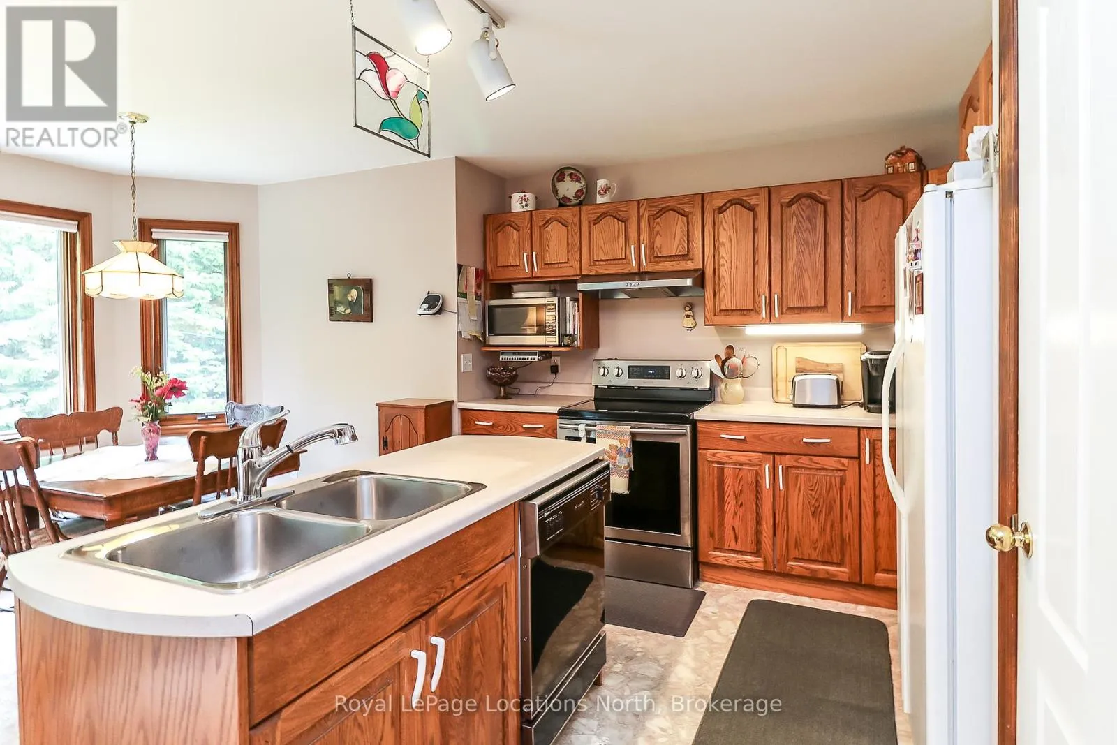 Cross Streets: Wasaga Sands Drive / Kelley Crescent. ** Directions: Mosley Street to 45th St. S. to Wasaga Sands Drive (turn left/east) to Kelley Crescent (turn right/south) to #3 Kelley. On the left side, see the For Sale sign. Unbelievable value for an all-brick, custom-built home in the prestigious Wasaga Sands/Twin Creeks Subdivision. Pride of ownership exudes throughout the neighbourhood. Known as a quiet area of beautiful homes on large, well-kept lots with mature trees, this location will not disappoint [view video/virtual tour to see how private this backyard (and street) really is]. Backing onto dedicated open space parkland with no rear-yard neighbours, will make you fall in love with the privacy afforded on this mature-treed lot (measuring approximately 102' x 172'). This 1,600 sq. ft. ranch-style bungalow has no stairs inside (except to the basement), with loads of main-floor living features for comfortable living. Features include a large living/dining room area at the front of the house; an equally large family room (with gas fireplace & walk-out to deck) that is open concept with the kitchen & adjoining breakfast nook, all overlooking the gloriously private rear yard; 3 generously sized bedrooms (or 2 + den/office); 2 full baths & a laundry room (with entrance to the large, 23' x 23' double garage). This house also has a mostly finished basement (only a couple of storage areas & a workshop that are unfinished). Rooms downstairs include a family/recreation room (with a gas fireplace/stove) that is open to the games room, a 4th bedroom, a 3rd full bathroom, a workshop (with pass-through access to the garage), & lots of room for storage too. Upgrades include a central air conditioner (2024), gas furnace, shingles, 2 gas fireplaces, the all-brick exterior, low-maintenance vinyl windows, and a double-wide paved drive (room to park 6 or more cars). Neighbourhood amenities include walking trails, tennis & pickleball courts, a baseball diamond, a jogging track, a toboggan hill, and playground areas. This home is located within a short drive (or bicycle ride) of the beautiful sandy shores of the longest freshwater beach (Wasaga Beach) along the shores of stunning Georgian Bay. (id:27476)