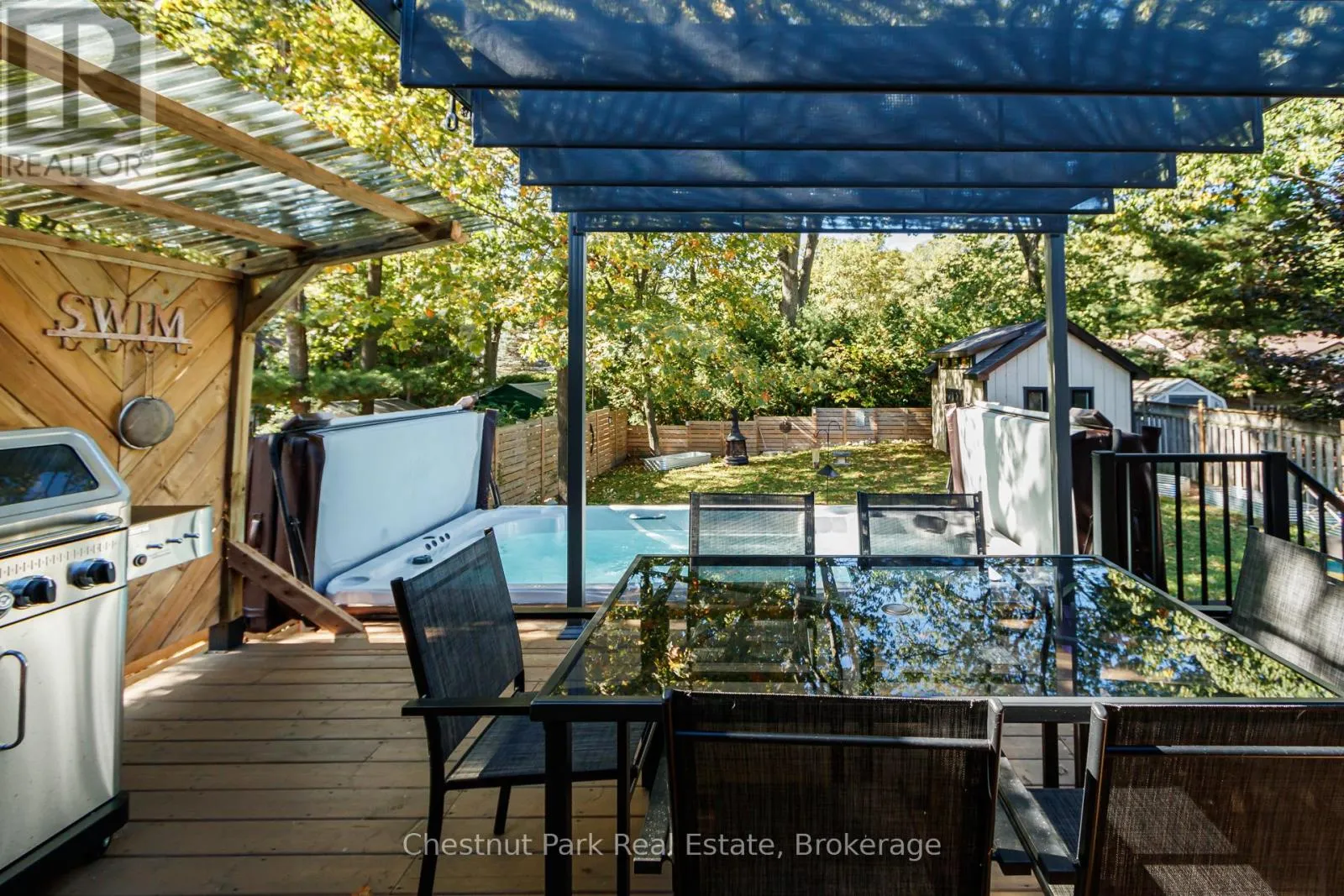 Cross Streets: Springdale Avenue and Melrose Avenue. ** Directions: Turn right off Mosley onto Sunnydale Road S, turn right onto Springdale Avenue, Turn Left onto Melrose Avenue and the property is on the right. This is the one you've been searching for. This immaculate/stunning 4 Bed property has wonderful curb appeal with the new covered entry way that the current owners have created. Quietly tucked away in a peaceful neighbourhood surrounded by mature trees in the West end of Wasaga Beach. Minutes to the Beach and only a short drive to Collingwood. Open concept Living/Dining/Kitchen with access to the oversized split level new deck in 2023, private backyard oasis complete with stunning new in 2020 14 Swim Spa, Arctic Spa Ocean Model w/party package 6 seater and which is included in the sale. The Primary bedroom is also on the main floor w/new ensuite in 2022 and direct access out onto the back deck with views of the garden/pool-tub. 2 further Beds with new flooring in 2022 and 4PC bath. Laundry & inside access to garage. Numerous upgrades have been completed by the current owners including a fully finished basement in 2019 with spacious open concept incorporating a relaxing Rec Room area with gym. A 4th bedroom and 3PC bathroom and lots of useful storage space. Oversized windows allow lots of natural light to flow-in. The peaceful back yard is ideal for entertaining and has a newer fence and a fabulous new in 2023 insulated & serviced garden shed. Oversized double car garage with plenty of storage space. New shingles 2024 with transferrable warranty. The ultimate 4 Season area with easy access to the longest freshwater beach in the world is just minutes away, golf, tennis, private ski clubs and Blue Mountain only a short drive away. (id:27476)