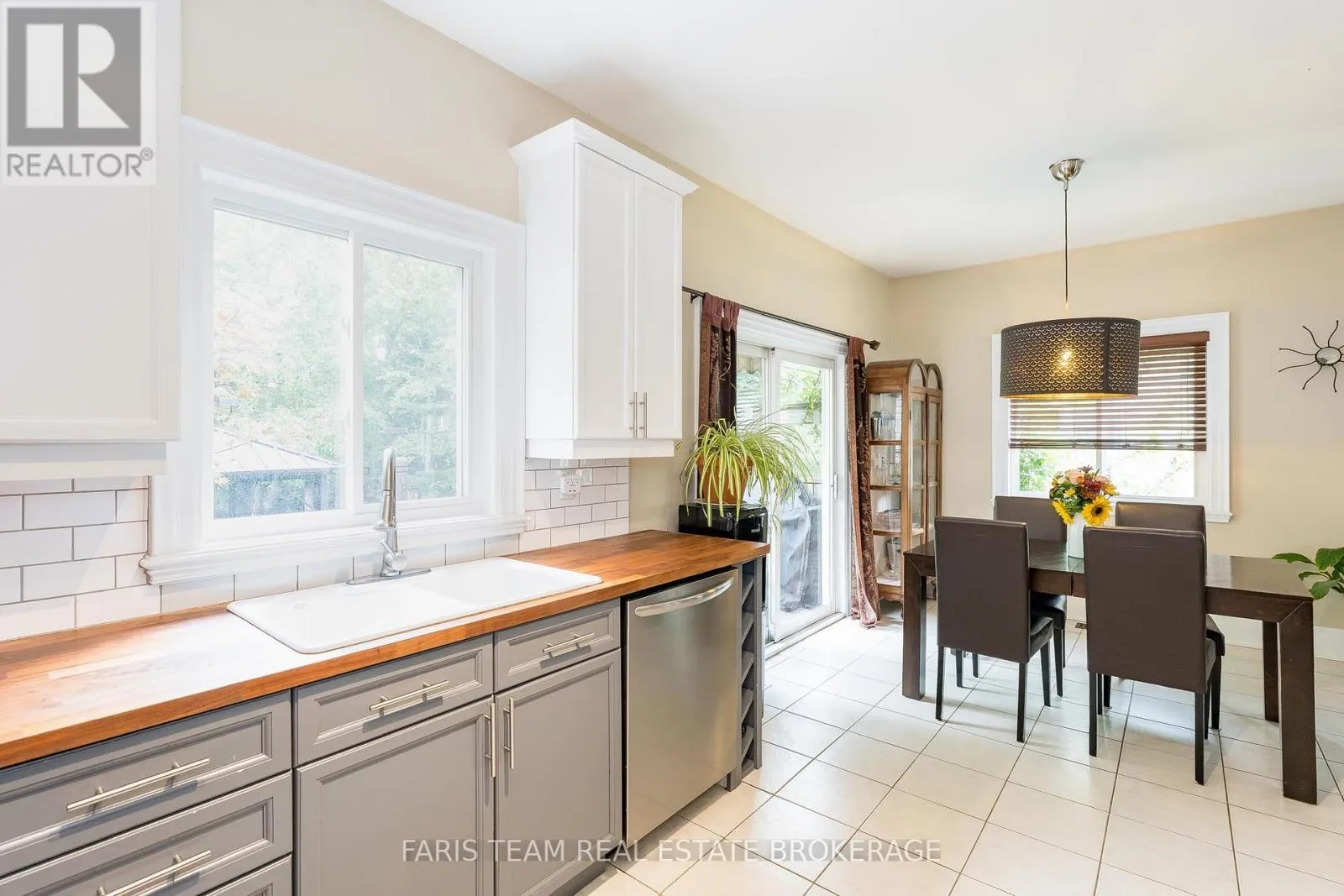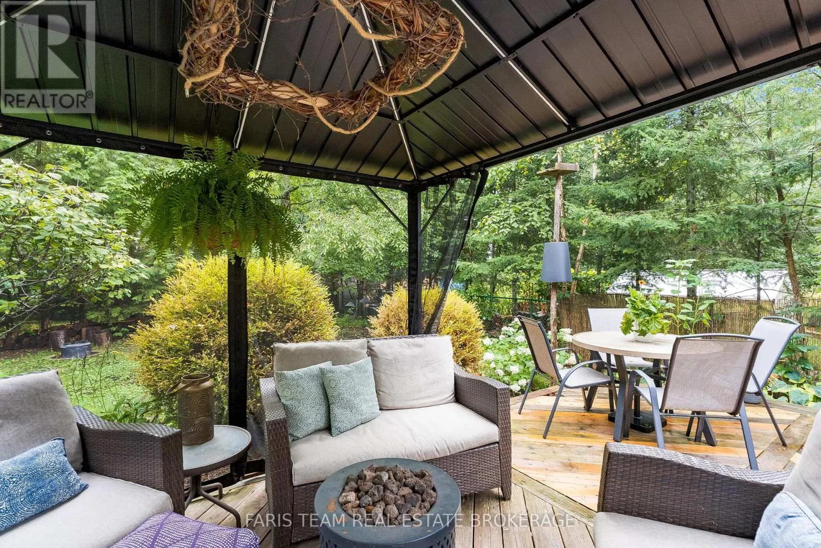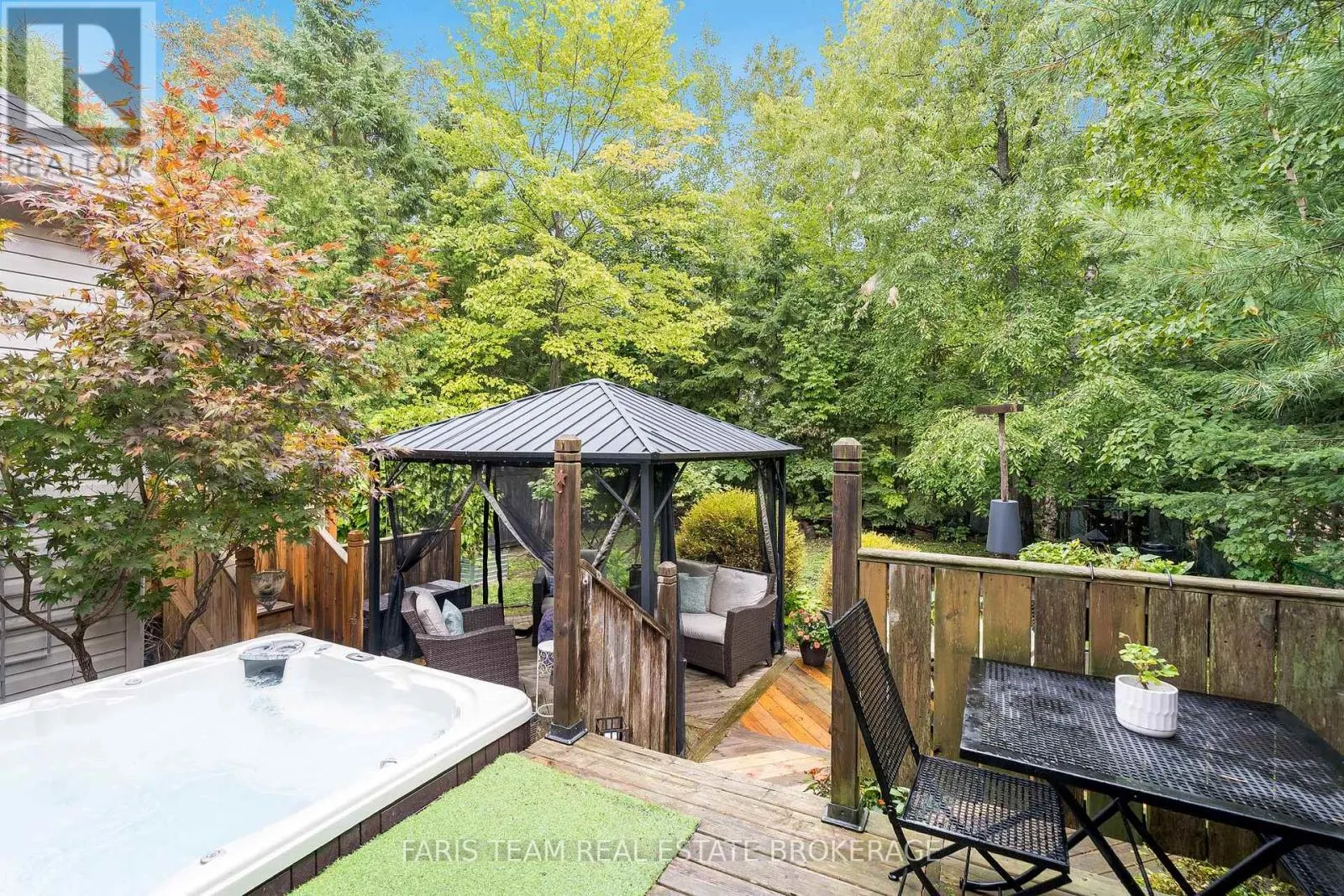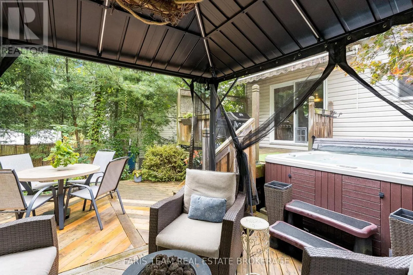 Mosley St/62nd St S Top 5 Reasons You Will Love This Home: 1) Just 500 metres from the sandy shores of Wasaga Beach and Georgian Bay, with a traffic light for safe crossings, perfect for walking, biking, or driving to nearby grocery stores, cafes, restaurants, and everyday conveniences, plus, enjoy quick connections to Collingwood, Blue Mountain, Barrie, Toronto, and the GTA 2) Enjoy the high 9 ceilings throughout and a dramatic 11 ceiling by the three front-facing windows in the front living room creating a bright, welcoming atmosphere, with the open-concept design seamlessly connecting the living room, complete with a cozy gas fireplace to the dining area and modern kitchen, perfect for both relaxed family living and entertaining 3) A true chef's delight with stainless-steel appliances, a butcher block countertop, a classic subway tiled backsplash, and tall cabinetry with crown moulding detailing, meanwhile the adjoining dining room features walkout access to the deck, enhancing indoor and outdoor living with ease 4) The primary suite delivers a walk-in closet, a beautifully updated 4-piece ensuite, and French doors opening to the deck, while the main level also includes a second bedroom, a full bathroom, and laundry room, alongside the fully finished basement which expands the living space with two additional bedrooms, a 3-piece bathroom, and a spacious recreation room with a gas fireplace, and enjoy peace of mind with recent updates including a reshingled roof (2019), an updated furnace and hot water tank (2022), and an updated air conditioner (2023), so you can move in with confidence 5) Relax in your serene, tree-lined backyard featuring a multi-tier deck with glass railings, a hot tub, and a gazebo, whether its morning coffee or evenings after the beach or ski hill, this fully fenced yard is the ultimate private retreat. 1,424 above grade sq.ft. plus a finished basement. (id:27476)