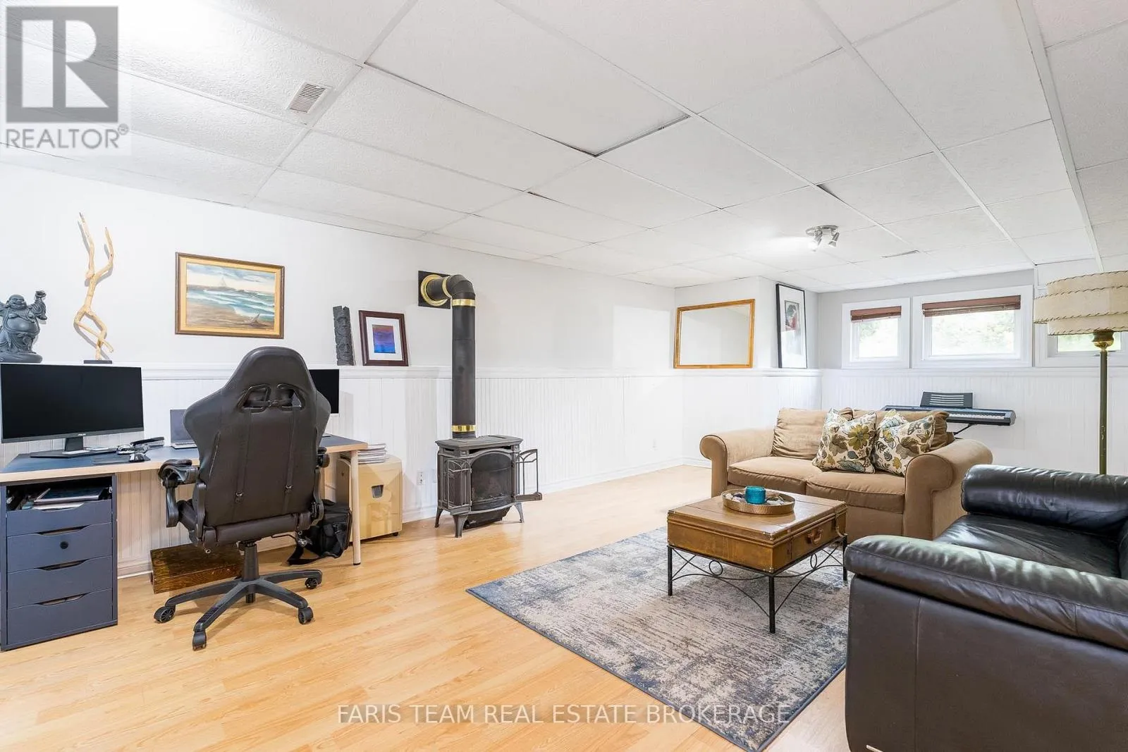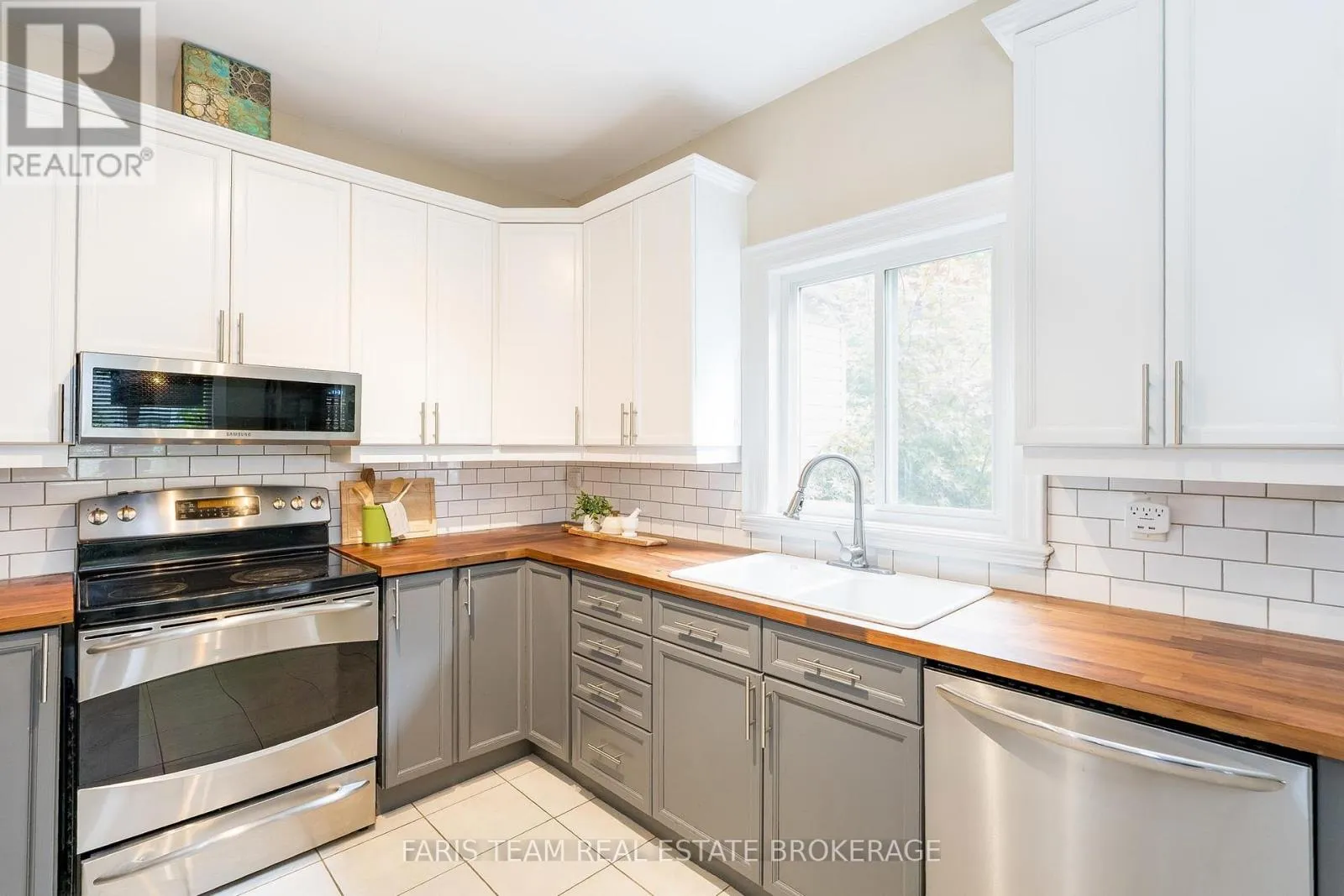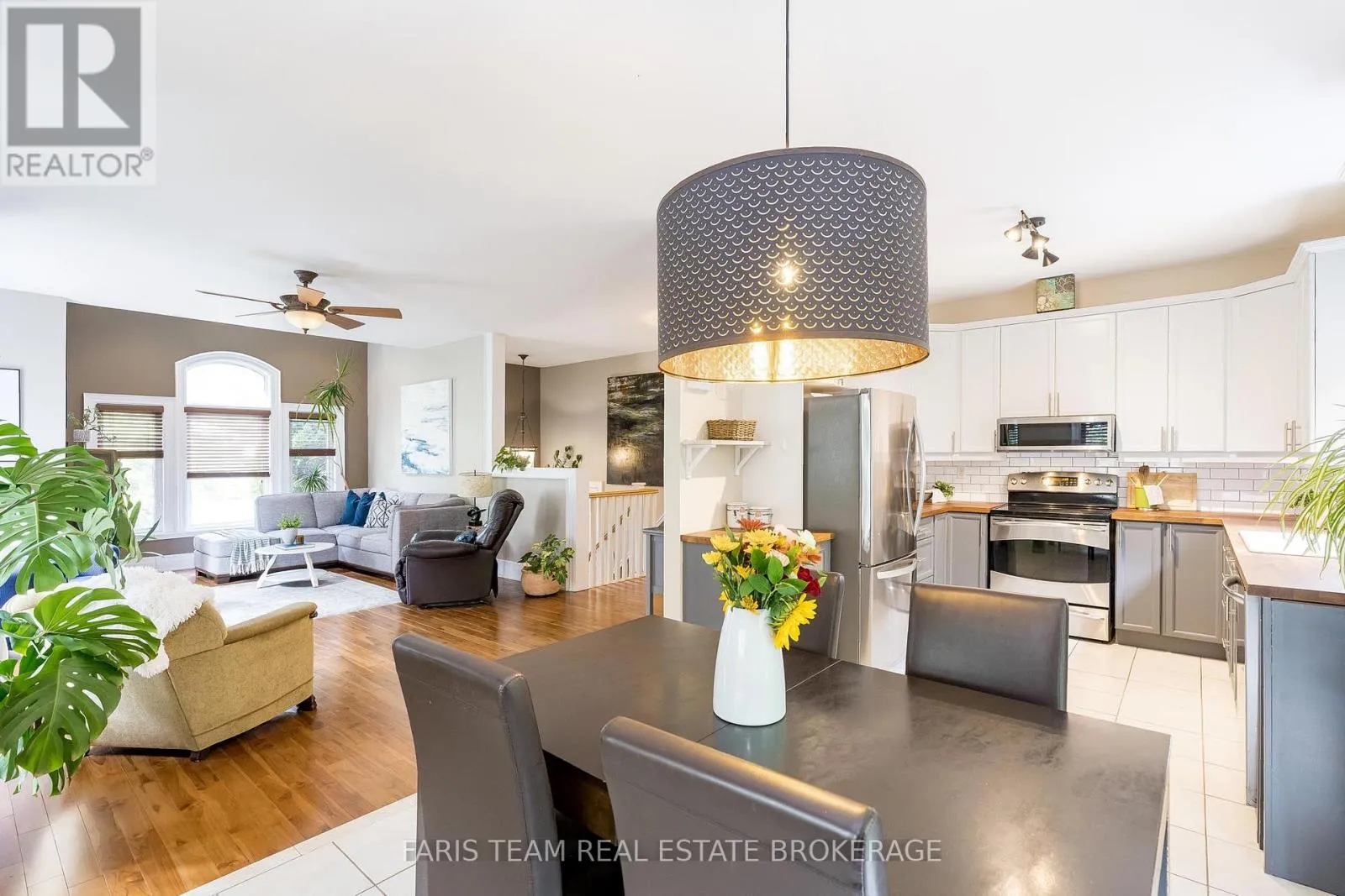 Mosley St/62nd St S Top 5 Reasons You Will Love This Home: 1) Just 500 metres from the sandy shores of Wasaga Beach and Georgian Bay, with a traffic light for safe crossings, perfect for walking, biking, or driving to nearby grocery stores, cafes, restaurants, and everyday conveniences, plus, enjoy quick connections to Collingwood, Blue Mountain, Barrie, Toronto, and the GTA 2) Enjoy the high 9 ceilings throughout and a dramatic 11 ceiling by the three front-facing windows in the front living room creating a bright, welcoming atmosphere, with the open-concept design seamlessly connecting the living room, complete with a cozy gas fireplace to the dining area and modern kitchen, perfect for both relaxed family living and entertaining 3) A true chef's delight with stainless-steel appliances, a butcher block countertop, a classic subway tiled backsplash, and tall cabinetry with crown moulding detailing, meanwhile the adjoining dining room features walkout access to the deck, enhancing indoor and outdoor living with ease 4) The primary suite delivers a walk-in closet, a beautifully updated 4-piece ensuite, and French doors opening to the deck, while the main level also includes a second bedroom, a full bathroom, and laundry room, alongside the fully finished basement which expands the living space with two additional bedrooms, a 3-piece bathroom, and a spacious recreation room with a gas fireplace, and enjoy peace of mind with recent updates including a reshingled roof (2019), an updated furnace and hot water tank (2022), and an updated air conditioner (2023), so you can move in with confidence 5) Relax in your serene, tree-lined backyard featuring a multi-tier deck with glass railings, a hot tub, and a gazebo, whether its morning coffee or evenings after the beach or ski hill, this fully fenced yard is the ultimate private retreat. 1,424 above grade sq.ft. plus a finished basement. (id:27476)