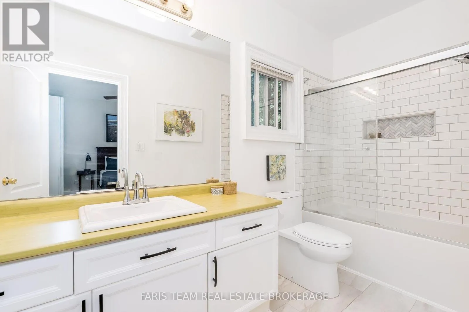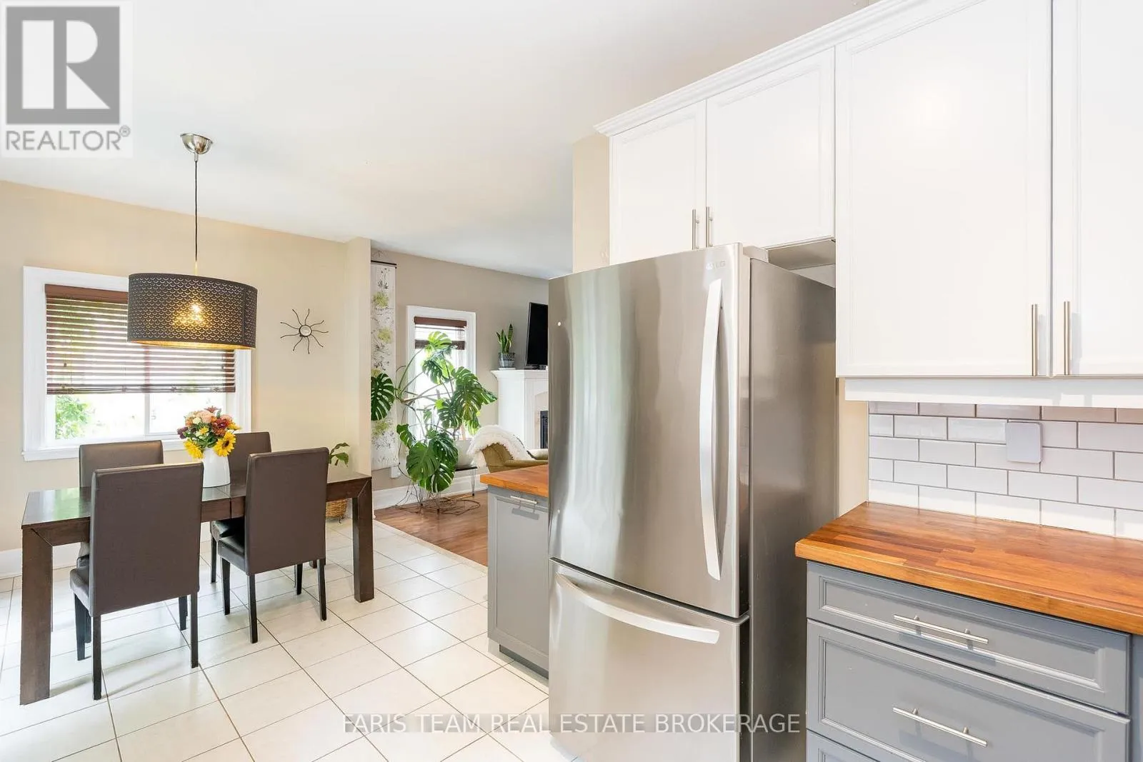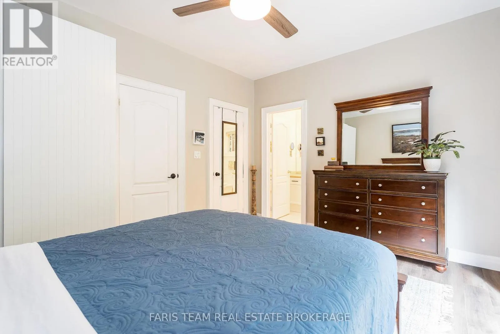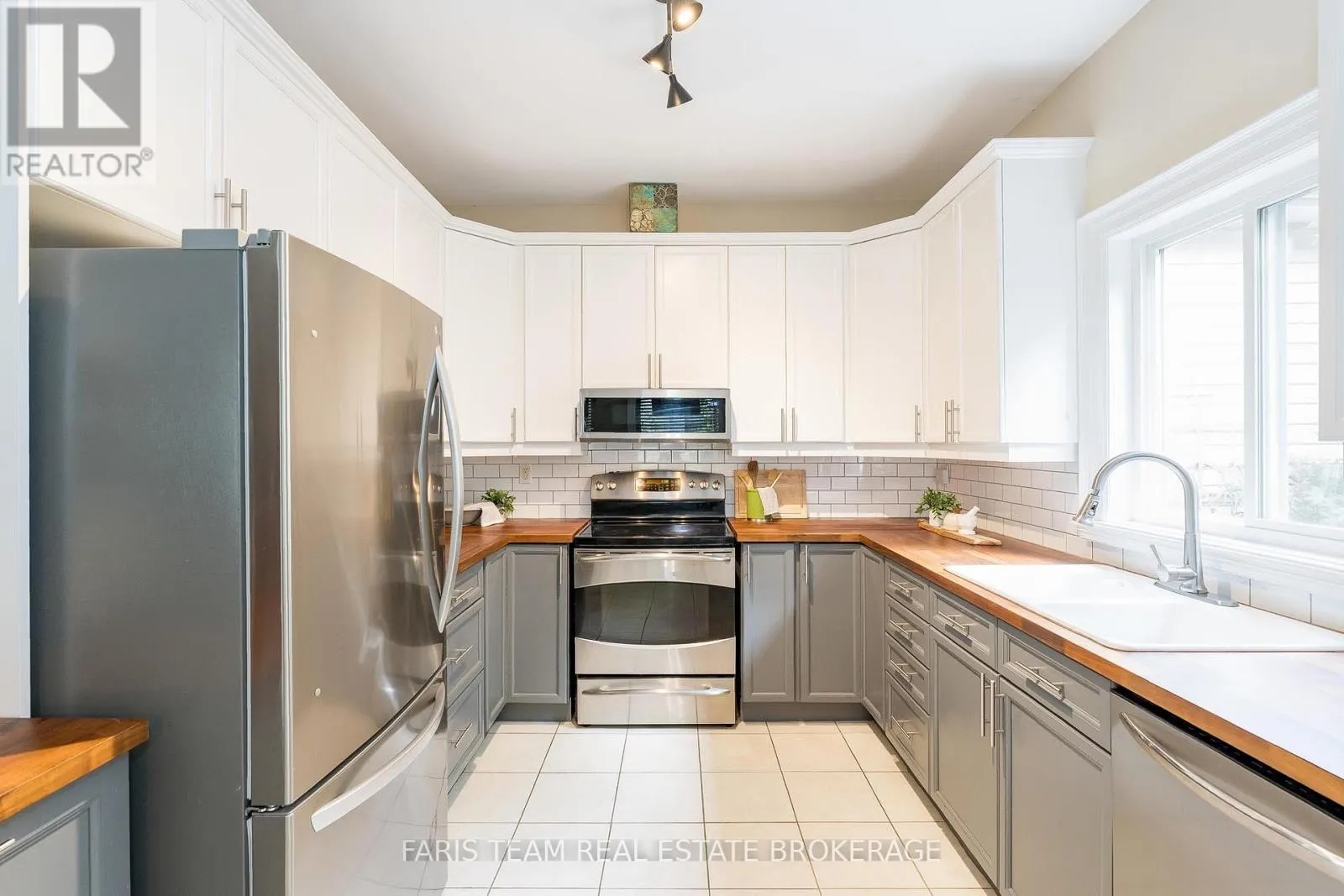 Mosley St/62nd St S Top 5 Reasons You Will Love This Home: 1) Just 500 metres from the sandy shores of Wasaga Beach and Georgian Bay, with a traffic light for safe crossings, perfect for walking, biking, or driving to nearby grocery stores, cafes, restaurants, and everyday conveniences, plus, enjoy quick connections to Collingwood, Blue Mountain, Barrie, Toronto, and the GTA 2) Enjoy the high 9 ceilings throughout and a dramatic 11 ceiling by the three front-facing windows in the front living room creating a bright, welcoming atmosphere, with the open-concept design seamlessly connecting the living room, complete with a cozy gas fireplace to the dining area and modern kitchen, perfect for both relaxed family living and entertaining 3) A true chef's delight with stainless-steel appliances, a butcher block countertop, a classic subway tiled backsplash, and tall cabinetry with crown moulding detailing, meanwhile the adjoining dining room features walkout access to the deck, enhancing indoor and outdoor living with ease 4) The primary suite delivers a walk-in closet, a beautifully updated 4-piece ensuite, and French doors opening to the deck, while the main level also includes a second bedroom, a full bathroom, and laundry room, alongside the fully finished basement which expands the living space with two additional bedrooms, a 3-piece bathroom, and a spacious recreation room with a gas fireplace, and enjoy peace of mind with recent updates including a reshingled roof (2019), an updated furnace and hot water tank (2022), and an updated air conditioner (2023), so you can move in with confidence 5) Relax in your serene, tree-lined backyard featuring a multi-tier deck with glass railings, a hot tub, and a gazebo, whether its morning coffee or evenings after the beach or ski hill, this fully fenced yard is the ultimate private retreat. 1,424 above grade sq.ft. plus a finished basement. (id:27476)