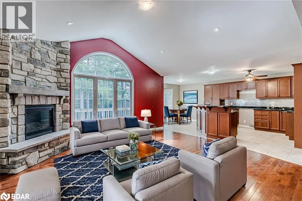 River Rd W/Silver Birch Ave/Caribou Trl/Royal Beech Dr/Fawndale Cres OVER 3,700 SQ FT OF BEACH TOWN LUXURY WITH SOARING CEILINGS, NATURAL LIGHT, & A BASEMENT THAT WOWS! Set on one of Wasagaâs most coveted streets, this home offers over 3,700 finished sq ft of exquisitely finished living space, just minutes from schools, parks, dining, and the sandy Georgian Bay shoreline. Surrounded by expansive forested land with easy access to hiking trails, golf courses, and scenic lookouts, and just 30 minutes from Collingwood and Blue Mountain Village, this home is perfectly positioned for everyday comfort and year-round adventure. The exterior impresses with its beautiful landscaping, covered front porch, triple-car garage, and driveway that accommodates six vehicles. The fenced yard backs onto mature trees and features a multi-level deck and lush lawn space, creating a peaceful and private outdoor escape. Inside, a grand foyer features a striking curved staircase and opens to a great room with a soaring double-height ceiling and two-tiered windows. The open-concept main level is bathed in natural light and includes a vaulted living room with a stone-detailed fireplace, a kitchen with a quartz-topped island, a sunlit eat-in area, and a walkout to the deck, plus a formal dining room with a tray ceiling. The primary suite features double walk-in closets, deck access, and a spa-inspired ensuite with dual vanities and a deep soaker tub. A second main bedroom, equipped with an oversized picture window, is serviced by an additional full bath. The basement is an entertainerâs dream, boasting a rec room with a dry bar and plenty of space for media and game tables. A full bath, pantry storage, guest bedroom, and versatile office and den spaces complete the layout. Rich hardwood floors, pot lights, main floor laundry, and an immaculately move-in-ready condition complete this incredible home. This is more than a #HomeToStay - itâs your chance to live, entertain, and unwind in an unforgettable Wasaga setting! (id:27476)