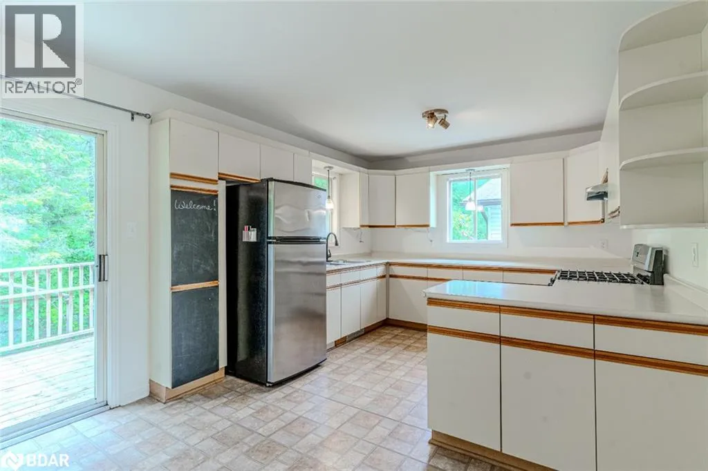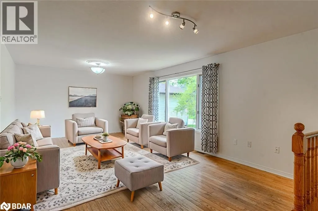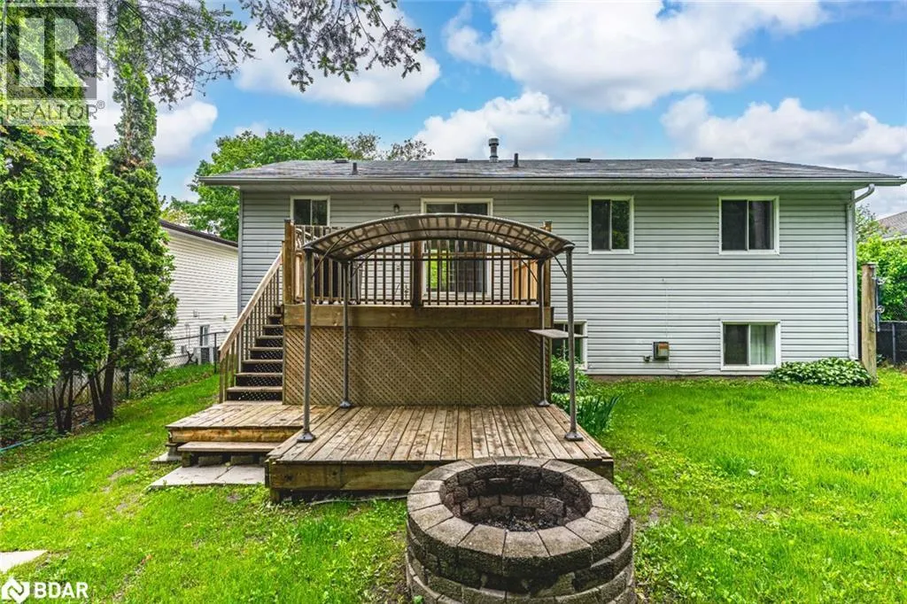 HWY 26/Mosley St/River Rd W/Innisbrook Dr OVER 2,100 SQ FT OF COMFORT, PRIVACY, & POSSIBILITY - YOUR WASAGA RETREAT AWAITS! Step into exceptional living with this spacious raised bungalow tucked away in a quiet, family-friendly neighbourhood surrounded by mature trees and green space, just minutes from parks, trails, and the sandy shoreline of Wasaga Beach. Ideally placed within 10 minutes to local shops and daily amenities, 20 minutes to Collingwoodâs Blue Mountain Village and Ski Resort, and only 40 minutes to vibrant downtown Barrie, this home offers unbeatable lifestyle and convenience. Enjoy ultimate privacy in a fully fenced backyard backing onto forested land with no rear neighbours, complete with a raised 10' x 14' deck with a gas BBQ hook-up (BBQ included), a lower deck, stone fire pit, garden shed, clothesline, and generous under-deck storage. Curb appeal shines with classic brick fronting and clean vinyl siding, a double-wide driveway, and an attached garage offering convenient interior access. Inside, a sun-filled living room showcases an oversized picture window and a rich hardwood staircase and flooring, while the bright eat-in kitchen features stainless steel appliances, updated fixtures, abundant cabinetry, and a seamless walkout to the rear deck. Two bright main-floor bedrooms include a peaceful primary suite with dual closets and views of surrounding nature, paired with a refreshed four-piece bath and a handy linen closet. The finished lower level boasts 8' ceilings, plush newer carpeting, an oversized rec room with a gas fireplace, two large bedrooms with egress windows, a stylish three-piece bath, and a full laundry room with upper cabinets, a laundry tub, and quality appliances. With refreshed paint throughout and loaded with extras including central air, a high-efficiency furnace, central vacuum, and an owned hot water tank, this move-in ready #HomeToStay offers over 2,100 sq ft of finished living space - an outstanding opportunity for families or savvy investors alike! (id:27476)