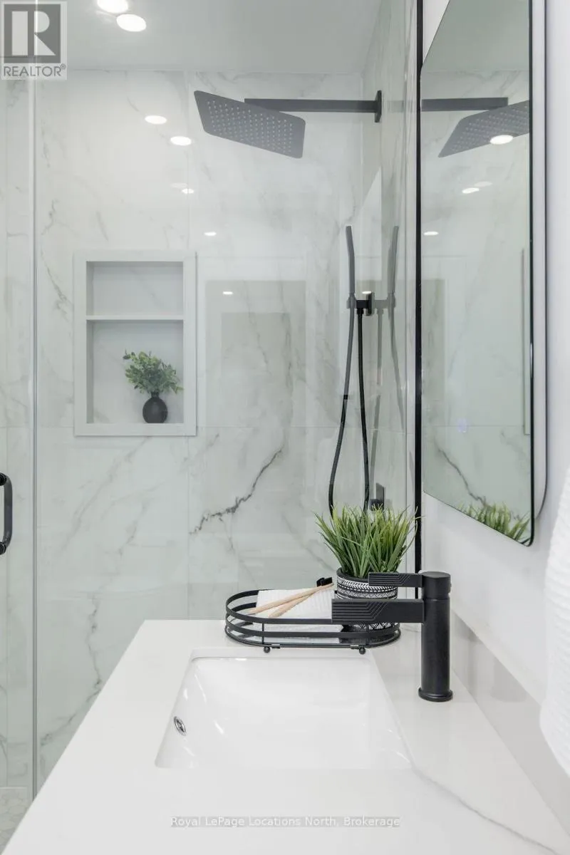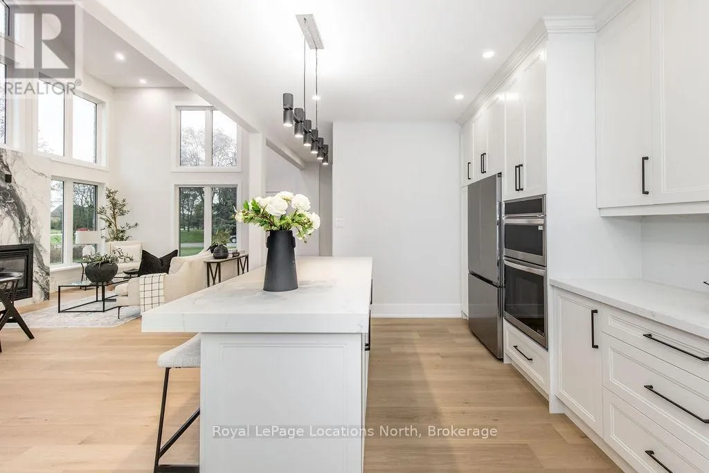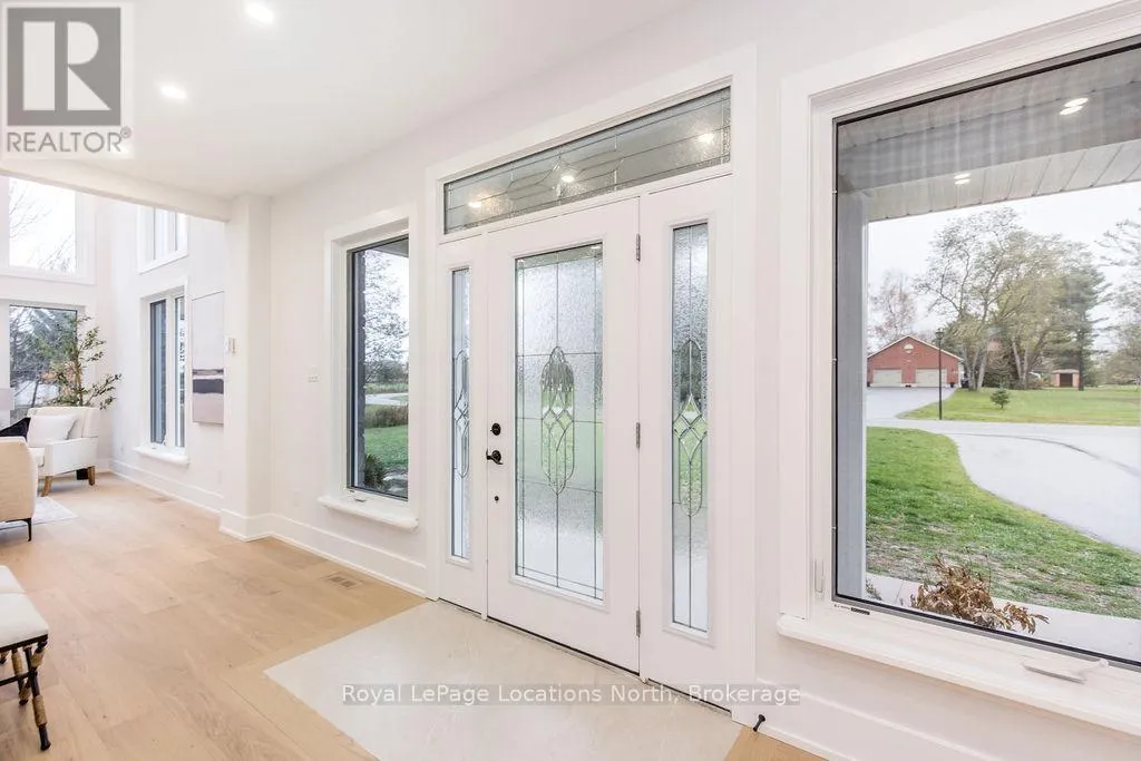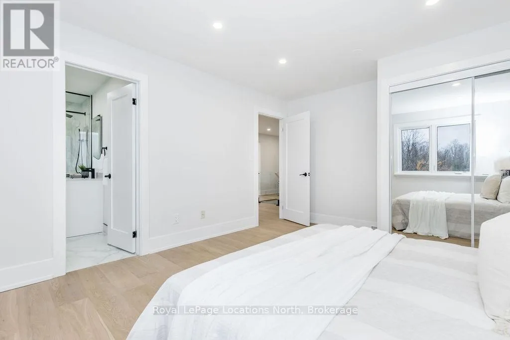 Cross Streets: Sunnidale/Maple/Butternut. ** Directions: Sunnidale Road S to Maple Drive to Butternut Crescent. Welcome to 6 Butternut Crescent, a fully renovated estate home located in one of Wasaga Beach's most sought-after areas, Wasaga Sands. Sitting on a half-acre lot (131 x 216 ft) with no neighbour on one side, this property offers rare privacy and plenty of outdoor space. The custom stone and stucco home, built by Alan Timlock, stands out for its unique architectural design with vaulted ceilings and floor-to-ceiling windows that fill every room with natural light.Inside, you'll find an open and consistent flow across the main floor, featuring a spacious living area, brand-new kitchen with quartz counters and new stainless-steel appliances, and a modern 3-piece bathroom. There's also a main floor bedroom, laundry room with inside entry to the oversized double garage, and new engineered hardwood flooring throughout. Every detail has been updated from new doors, hardware, pot lights, glass railings, and a beautiful new fireplace surround.The finished lower level adds even more living space with 2 additional bedrooms, a full bathroom, and a large open area perfect for a rec room, gym, or guest suite. With 3+2 bedrooms and 4 bathrooms in total, this home offers the space and flexibility families are looking for.The property features 9-ft ceilings, forced-air gas heating, central air conditioning, municipal water, and a septic system.If you've been searching for a modern, move-in-ready home on a large lot in a quiet, high-end neighbourhood close to golf, schools, and the beach, this one checks every box. (id:27476)