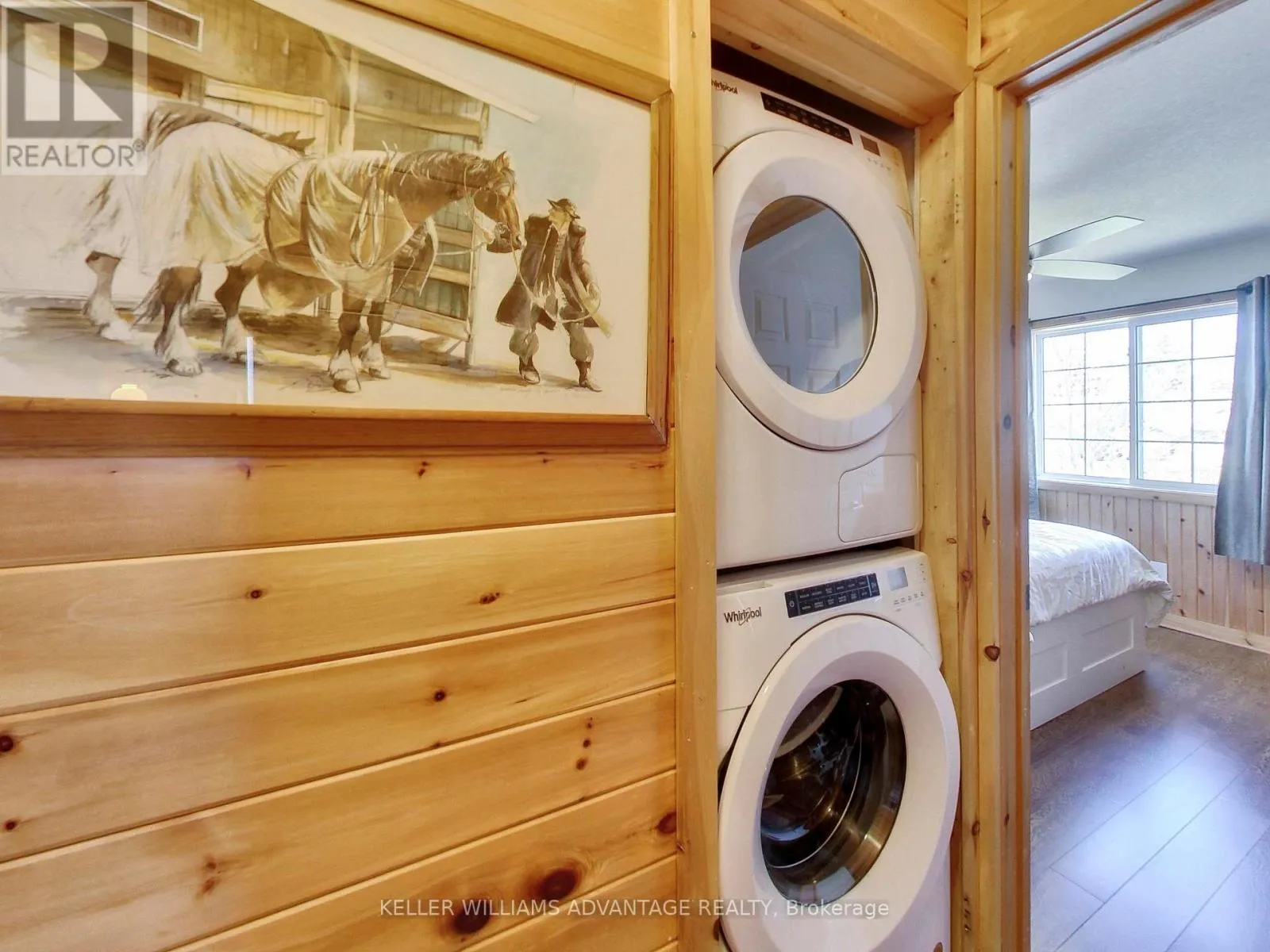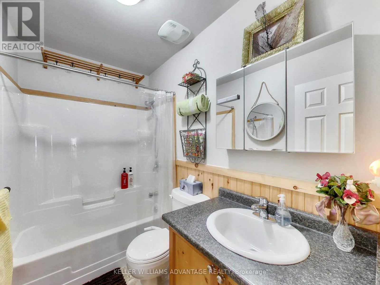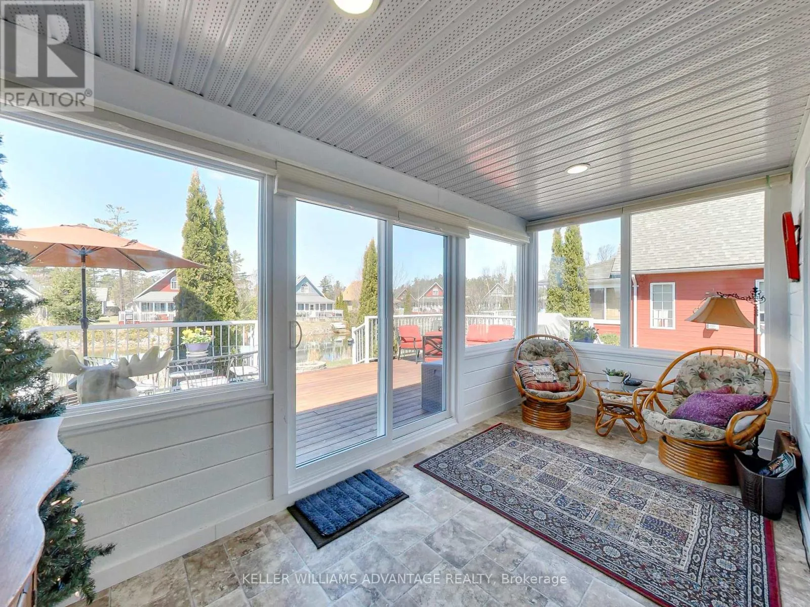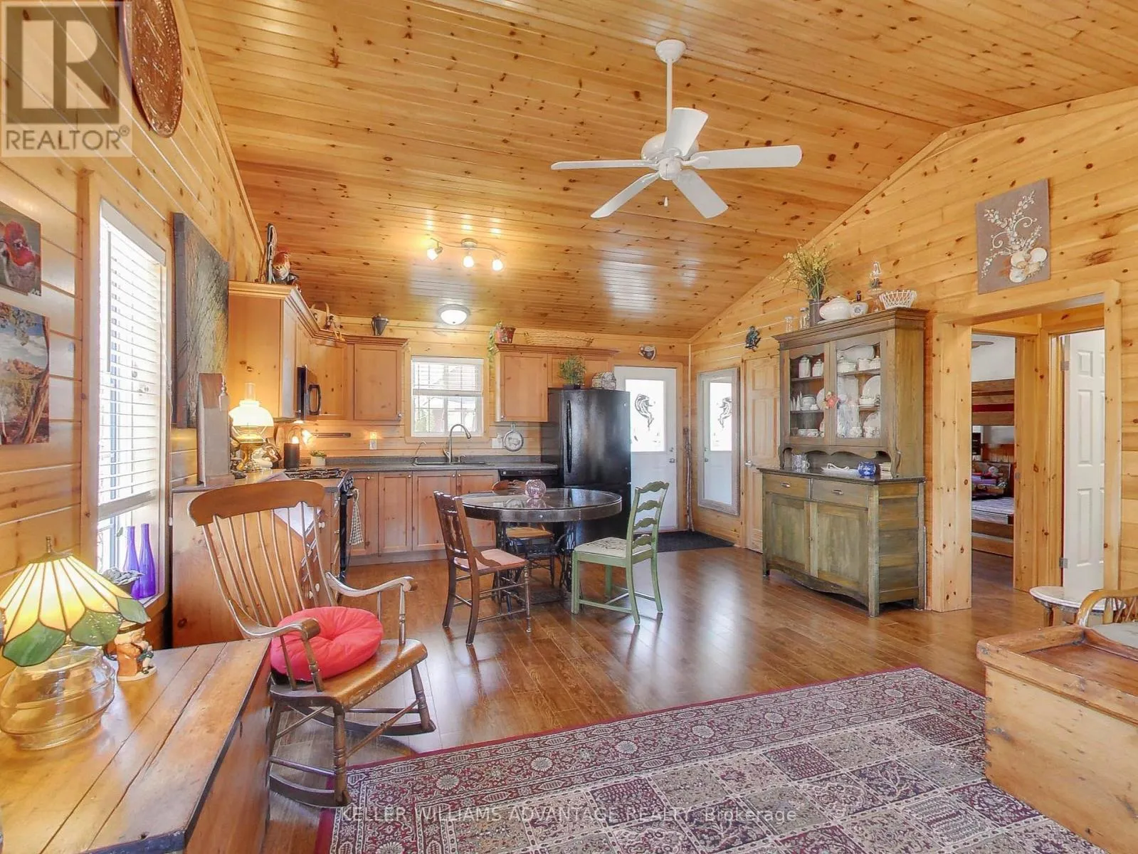 Cross Streets: River Road East and Zoo Park Road. ** Directions: River Road West to Theme Park Road, then Lakes of Wasaga to Madawaska Trail. Welcome to your new home in Wasaga! This land lease home is the perfect option for 4-season living without the high purchase price. We're located in the most desirable part of the extended seasonal area of the Wasaga CountryLife resort, which means the owner is required to be away for a minimum of 30 days, which can be accumulated throughout the calendar year. This two bedroom, one washroom chalet style home features an open concept living, dining and kitchen area with cathedral ceilings. The kitchen includes a gas stove, built-in microwave and dishwasher as well as a fridge and reverse osmosis water system, and the gas fireplace in living room makes the space feel cozy and warm. With a washing machine and dryer in the hall between the bedrooms and washroom, you have everything on one floor and no stairs! The home is built on a full block crawlspace, which houses the furnace and hot water tank as well as providing lots of storage and making sure the 700 sf of the main floor is fully available. The back of the home has an expansive sunroom, with rebuilt and insulated exterior walls, new windows (2023) and window treatments. Add insulation to the floor and ceiling and you've got the perfect 4-season sunroom. On the outside of the home, the large driveway has easy parking for two cars, a wide front deck and wonderful landscaping around the sides, plus a shed for storage. One of our favourite parts of the home is the large back deck with railings, facing onto the man-made Lake Nipissing. The spacious backyard has a fire pit for relaxing evenings and the SW exposure means you're in for some fantastic sunsets! In addition to everything this home has to offer, you have access to all of the amenities in the resort, including tennis courts, indoor and outdoor pools and much more. If you love the beach, then you'll really love the fact that it is only a short walk away, as are local shops and services. If you're ready for a new home in Wasaga Beach, come check us out! (id:27476)