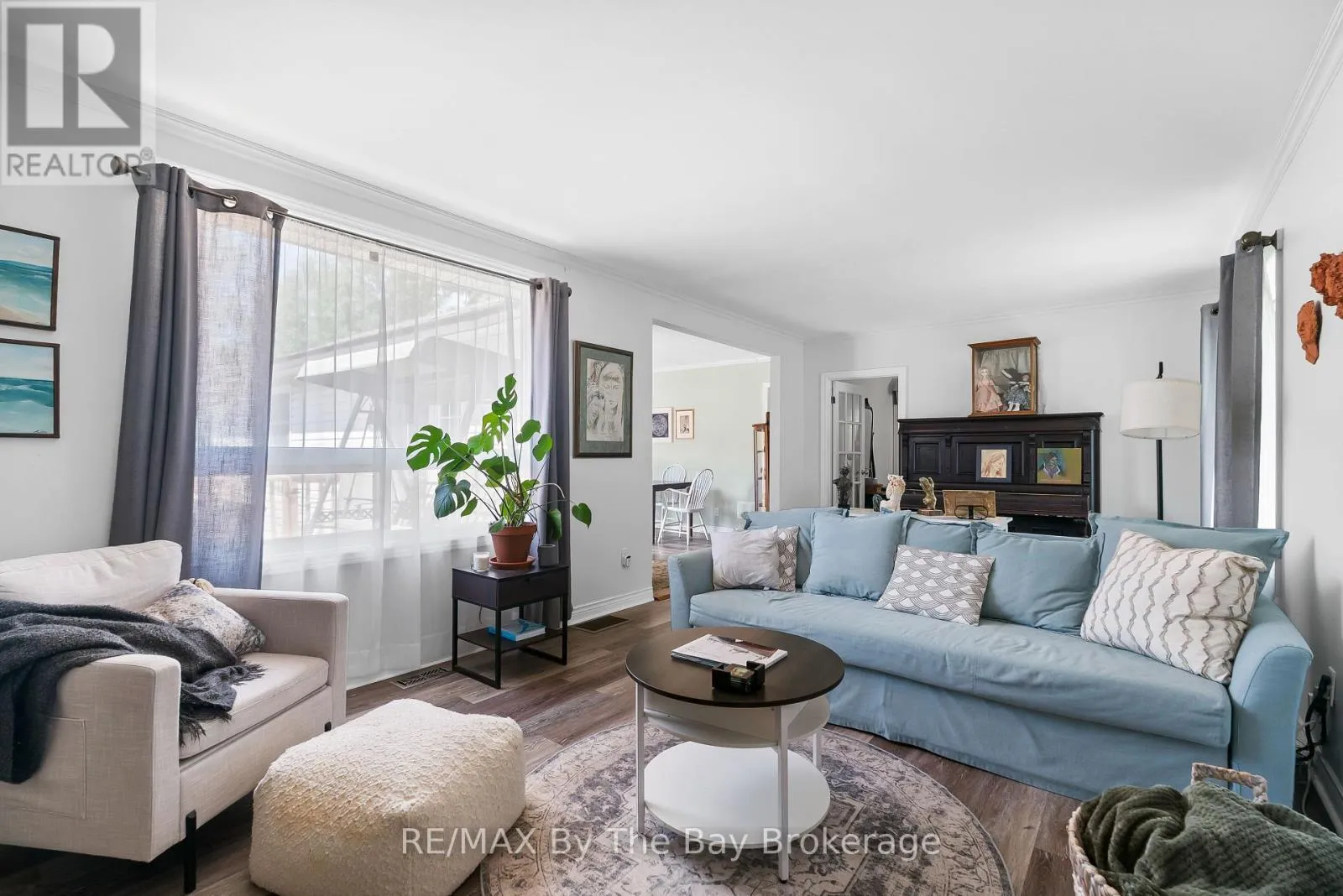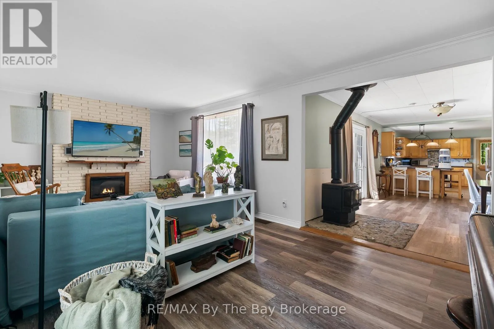 Cross Streets: Mosley St & 39th St S. ** Directions: southwest on River Rd W to Mosley St then turn left onto 39th St S, destination is on the left. Welcome to an incredible freehold opportunity just an 8-minute walk to the sandy shores of Wasaga Beach's Beach Area 5! At this price point, it's the perfect chance to get into the market without compromising space, location, or lifestyle. Set on a rare and impressive 67 x 205 ft. deep lot, this charming bungalow offers over 1,300 sq. ft. of carpet-free living space designed for comfort and effortless everyday living. Enjoy morning coffee on the inviting front deck before stepping inside to an open-concept layout that seamlessly connects the kitchen, dining, and living areas-ideal for both entertaining and relaxed nights in. The kitchen offers stainless steel appliances, excellent storage, and a warm, functional flow. Stay cozy year-round with both a gas fireplace and a secondary electric fireplace, and appreciate the peace of mind from thoughtful updates including a new furnace (2024), roof (2012), and windows replaced approximately 12 years ago. Outside is where this property truly shines. The expansive private backyard, surrounded by mature trees, provides endless potential-gardens, play space, firepit evenings, or simply unwinding in the shade. You'll also love the two additional outbuildings: a 10 x 10 hydro-equipped art studio and an 8 x 12 cedar Bunkie with hydro, perfect for guests, a home office, or your creative escape.Walking distance to the YMCA, public school, and the beach, this home checks every box for lifestyle, location, and value. Deep lots like this are incredibly hard to find in prime beachside areas-don't miss your chance to own a rare freehold gem at a fantastic price! (id:27476)