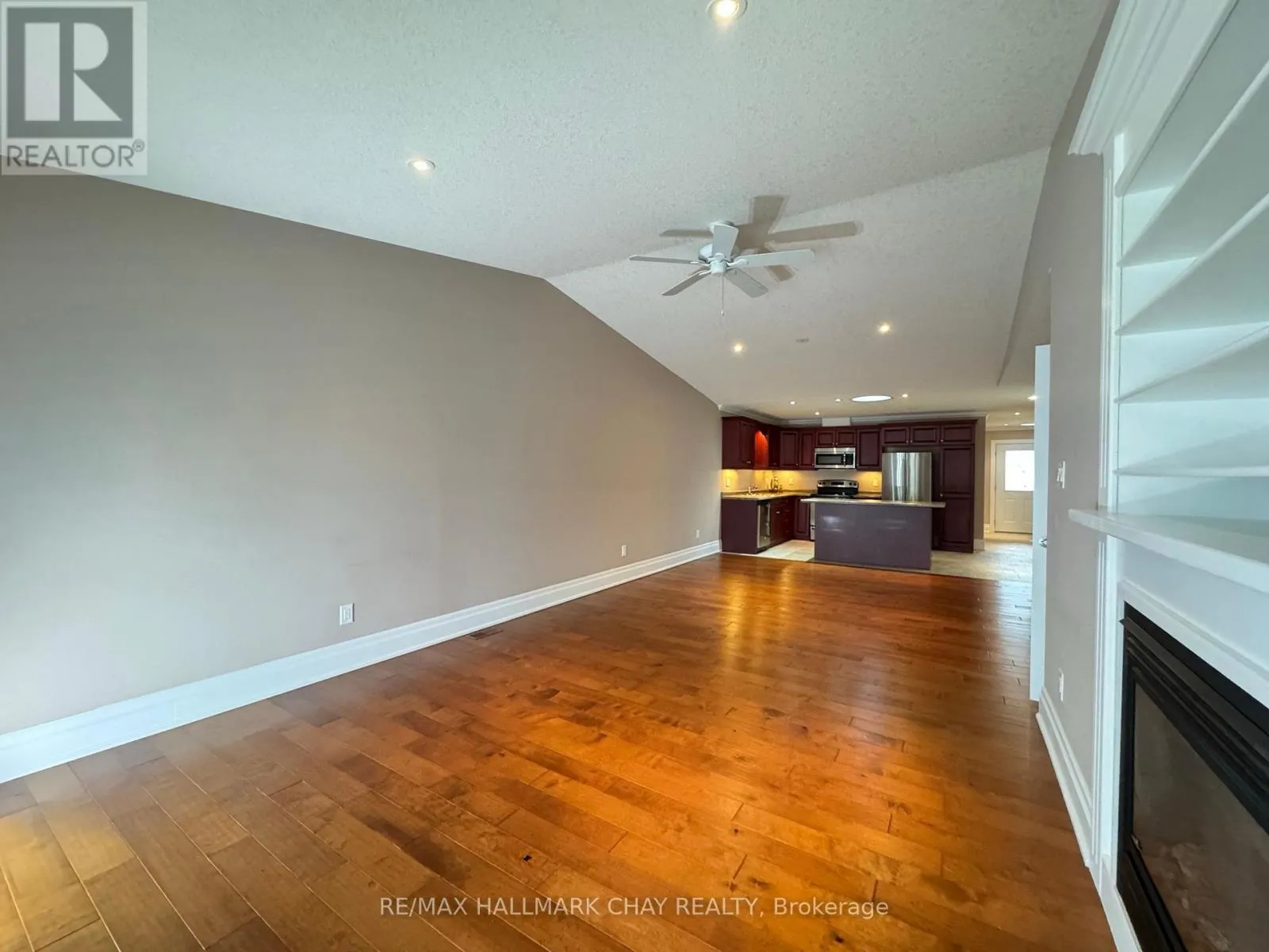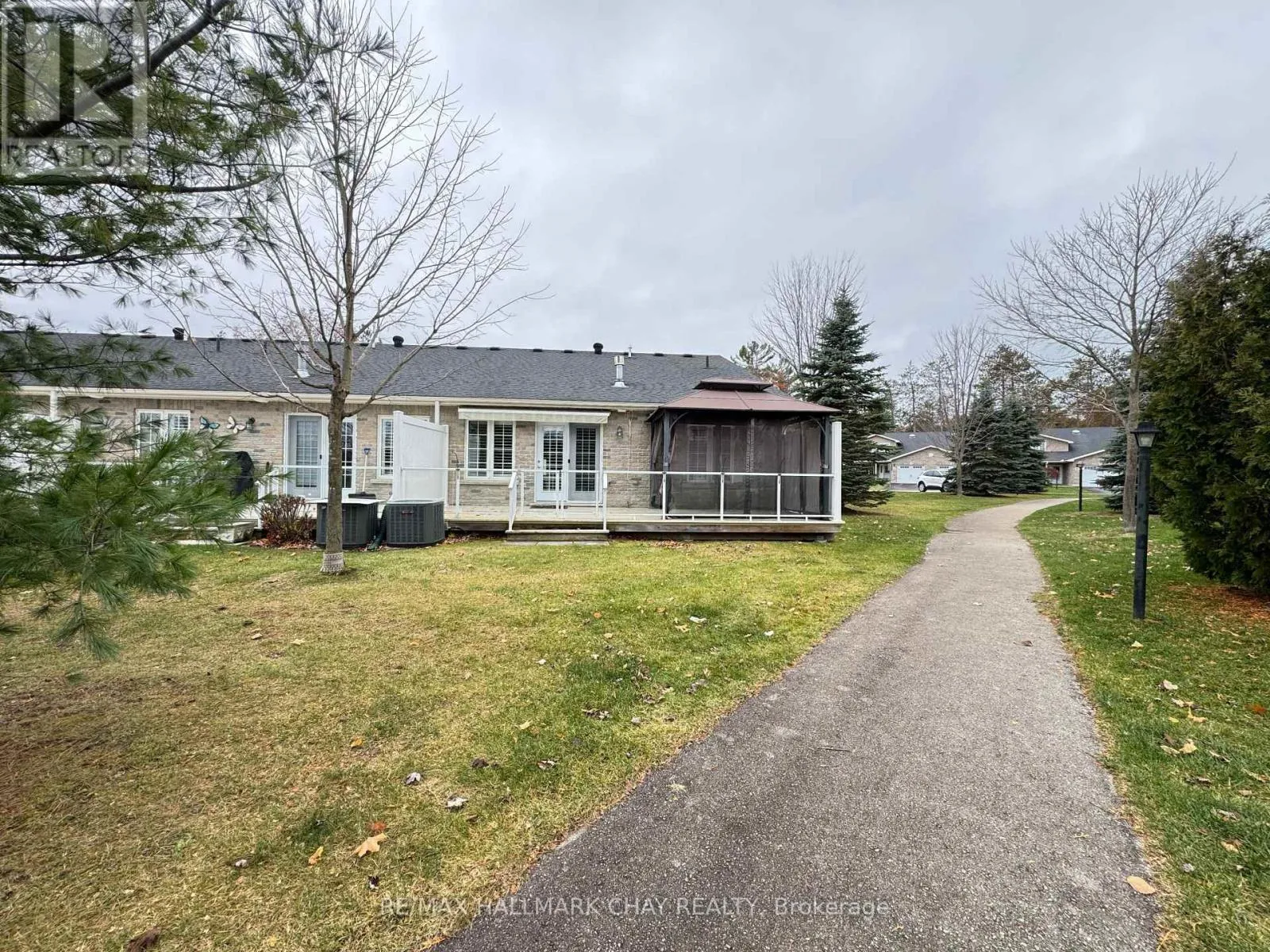 Cross Streets: Klondike Park Rd & Greenway. ** Directions: Klondike Park Rd to Greenway, to Garden Grove. Retire in Style! Welcome to this fabulous turnkey bungalow in the sought-after Country Meadows in Wasaga Beach. This premium end unit backs onto the pond, tranquil walking paths and a pergola for gathering with friends or just enjoying the serenity. This beautiful home offers 2 bedrooms, 2 bathrooms, and a HUGE great room with vaulted ceilings. A welcoming covered front porch leads into a bright foyer with inside access to the garage. The open-concept living area allows for a variety of furniture placement options. The well-appointed kitchen boasts stainless steel appliances, pantry storage, and a skylight, making it both functional and inviting. The spacious primary suite includes an ensuite with a walk-in shower and two closets (one is a walk-in). The second bedroom is adjacent to the guest bathroom. The laundry room has a sink and additional cabinetry. The great room has a walkout to the large deck that features a permanent gazebo, retractable awning, resin decking and glass railings for unobstructed views. Other upgrades included a gas fireplace, ceramic and engineered hardwood floors as well as custom window coverings. Located in one of Parkbridge's premier communities. Ownership comes with access to an array of premium amenities including the 9 hole golf course, outdoor heated pool, community center with billiard table, shuffleboard, darts, library, kitchen and patio areas. This home is ready for you to move in and enjoy a retirement lifestyle filled with comfort, convenience, and community. Parkbridge land lease fees are: $800 (Rent) + $40.57 (Lot Tax) + $149.02 (Home Tax) = $989.59 per month. And you are invited to an open house, next Saturday, November 22nd from 12-2pm. (id:27476)