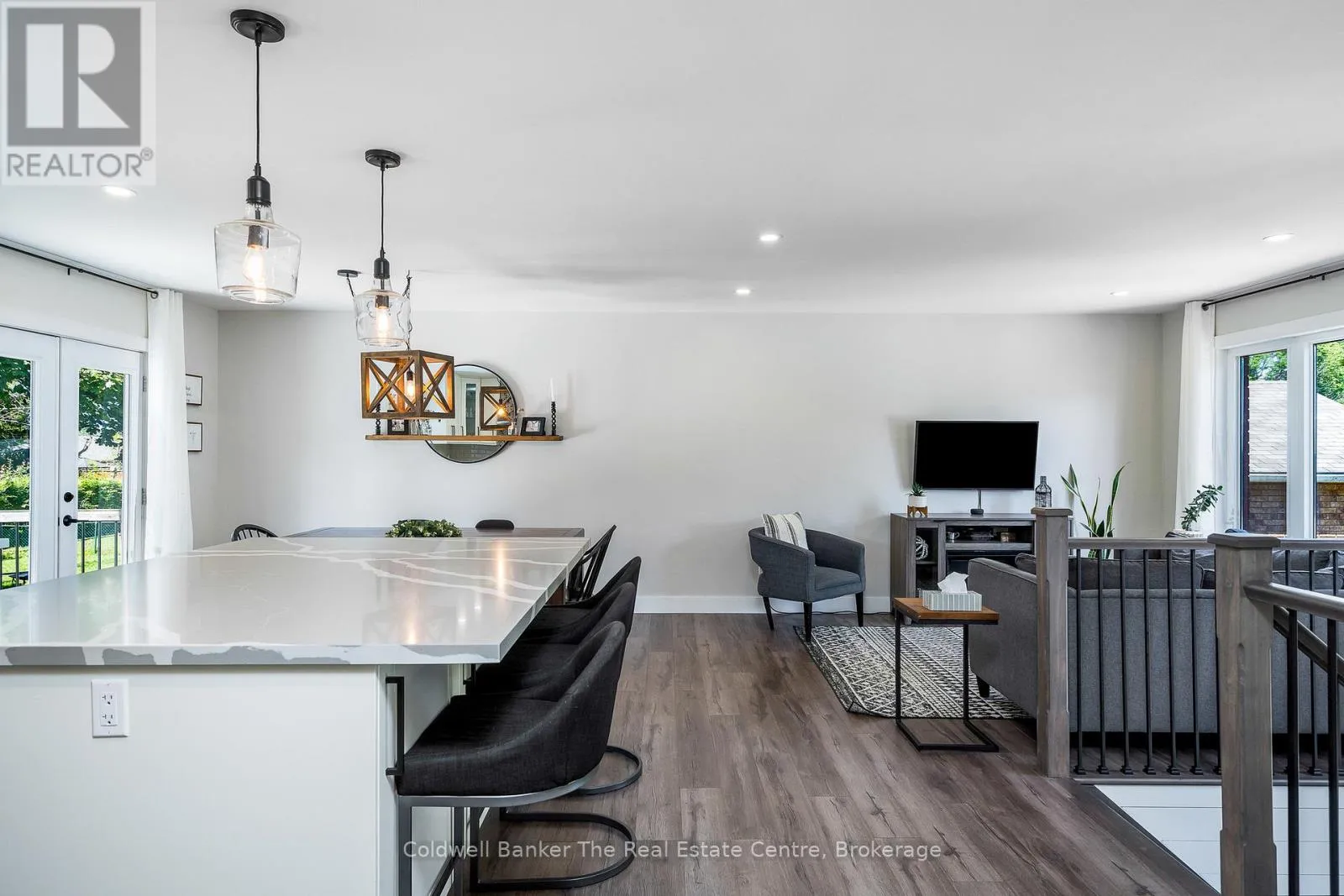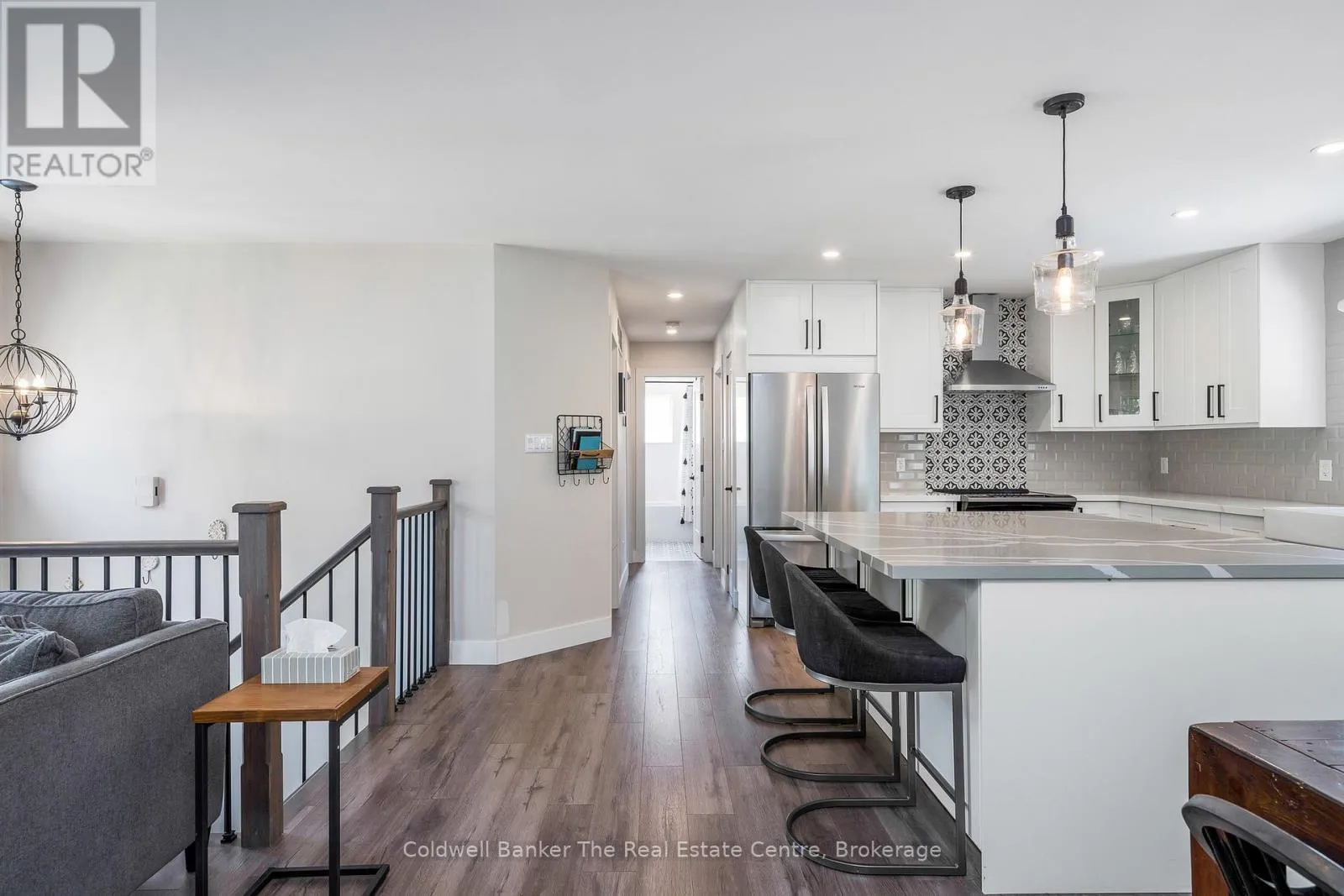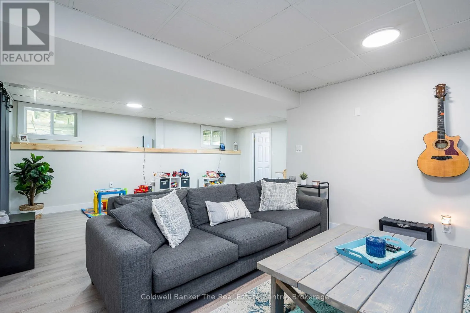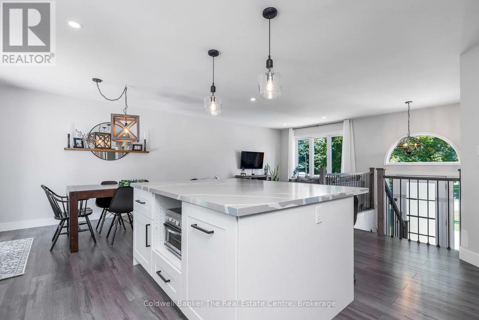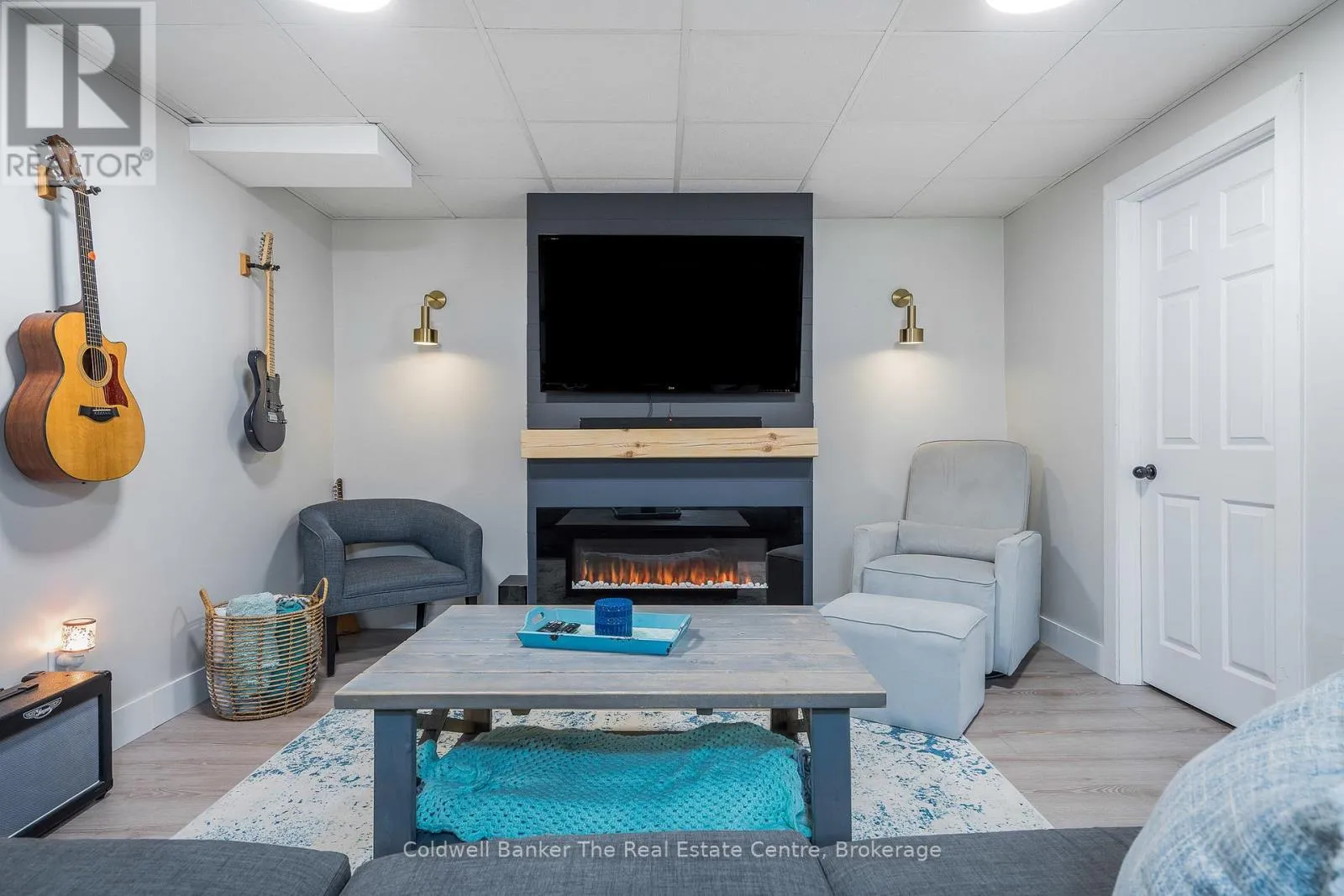 Cross Streets: Leo Blvd and zoo park rd. ** Directions: Zoo park road to Leo Blvd and Langevin. Welcome to this fully renovated raised bungalow nestled in a mature, family-friendly area of Wasaga Beach. Surrounded by tall, established trees and set in a quiet, convenient location, this home offers the perfect balance of comfort, style, and lifestyle amenities. The property features three well-appointed bedrooms on the main floor and a bright, open-concept layout designed for modern living. The heart of the home is the newly renovated kitchen, showcasing a large quartz island, updated cabinetry, and contemporary finishes-ideal for cooking, gathering, and entertaining. This space flows effortlessly into the main living and dining areas, creating a warm and inviting environment filled with natural light. This home has been thoughtfully updated throughout, including new electrical completed in 2019 and new windows installed in 2021 and 2022, providing improved efficiency and peace of mind. New Garage Door 2019 with R16. New shingled roof 2016, Updated Furnace 2014. The finished basement extends your living space with a cozy fireplace, perfect for relaxing evenings or hosting guests. There's also a generous workout area, providing flexibility for fitness, hobbies, or additional family space. Outside a large backyard deck that's perfect for BBQs and outdoor dining, along with a practical storage shed for tools and seasonal items. Home is located within walking distance to parks, beaches, shops and restaurants, perfect location for families, retirees and investors. (id:27476)