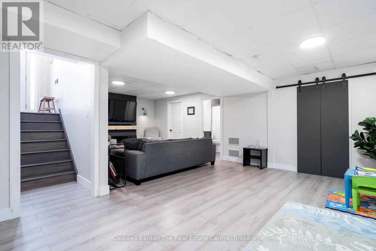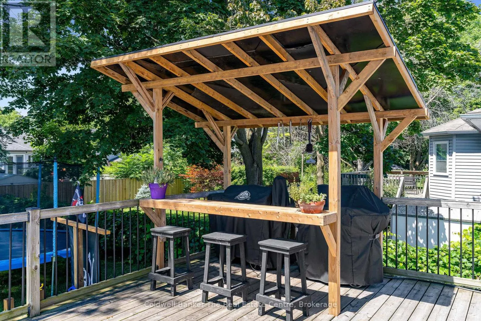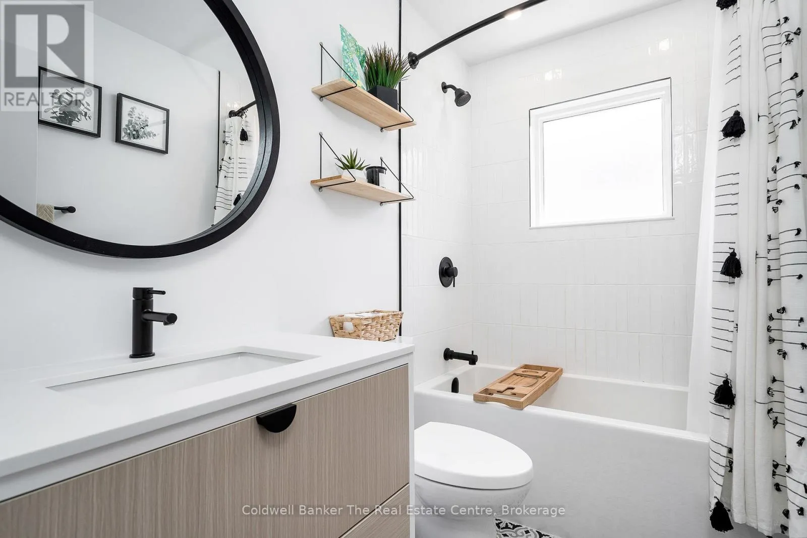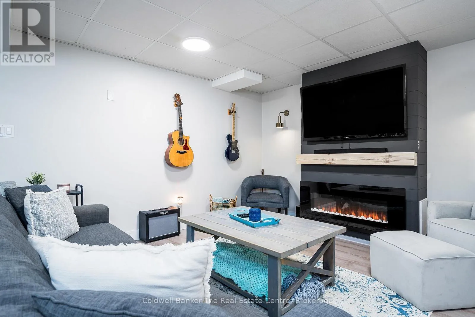 Cross Streets: Leo Blvd and zoo park rd. ** Directions: Zoo park road to Leo Blvd and Langevin. Welcome to this fully renovated raised bungalow nestled in a mature, family-friendly area of Wasaga Beach. Surrounded by tall, established trees and set in a quiet, convenient location, this home offers the perfect balance of comfort, style, and lifestyle amenities. The property features three well-appointed bedrooms on the main floor and a bright, open-concept layout designed for modern living. The heart of the home is the newly renovated kitchen, showcasing a large quartz island, updated cabinetry, and contemporary finishes-ideal for cooking, gathering, and entertaining. This space flows effortlessly into the main living and dining areas, creating a warm and inviting environment filled with natural light. This home has been thoughtfully updated throughout, including new electrical completed in 2019 and new windows installed in 2021 and 2022, providing improved efficiency and peace of mind. New Garage Door 2019 with R16. New shingled roof 2016, Updated Furnace 2014. The finished basement extends your living space with a cozy fireplace, perfect for relaxing evenings or hosting guests. There's also a generous workout area, providing flexibility for fitness, hobbies, or additional family space. Outside a large backyard deck that's perfect for BBQs and outdoor dining, along with a practical storage shed for tools and seasonal items. Home is located within walking distance to parks, beaches, shops and restaurants, perfect location for families, retirees and investors. (id:27476)